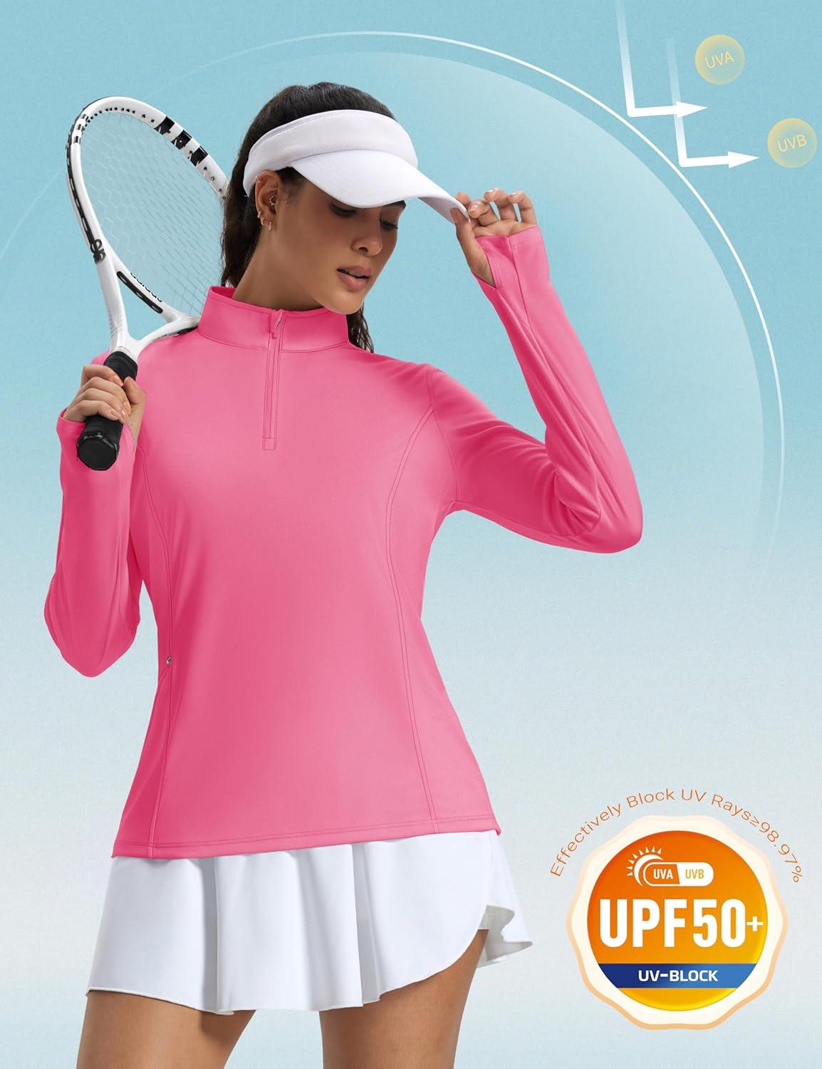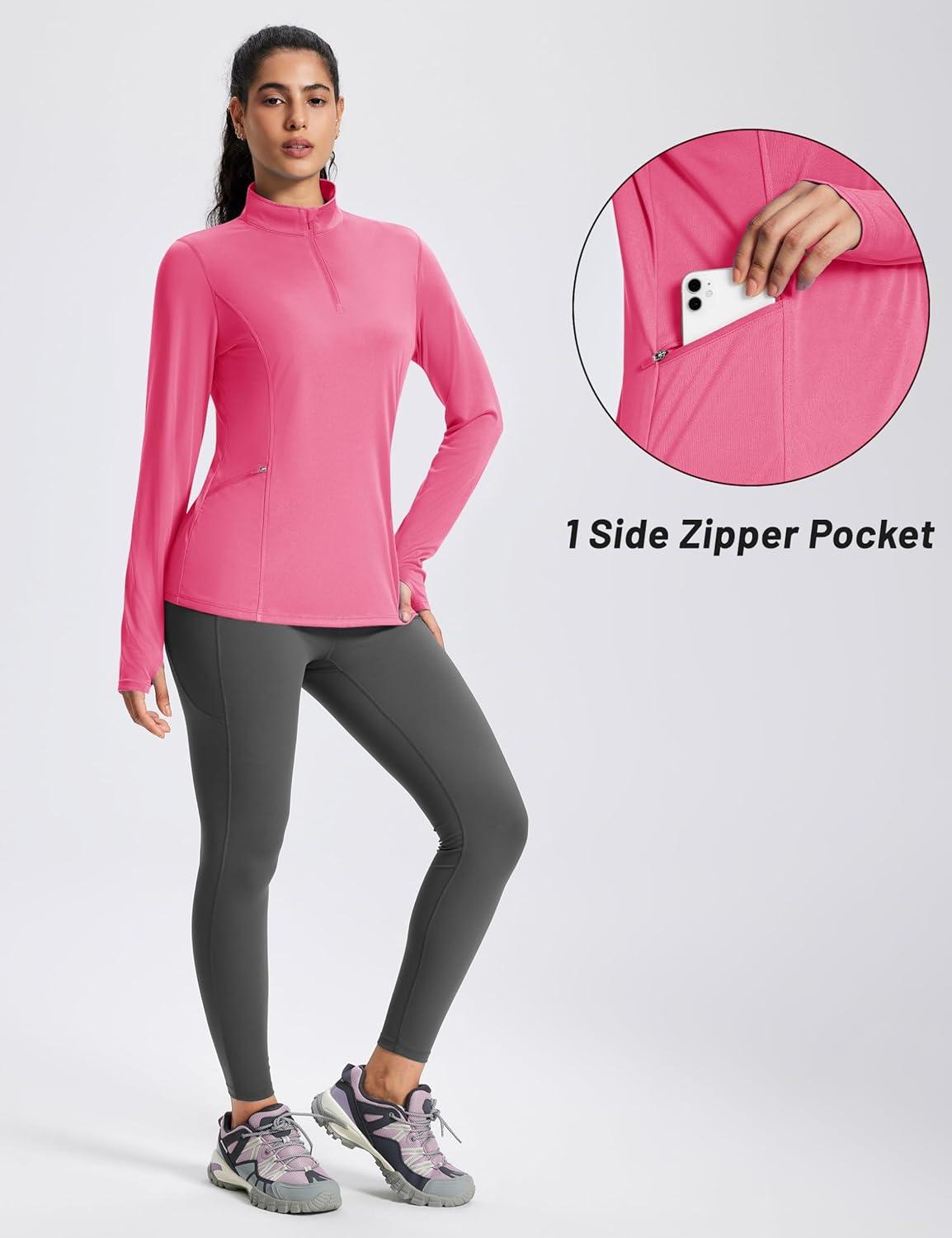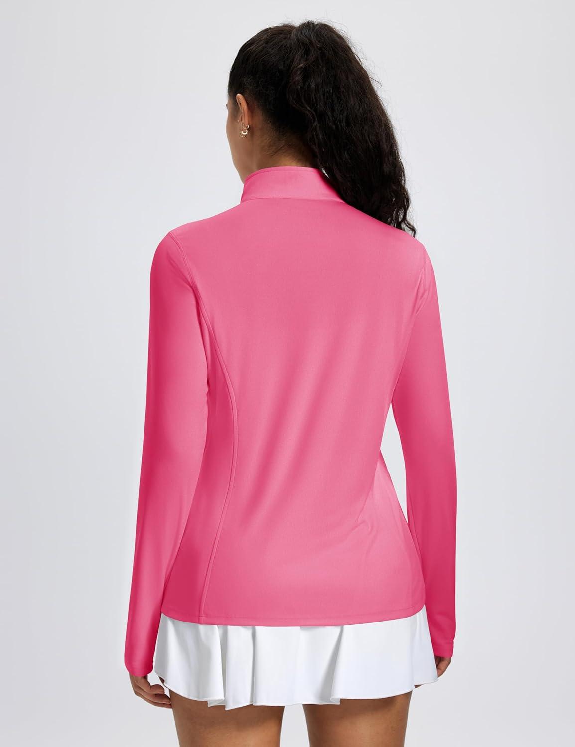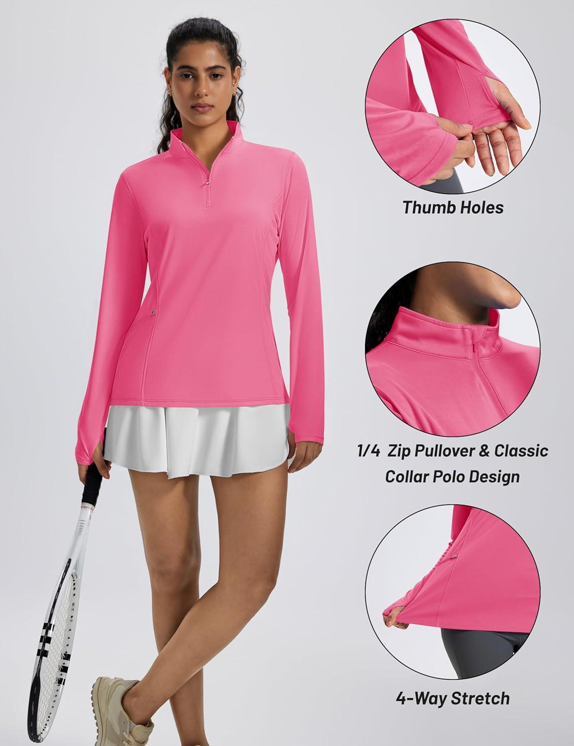 MAGCOMSEN 1/4 Zip Pullover Women Long Sleeve Quarter Zip UPF 50+ Sun Shirts with Pocket Quick Dry Athletic Workout Tops(Rose Red)