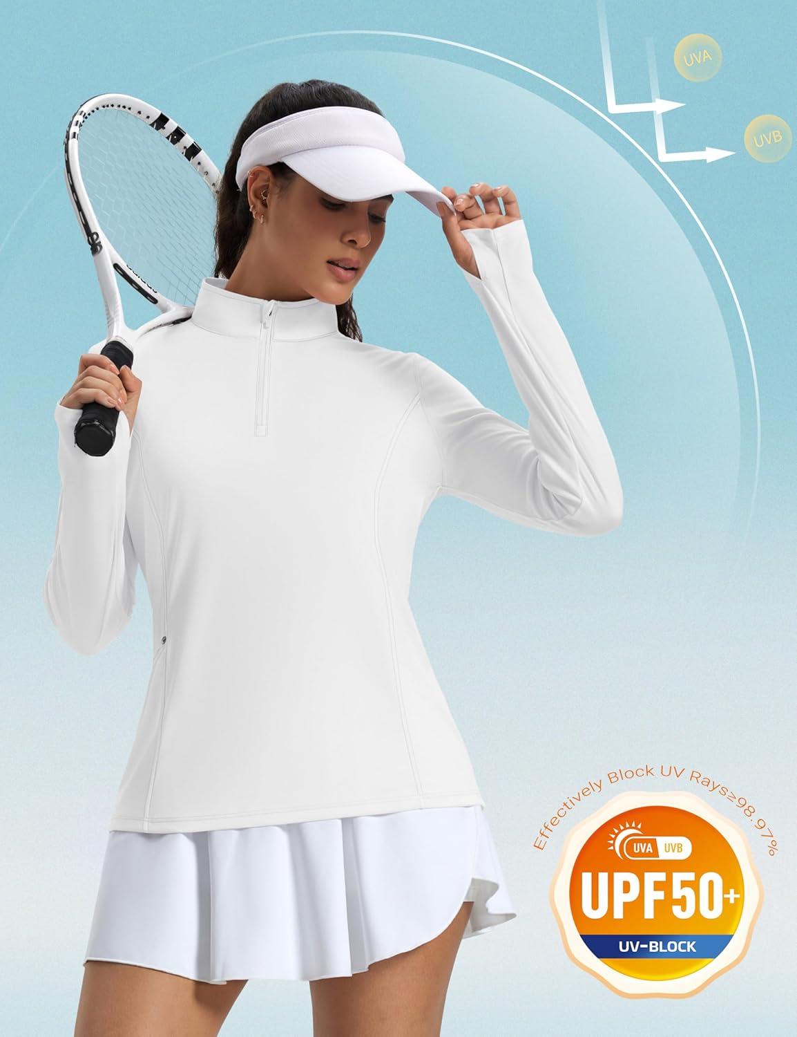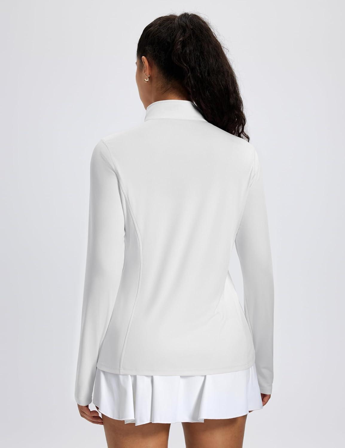 MAGCOMSEN 1/4 Zip Pullover Women Long Sleeve Quarter Zip UPF 50+ Sun Shirts with Pocket Quick Dry Athletic Workout Tops(White)