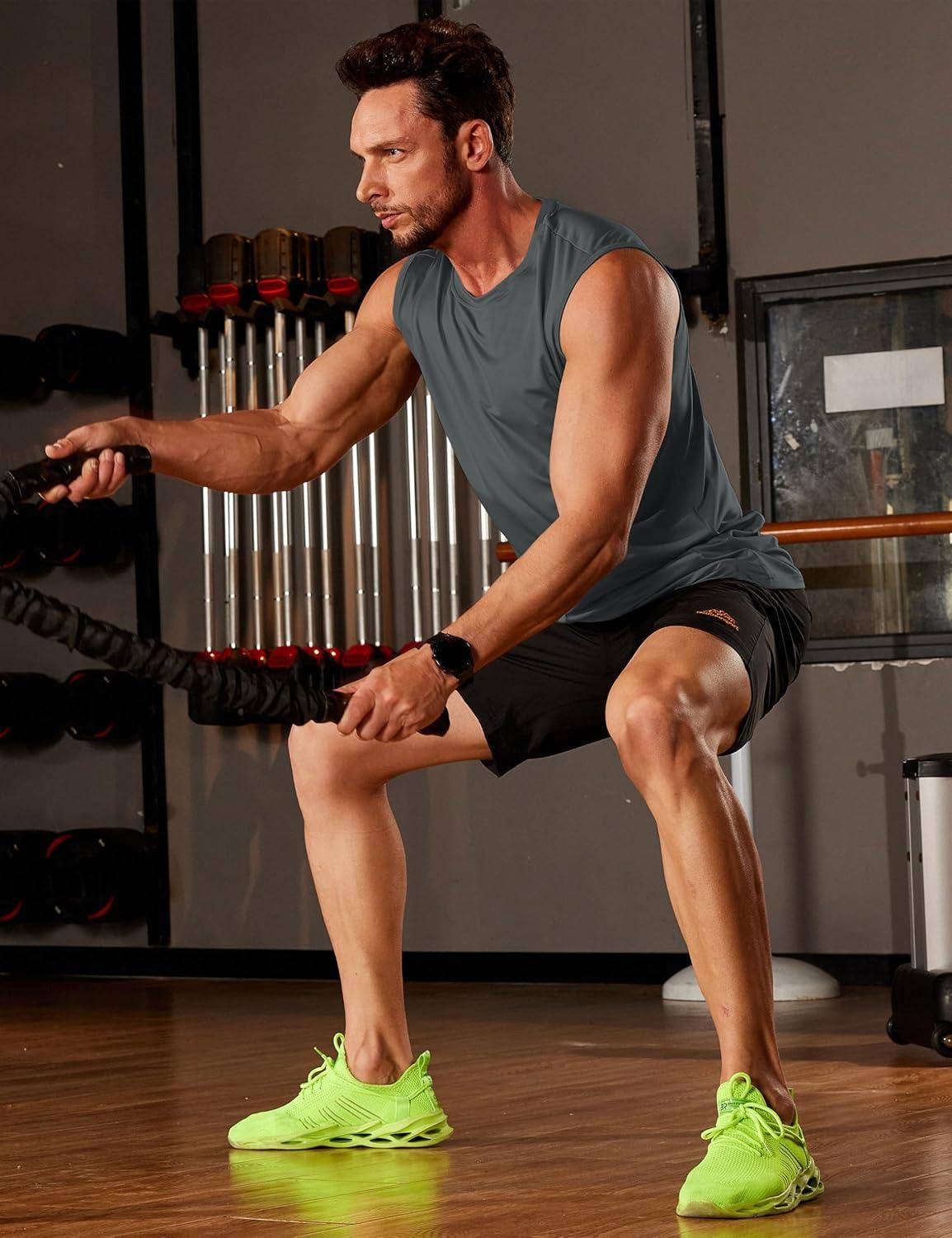 MAGCOMSEN Men’s UPF 50+ Tank Tops Y Back Quick Dry Workout Gym Sleeveless Muscle Shirts Summer Bodybuilding Cut Off Shirt(Yellow)