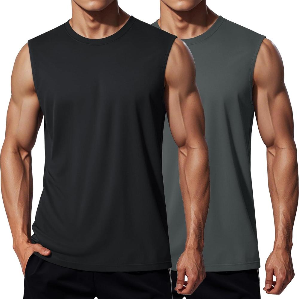 MAGCOMSEN 2 Pack Men’s UPF 80+ Tank Tops Quick Dry Workout Gym Sleeveless Muscle Shirts Cooling Summer Beach Swim Shirt(Black/Gray)