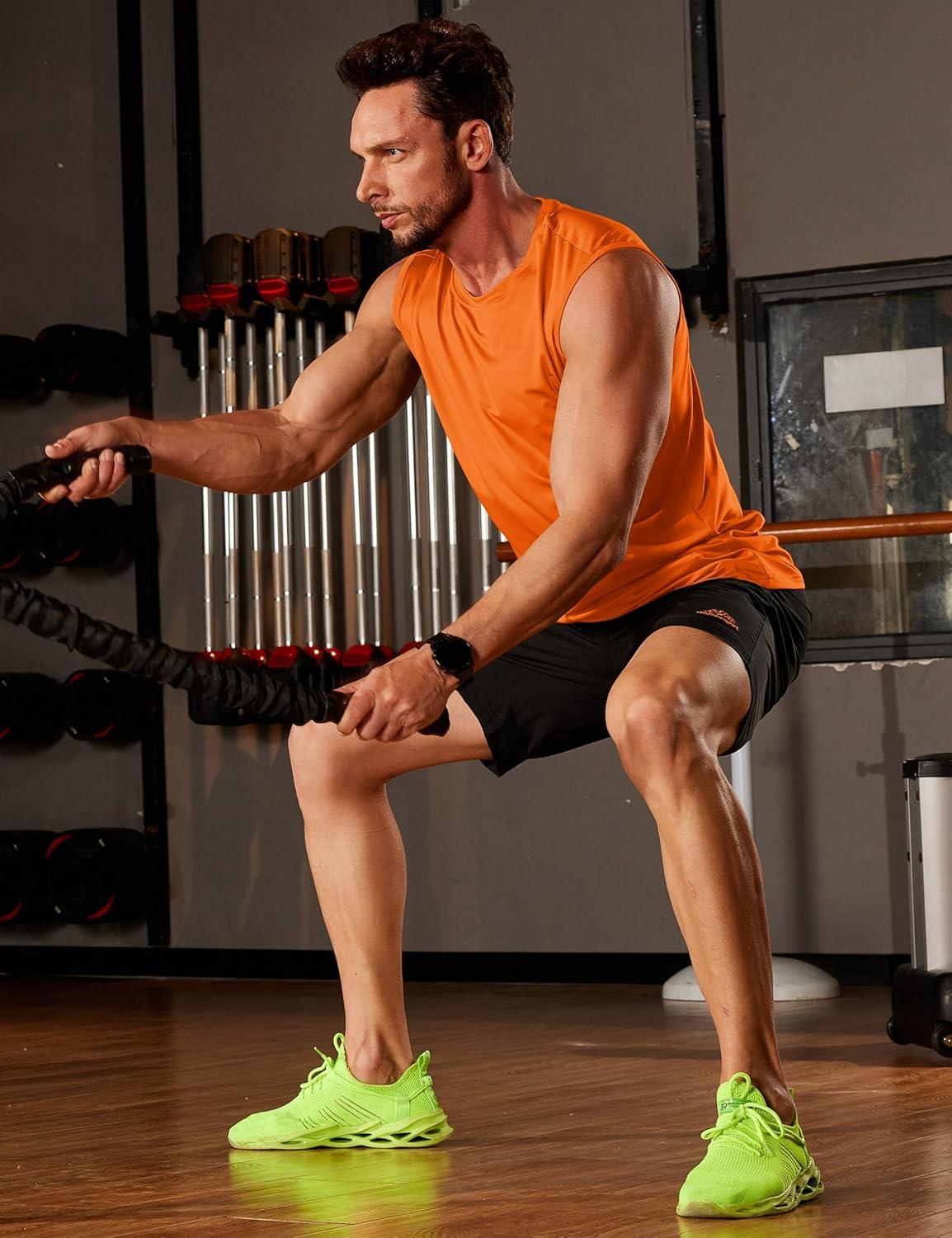 MAGCOMSEN 2 Pack Men’s UPF 80+ Tank Tops Quick Dry Workout Gym Sleeveless Muscle Shirts Cooling Summer Beach Swim Shirt(Navy/Orange)