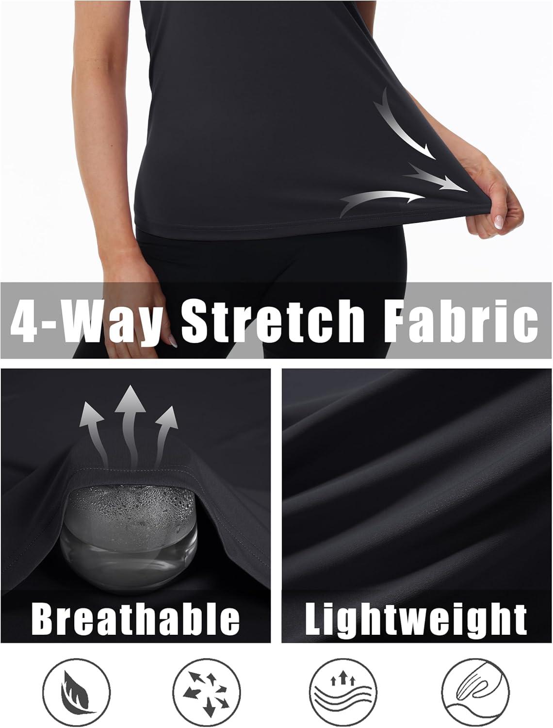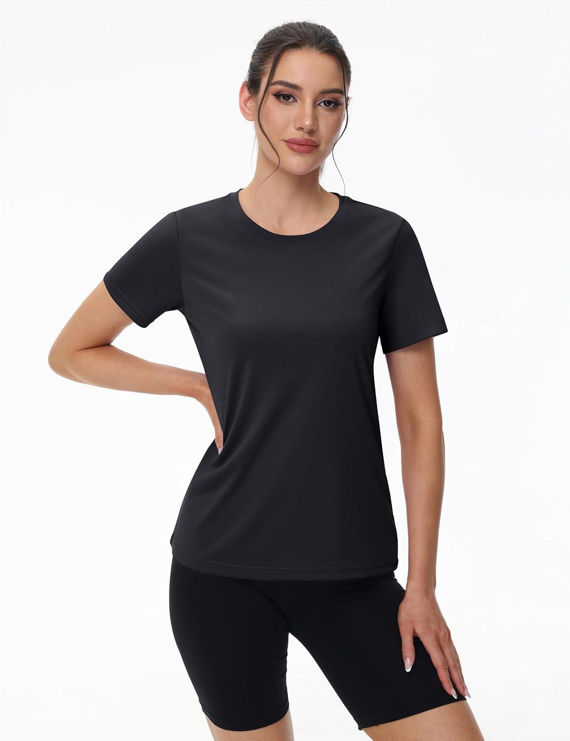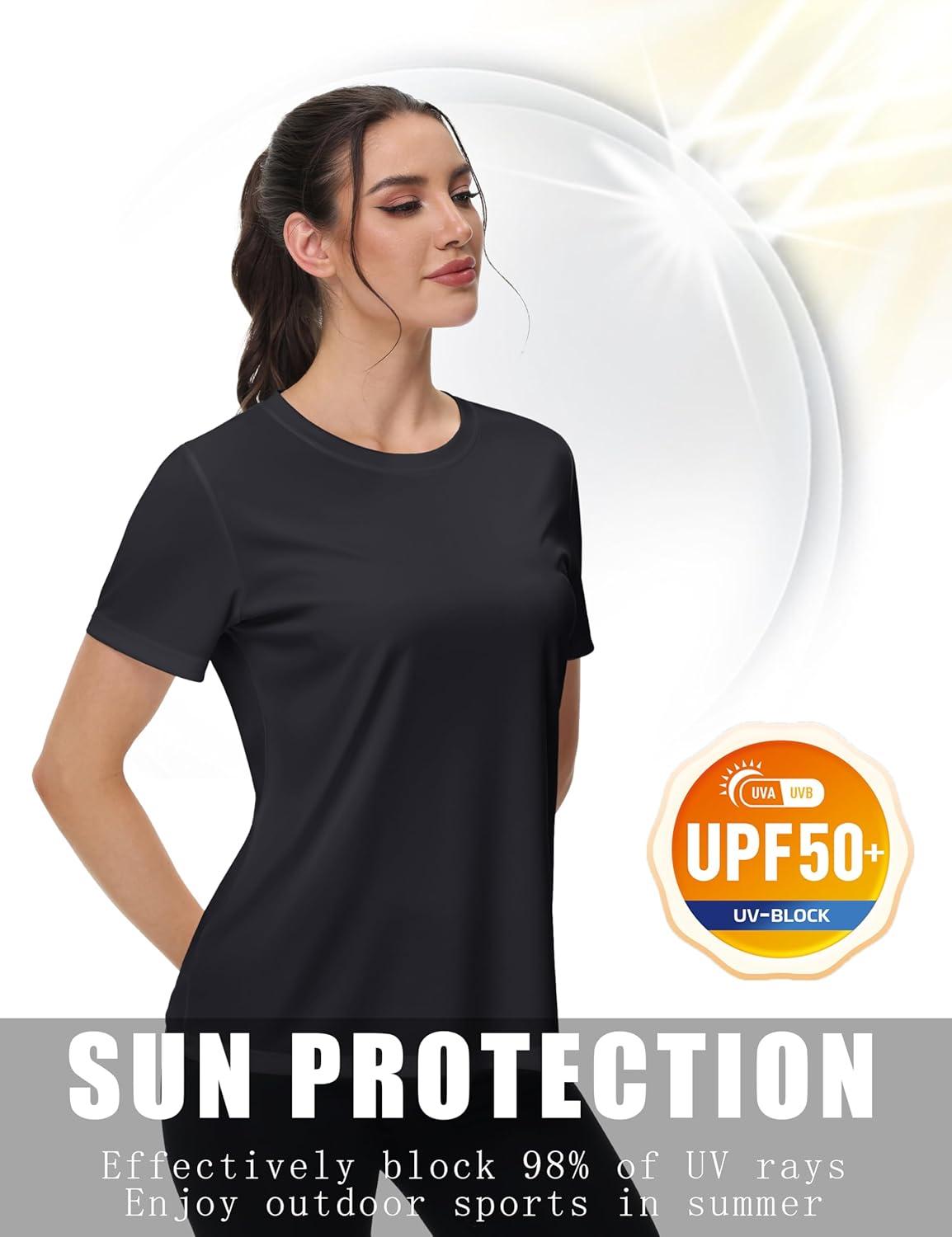 MAGCOMSEN 2 Pack Women’s Short Sleeve T-Shirts UPF 50+ Workout Running Quick Dry Athletic Rash Guard Swim Top(Black/White)