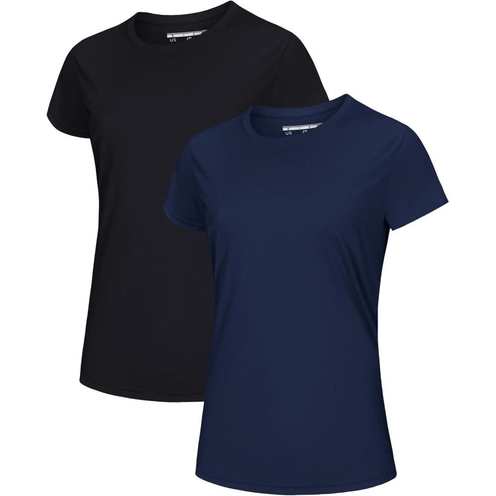 MAGCOMSEN 2 Pack Women’s Short Sleeve T-Shirts UPF 50+ Workout Running Quick Dry Athletic Rash Guard Swim Top(Black/Navy)