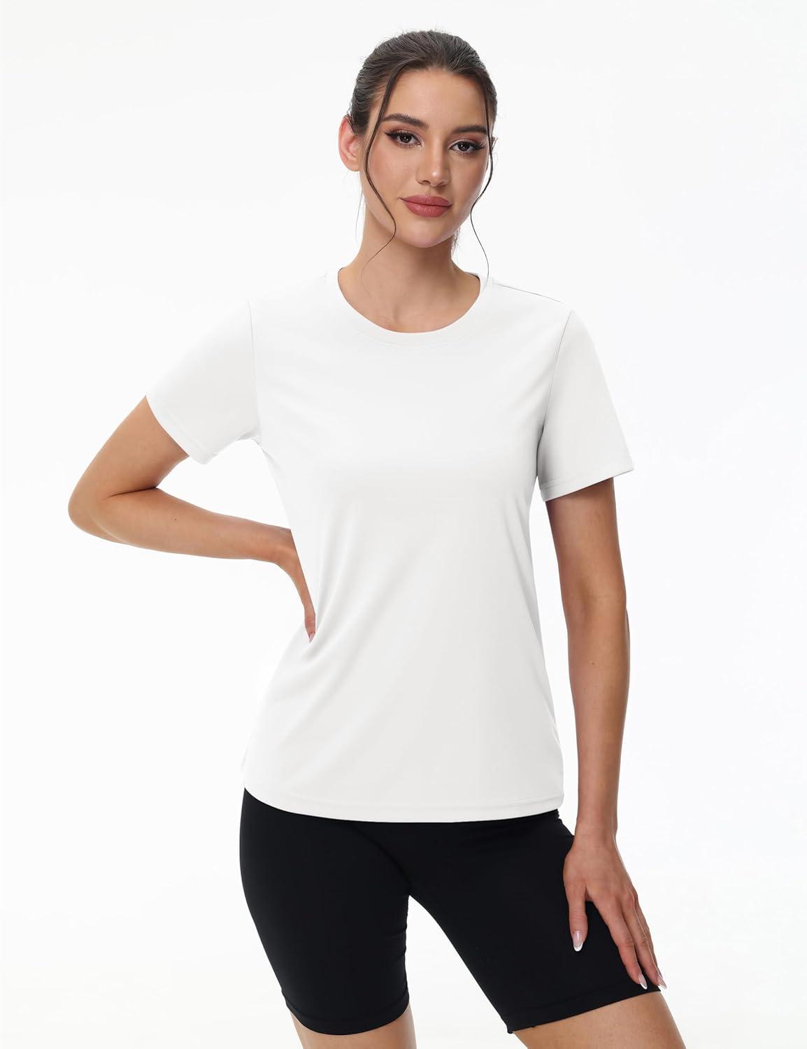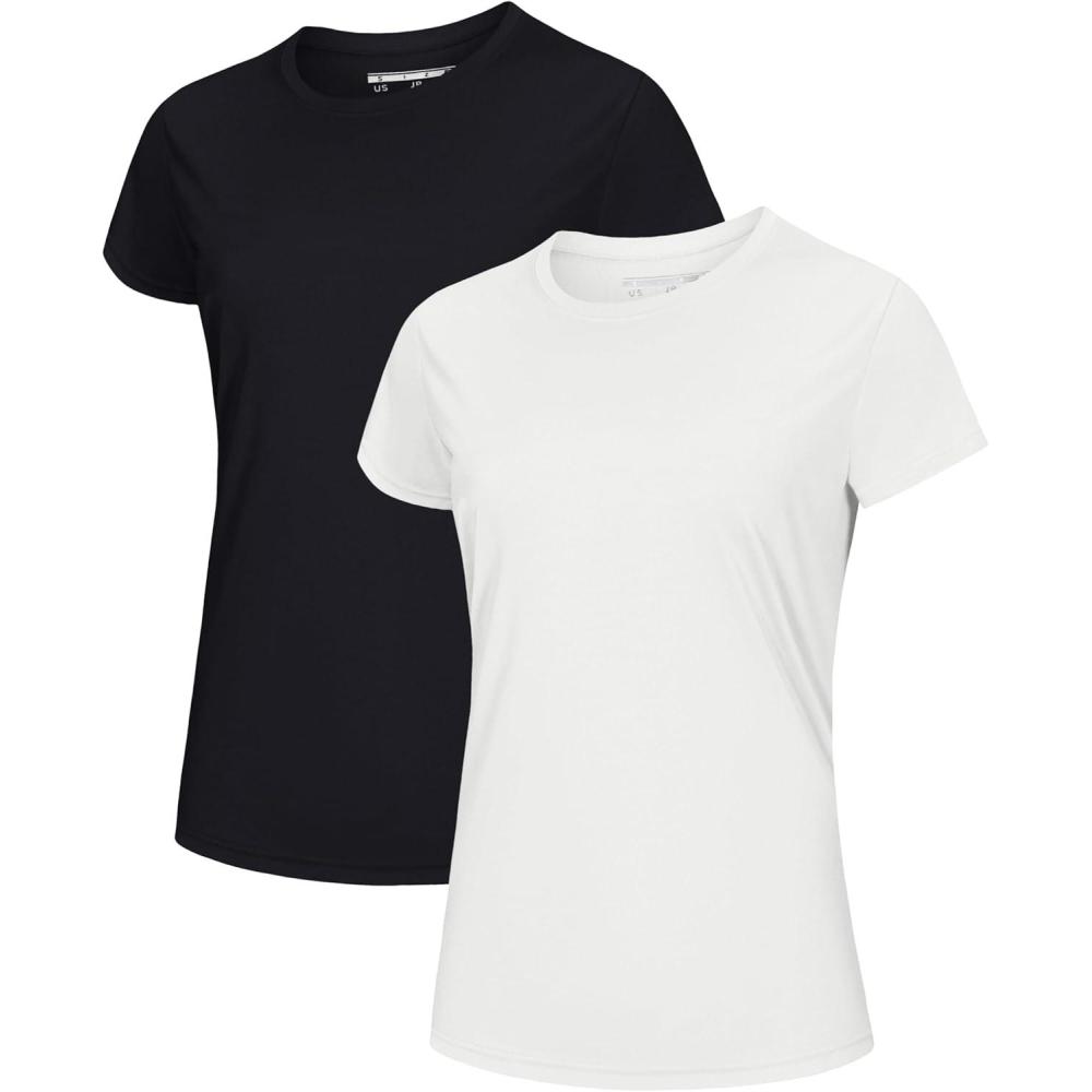 MAGCOMSEN 2 Pack Women’s Short Sleeve T-Shirts UPF 50+ Workout Running Quick Dry Athletic Rash Guard Swim Top(Black/White)