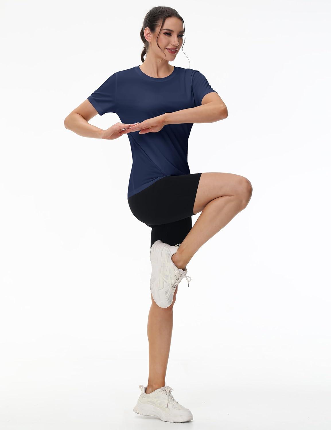 MAGCOMSEN 2 Pack Women’s Short Sleeve T-Shirts UPF 50+ Workout Running Quick Dry Athletic Rash Guard Swim Top(Navy/Lack Blue)