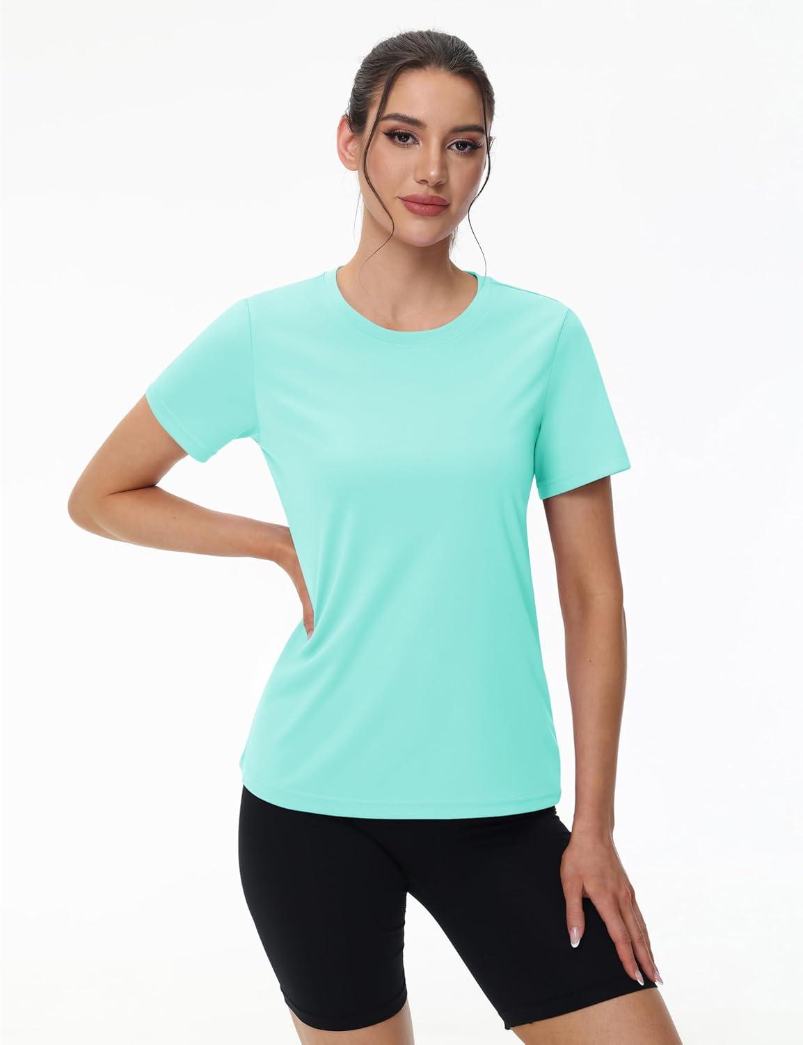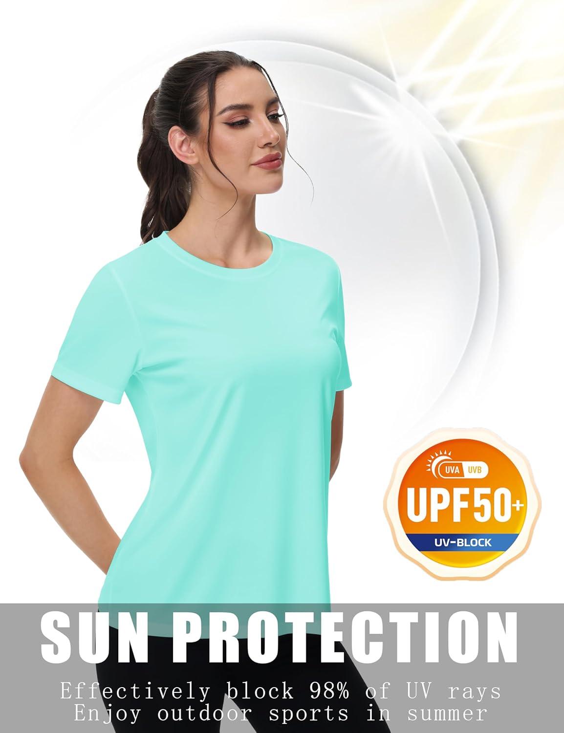 imageMAGCOMSEN 2 Pack Womens Short Sleeve TShirts UPF 50 Workout Running Quick Dry Athletic Rash Guard Swim TopLight PinkLack Blue