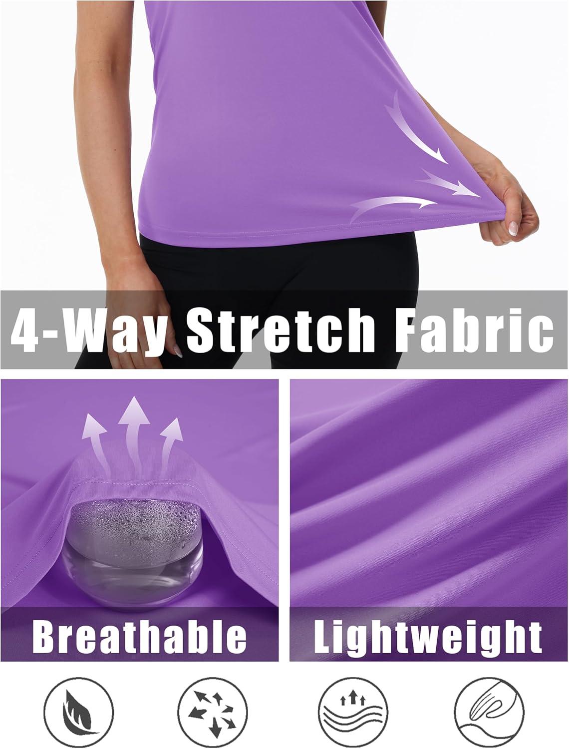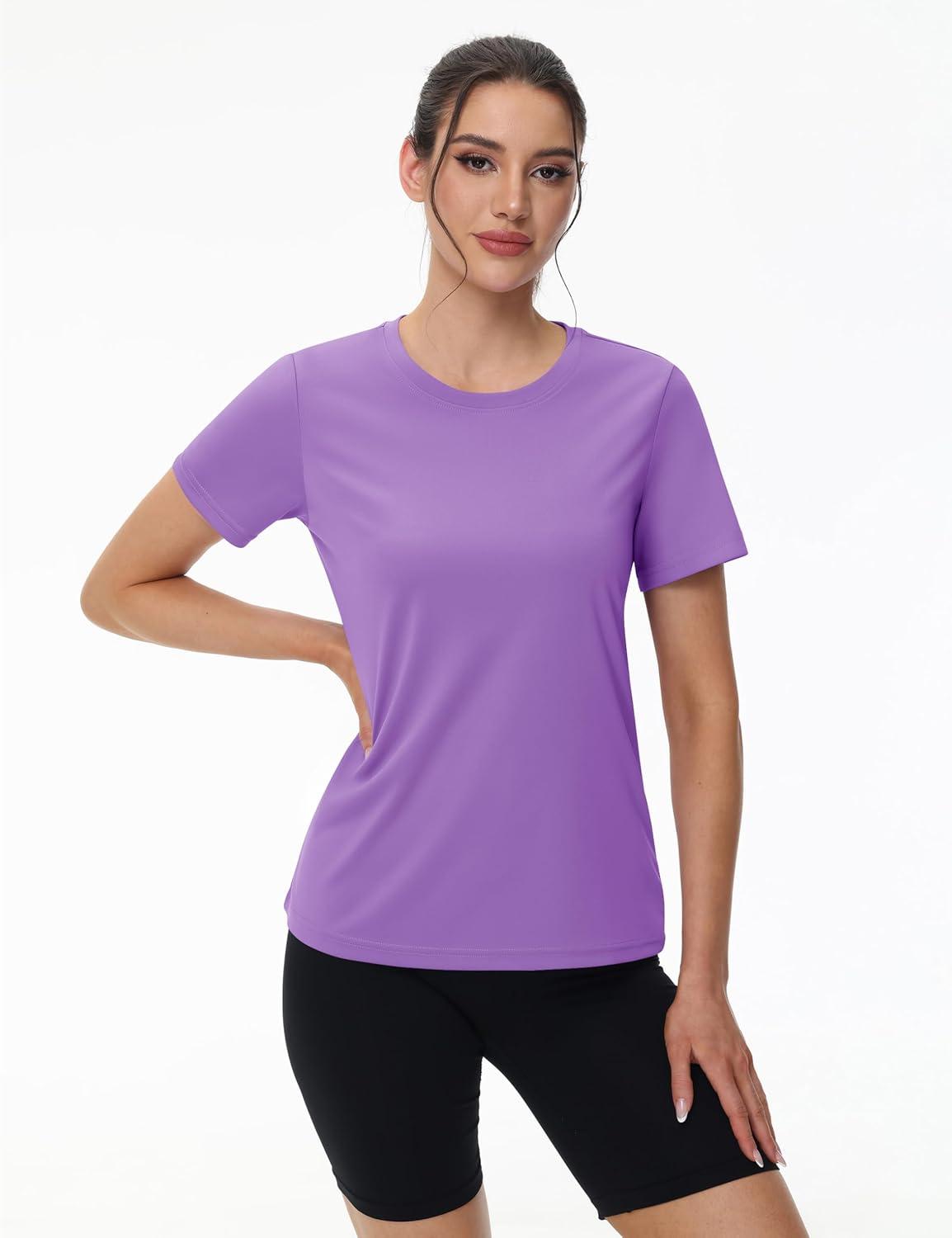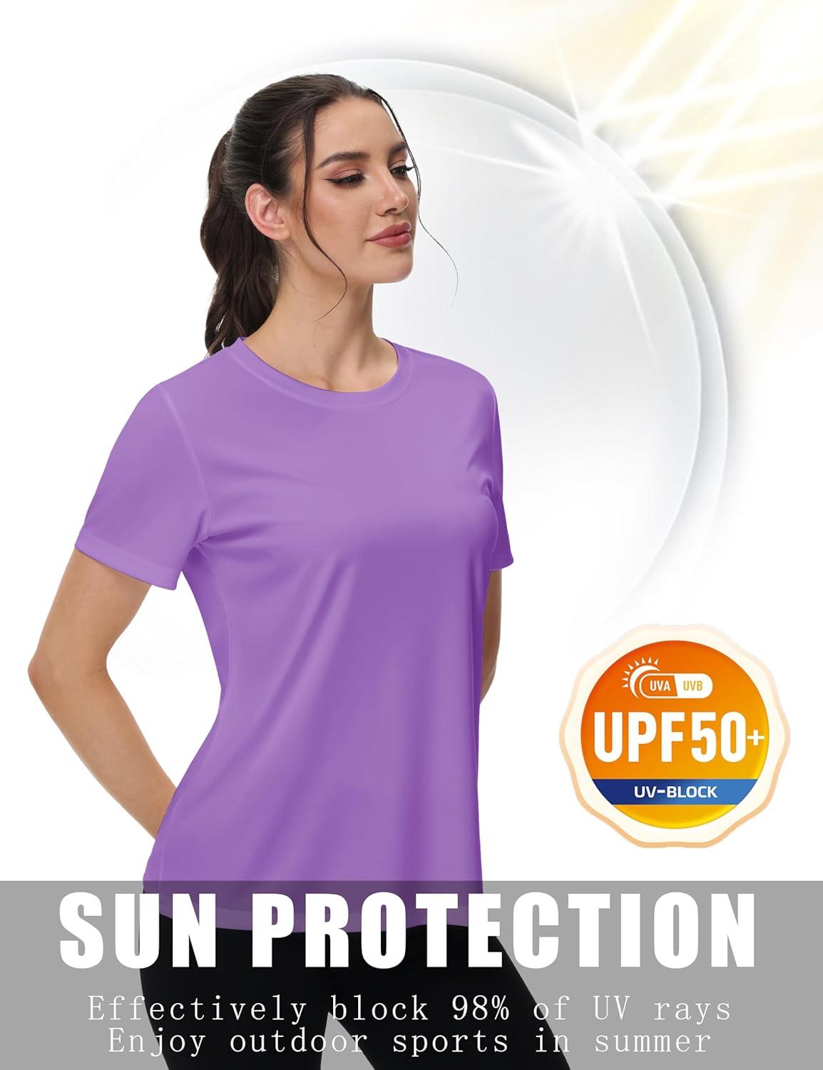 MAGCOMSEN 2 Pack Women’s Short Sleeve T-Shirts UPF 50+ Workout Running Quick Dry Athletic Rash Guard Swim Top(White/Purple)