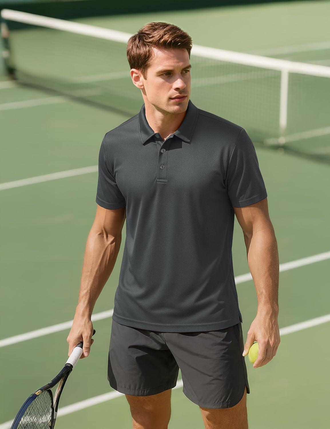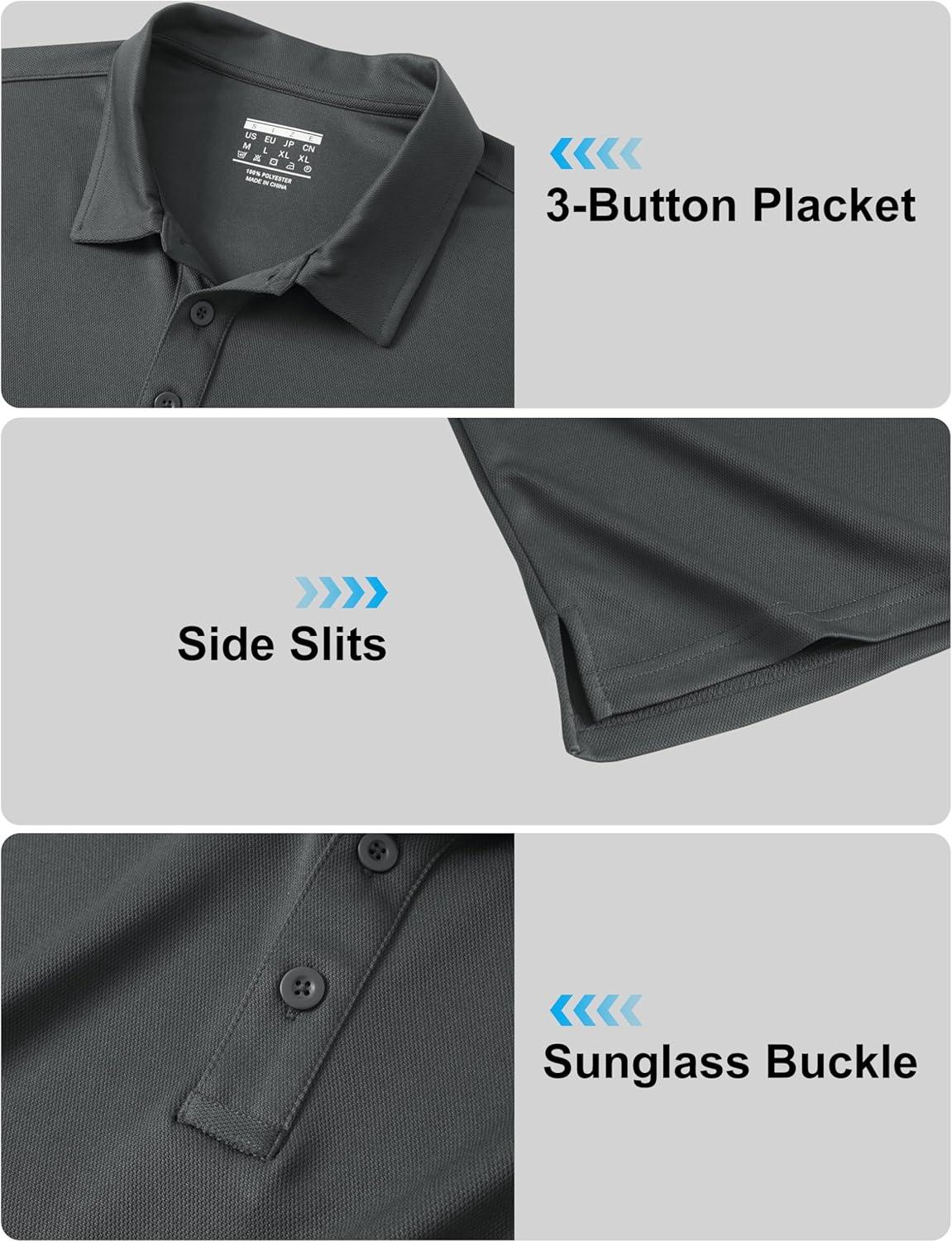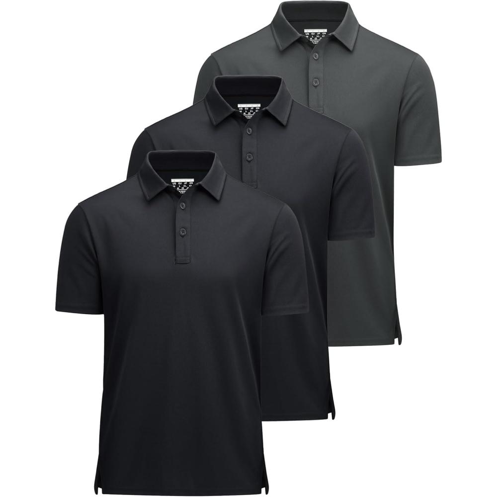 MAGCOMSEN 3 Pack Mens Polo Shirts Short Sleeve Athletic Performance Collared Shirt Moisture Wicking Casual Golf Polos(Black/Black/Dark Gray)