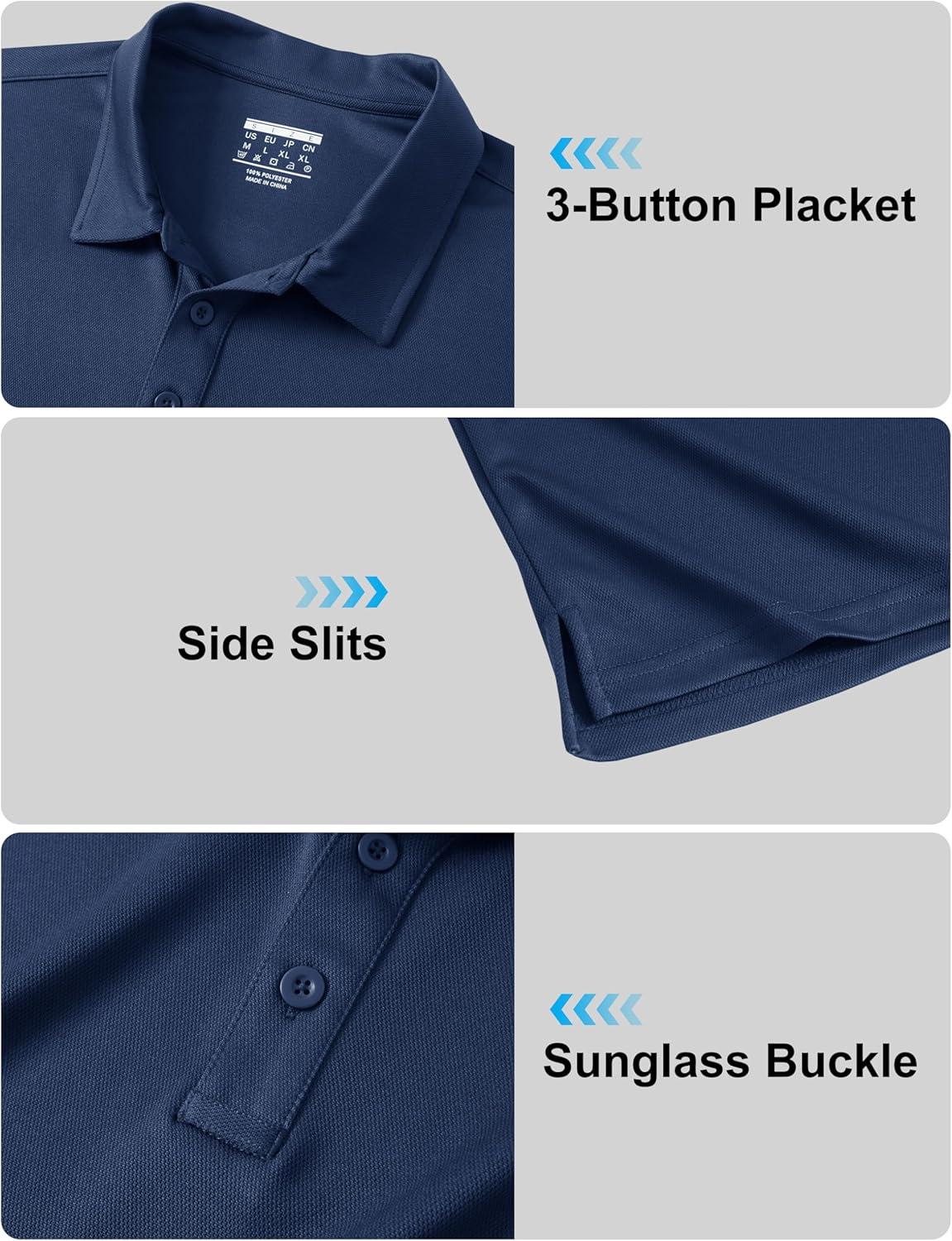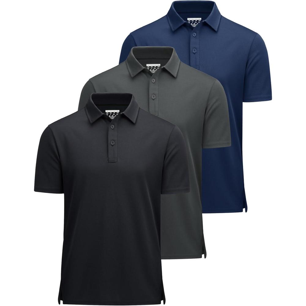MAGCOMSEN 3 Pack Mens Polo Shirts Short Sleeve Athletic Performance Collared Shirt Moisture Wicking Casual Golf Polos(Black/Dark Gray/Navy)