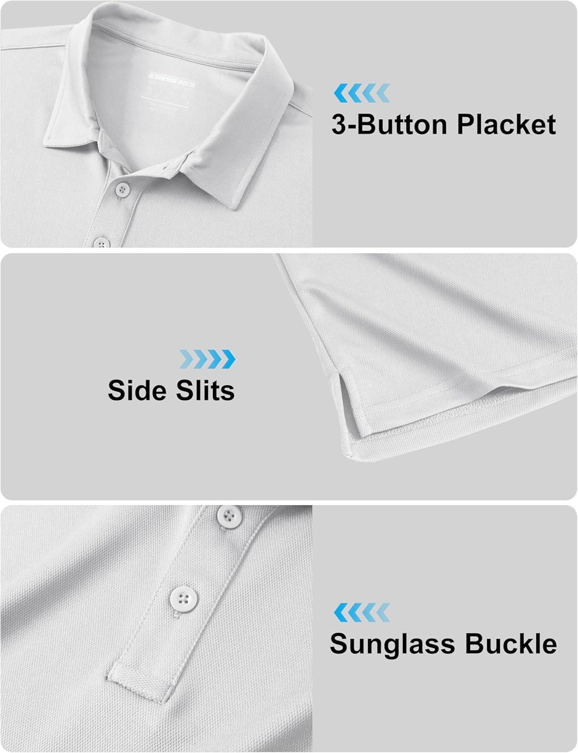 MAGCOMSEN 3 Pack Mens Polo Shirts Short Sleeve Athletic Performance Collared Shirt Moisture Wicking Casual Golf Polos(Black/Dark Gray/White)