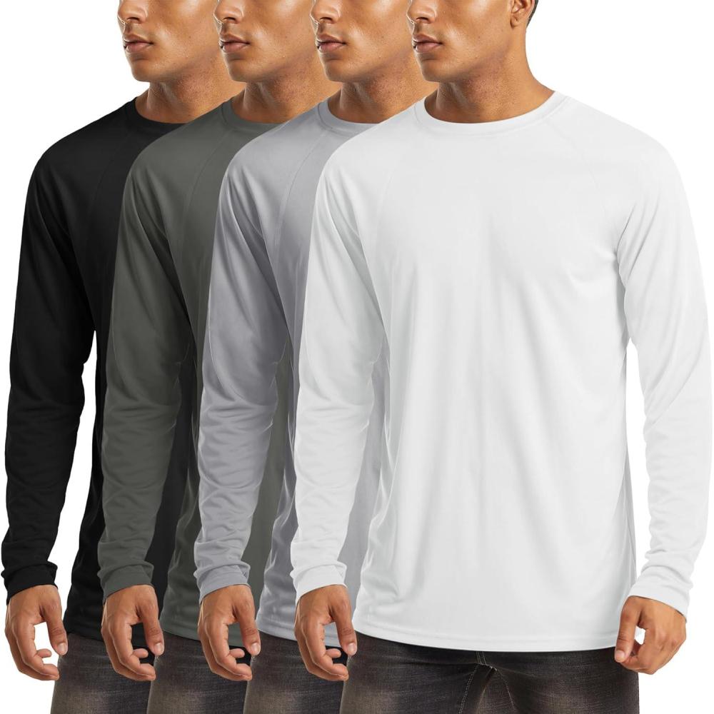 MAGCOMSEN 4 Pack Men’s Shirts Long Sleeve Sun Protection UPF 50+ UV SPF Dry Fit T-Shirts for Workout Athletic(4-black/White/Light Grey/Dark Grey)