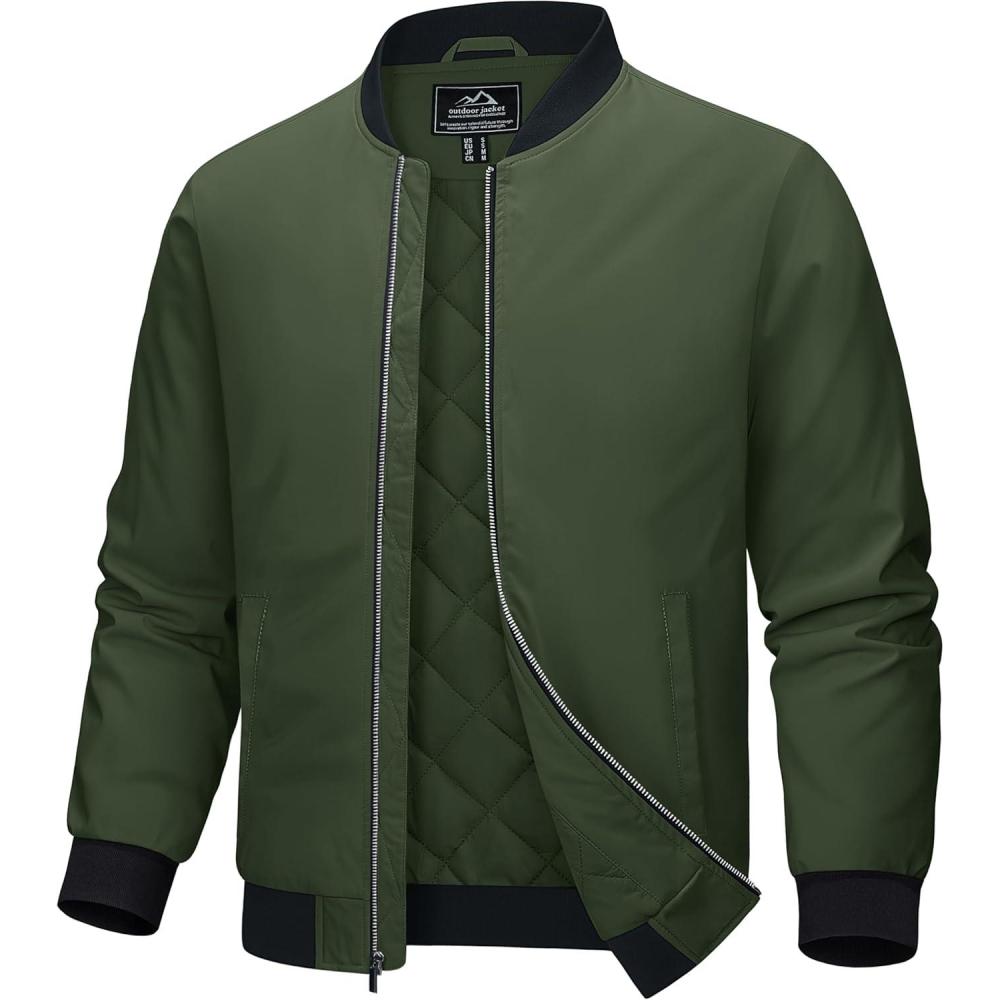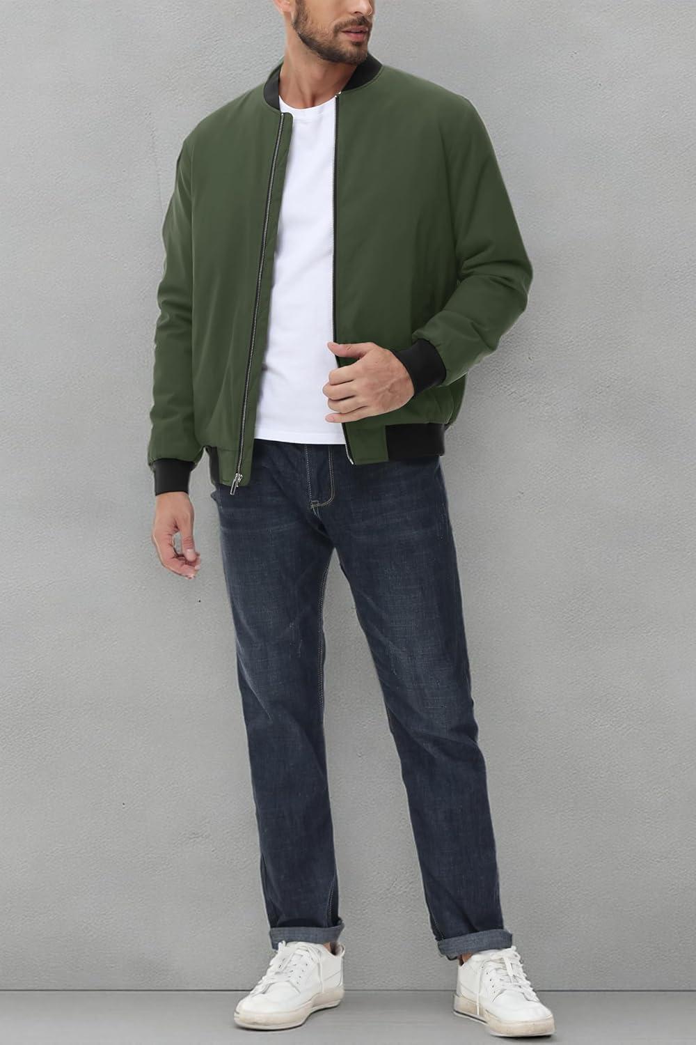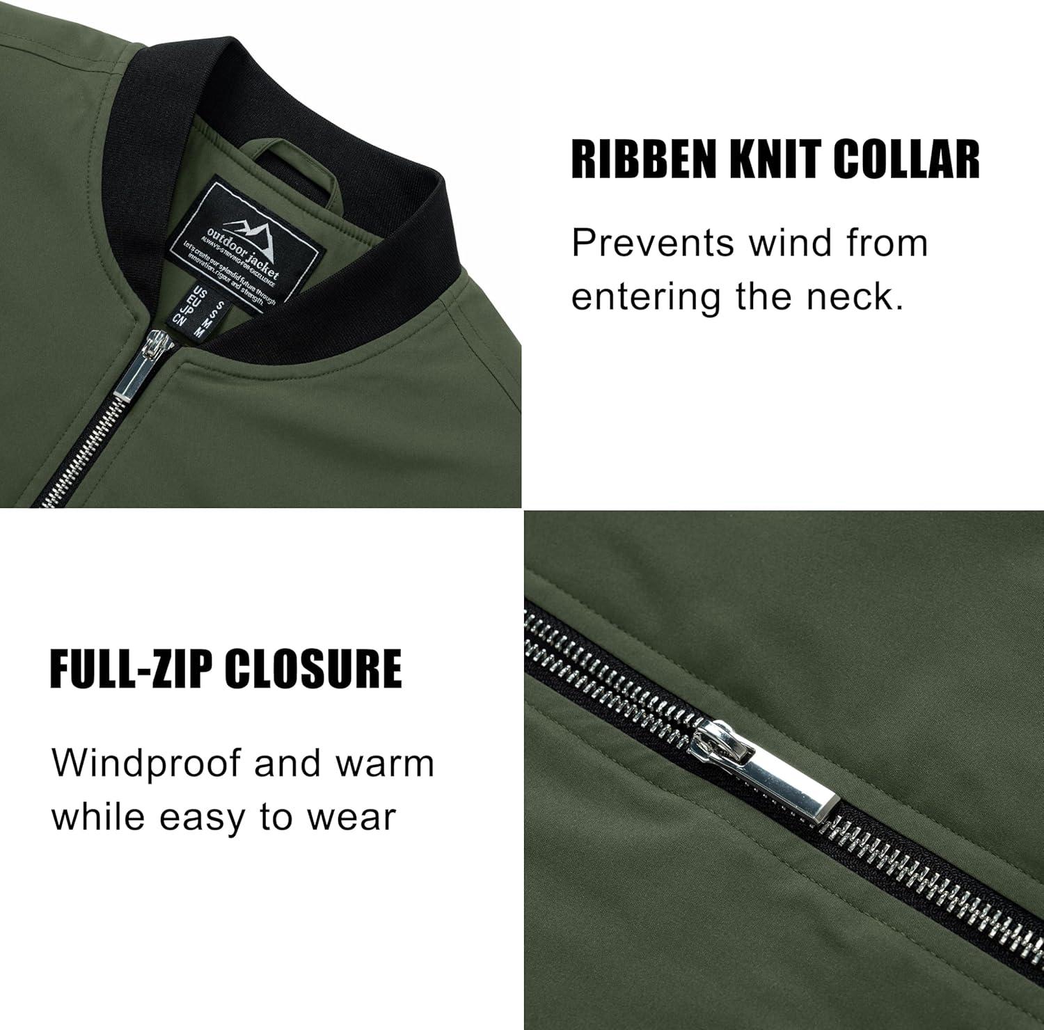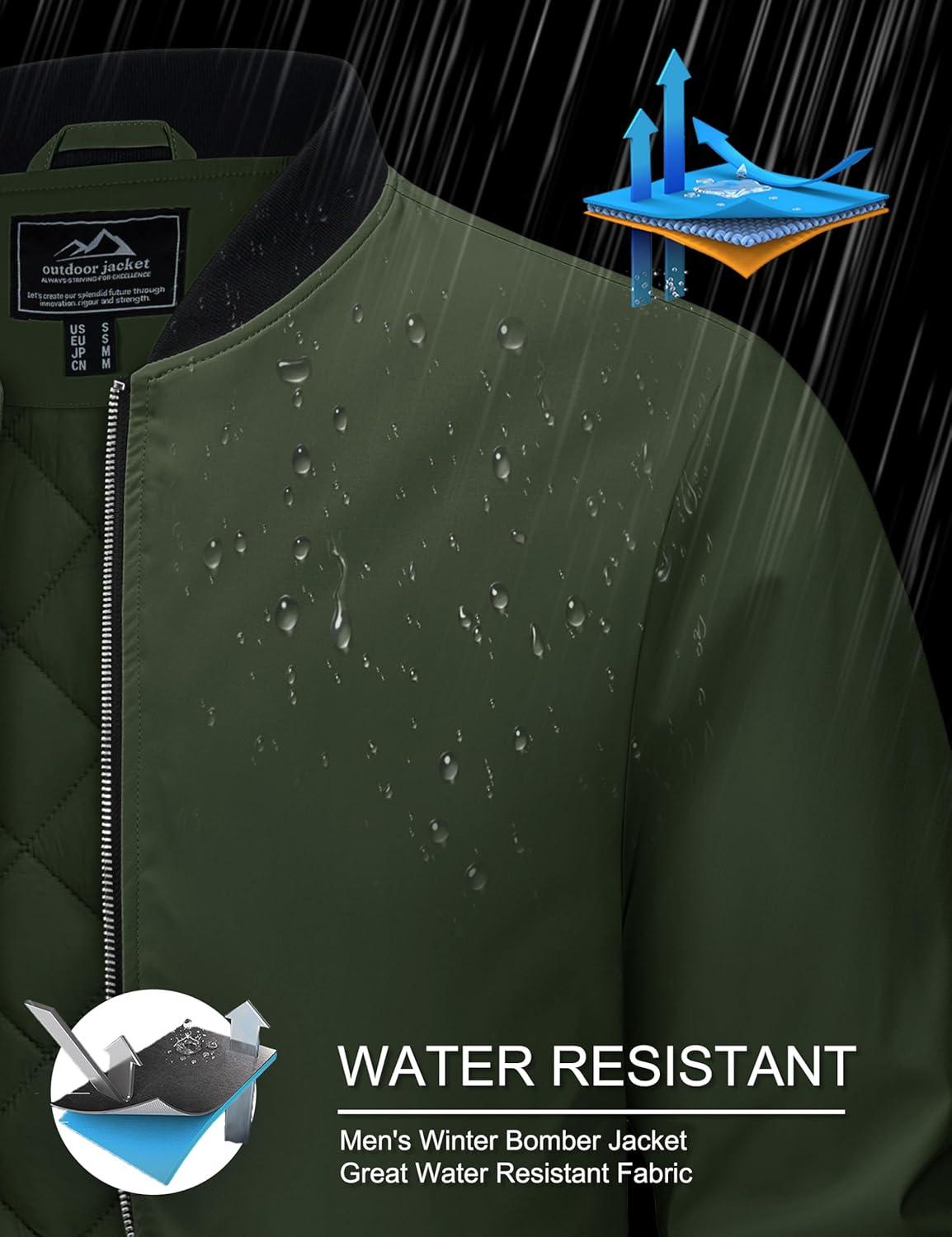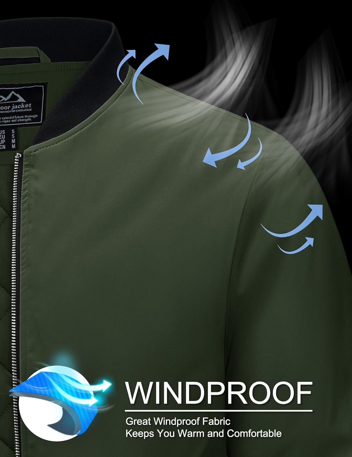 MAGCOMSEN Bomber Jackets for Men Winter Casual Quilted Jacket Warm Windproof Padded Jackets Zip Up Coats(Army Green)