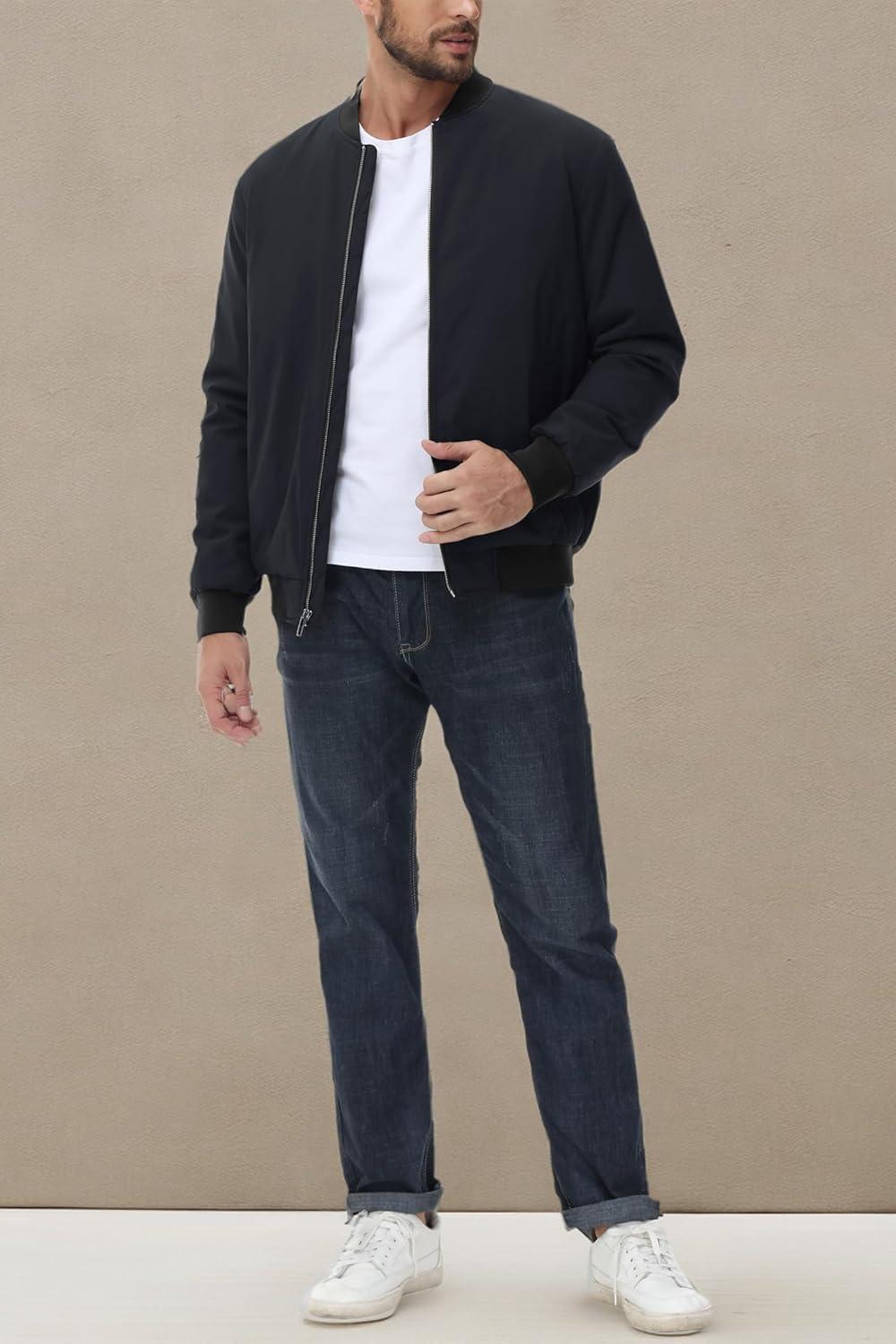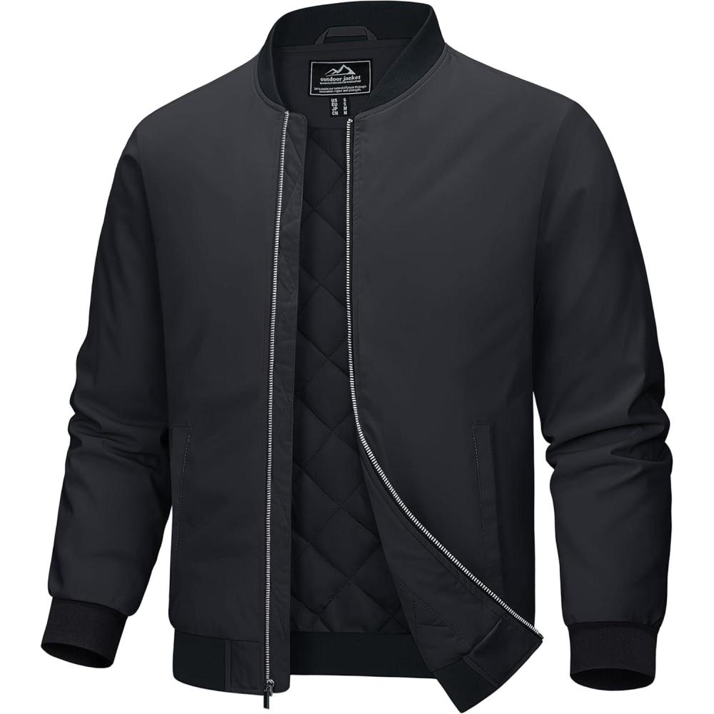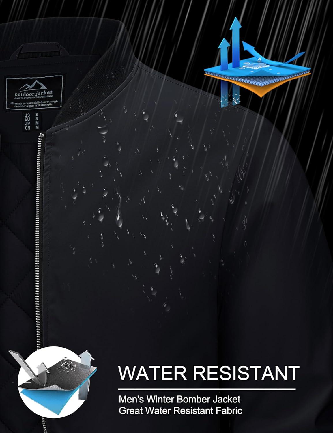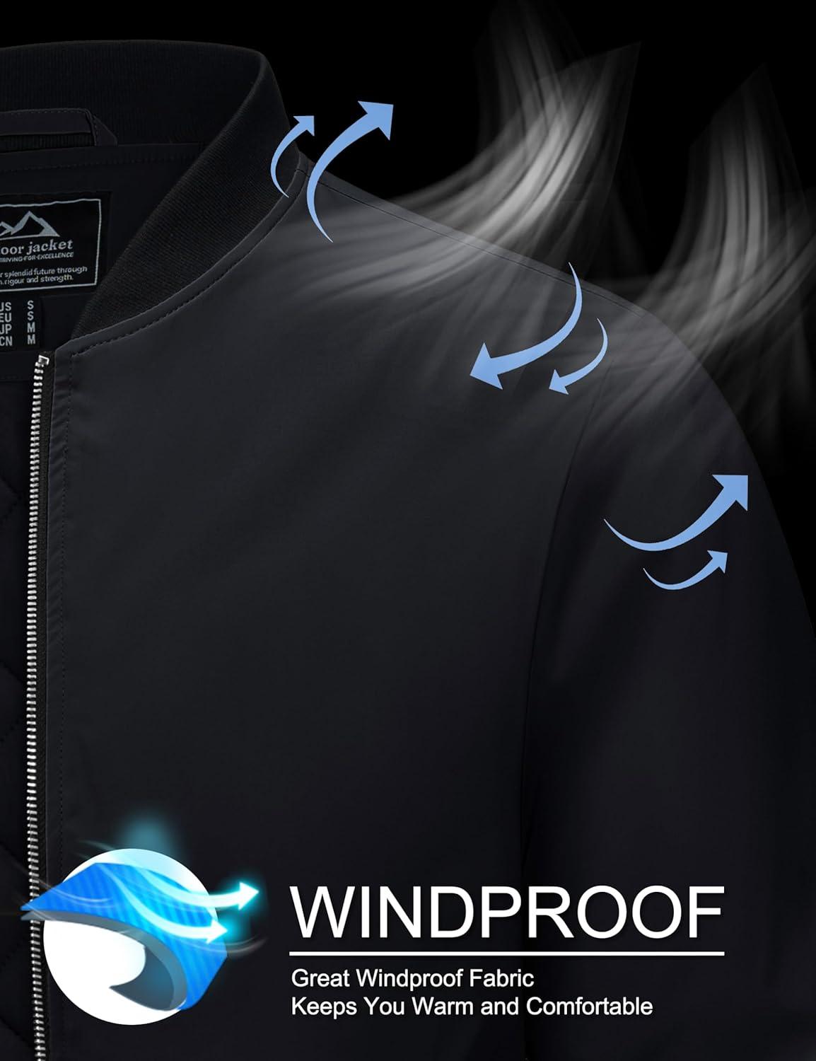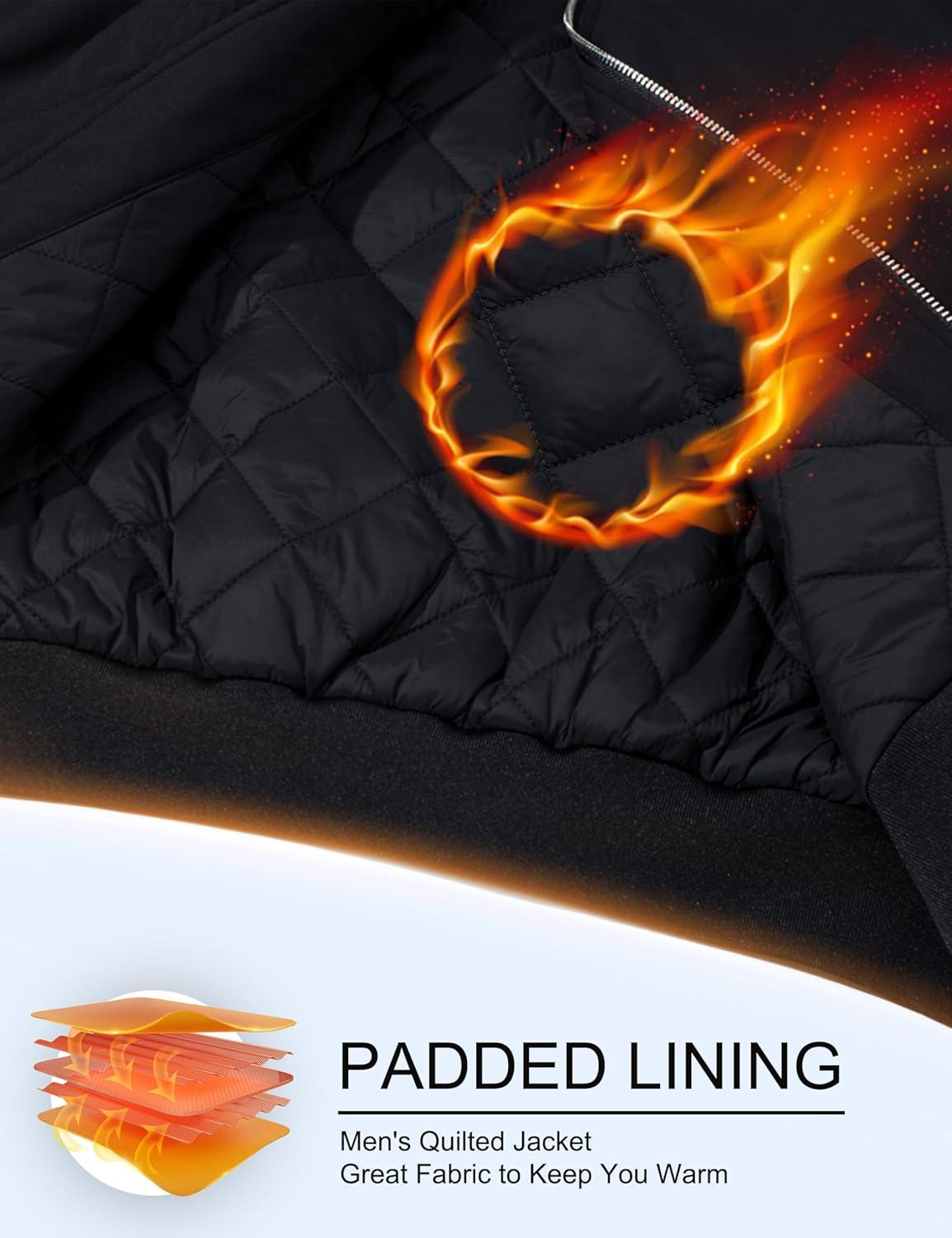 MAGCOMSEN Bomber Jackets for Men Winter Casual Quilted Jacket Warm Windproof Padded Jackets Zip Up Coats(Black)