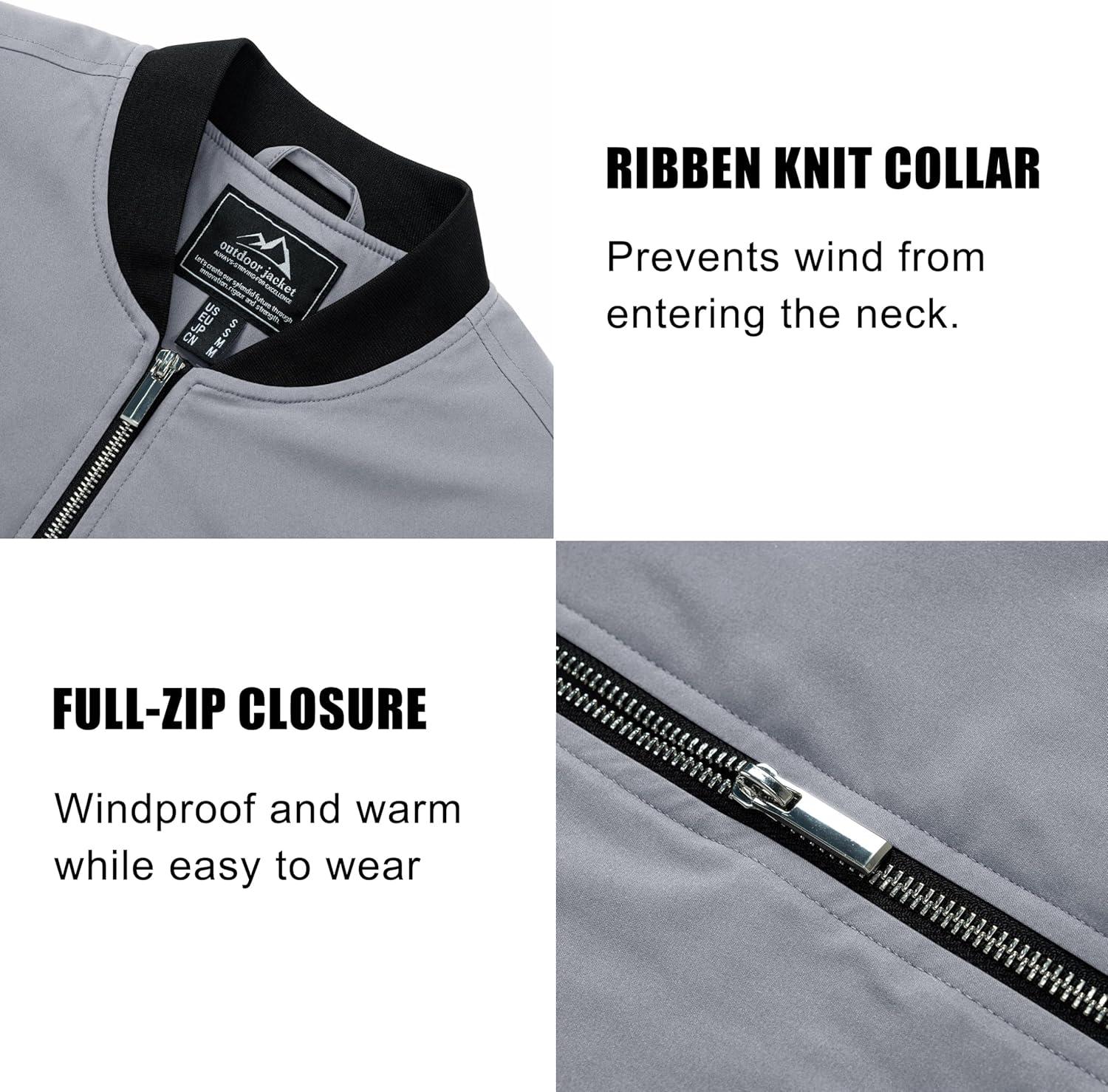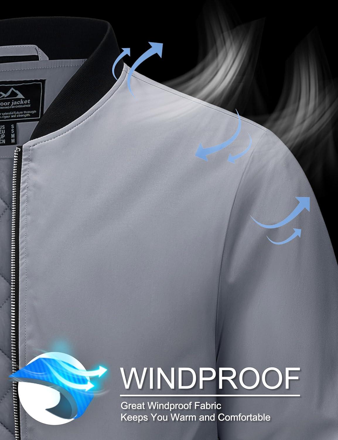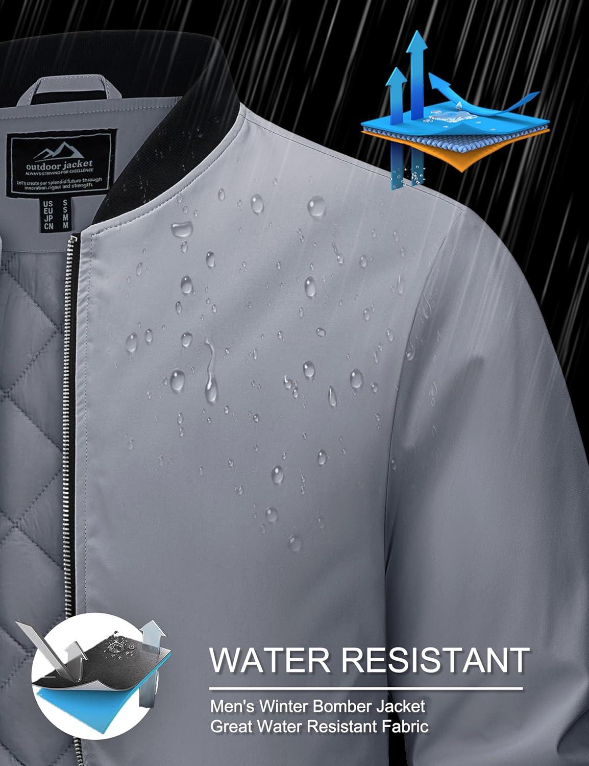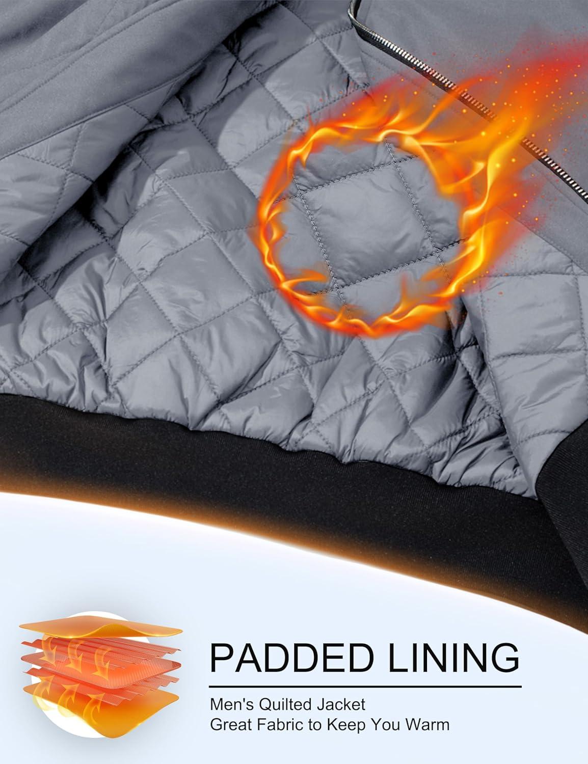 MAGCOMSEN Bomber Jackets for Men Winter Casual Quilted Jacket Warm Windproof Padded Jackets Zip Up Coats(Light Grey)