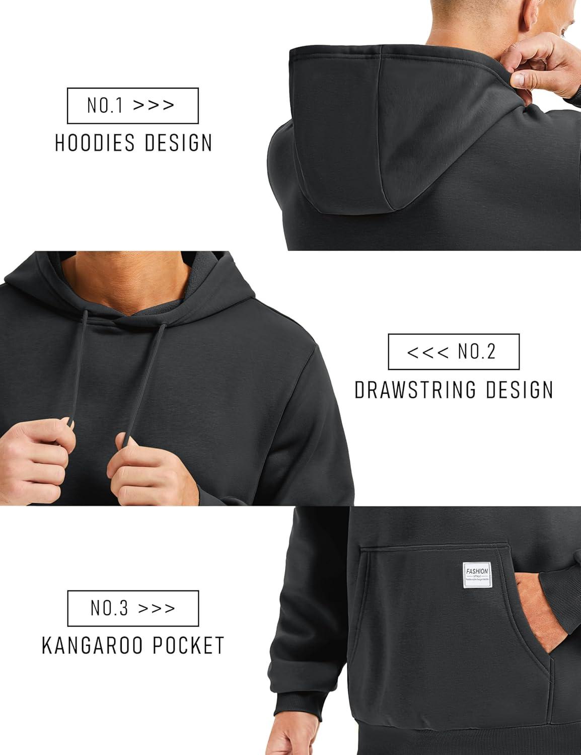 MAGCOMSEN Fleece Lined Hoodies for Men Pullover Casual Fashion Sweatshirts Thermal Athletic Hoody with Kanga Pocket(Darkgray)