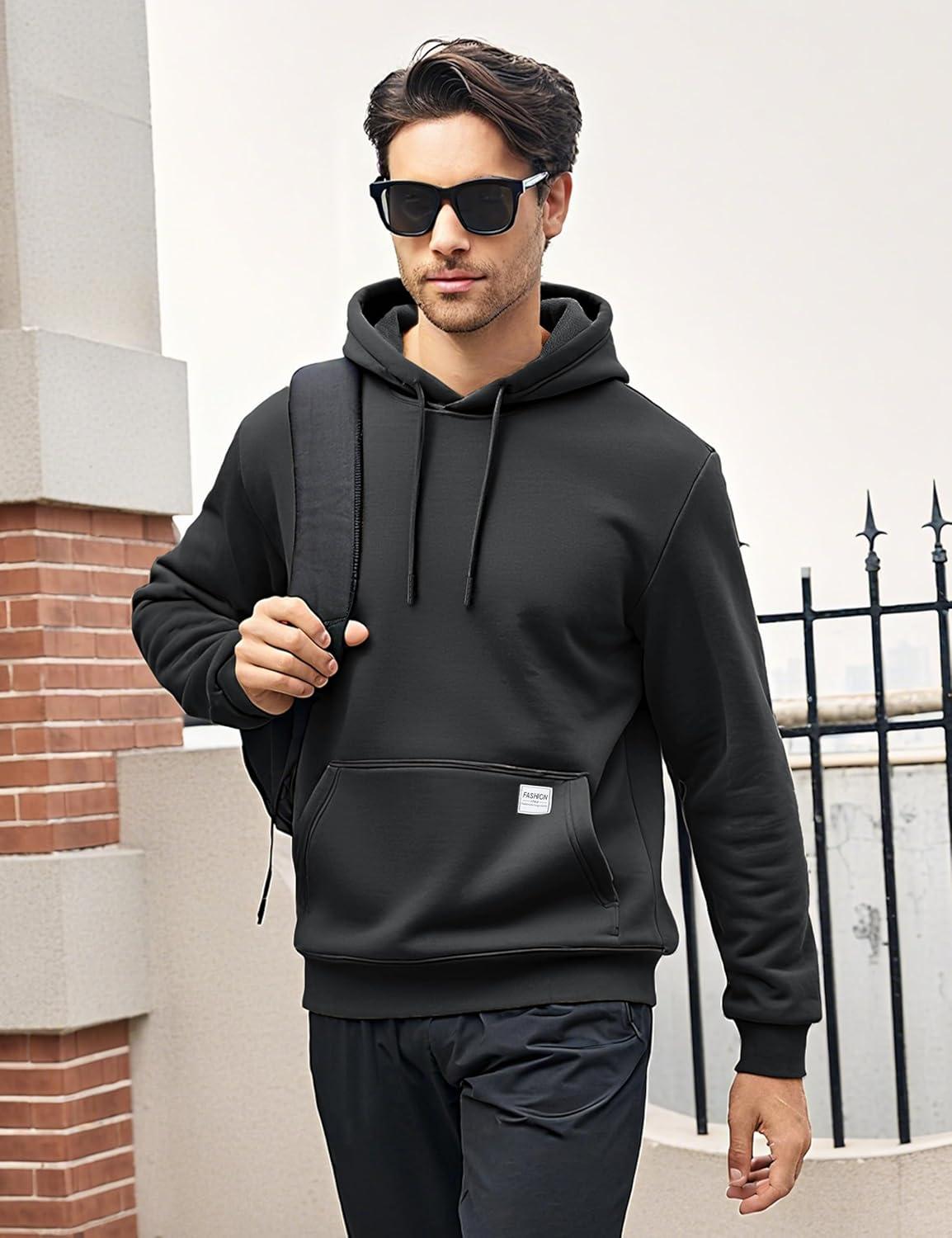 MAGCOMSEN Fleece Lined Hoodies for Men Pullover Casual Fashion Sweatshirts Thermal Athletic Hoody with Kanga Pocket(Black)
