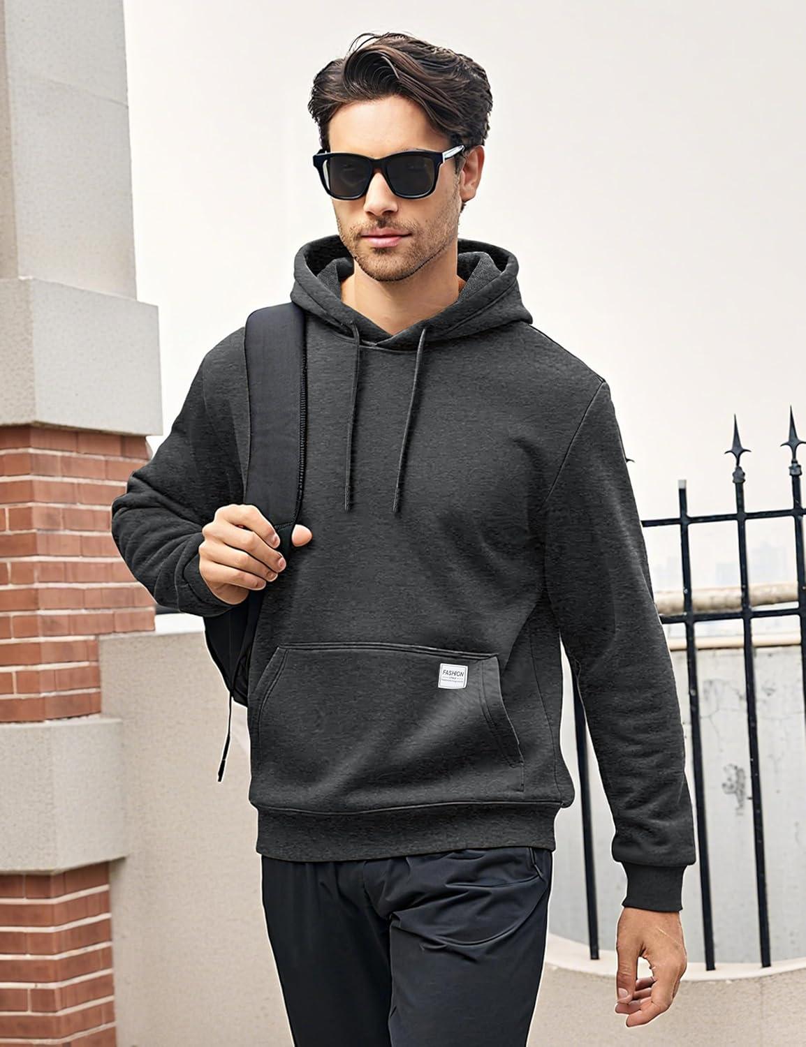 MAGCOMSEN Fleece Lined Hoodies for Men Pullover Casual Fashion Sweatshirts Thermal Athletic Hoody with Kanga Pocket(Darkgray)