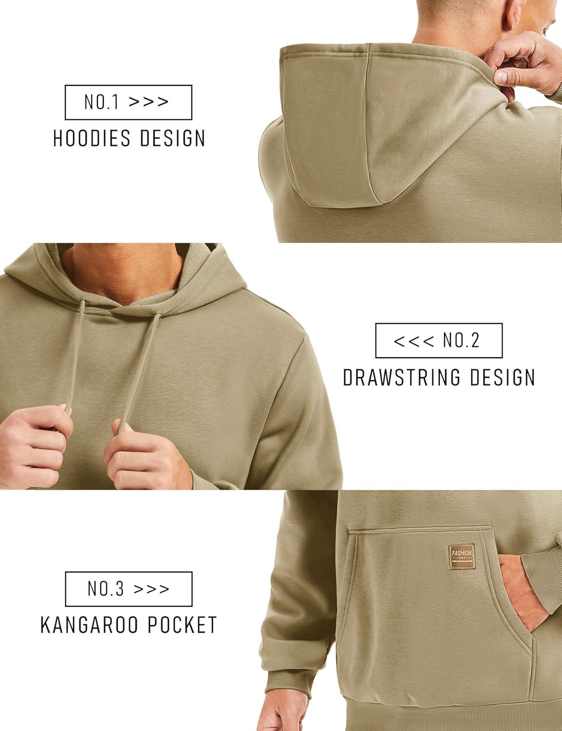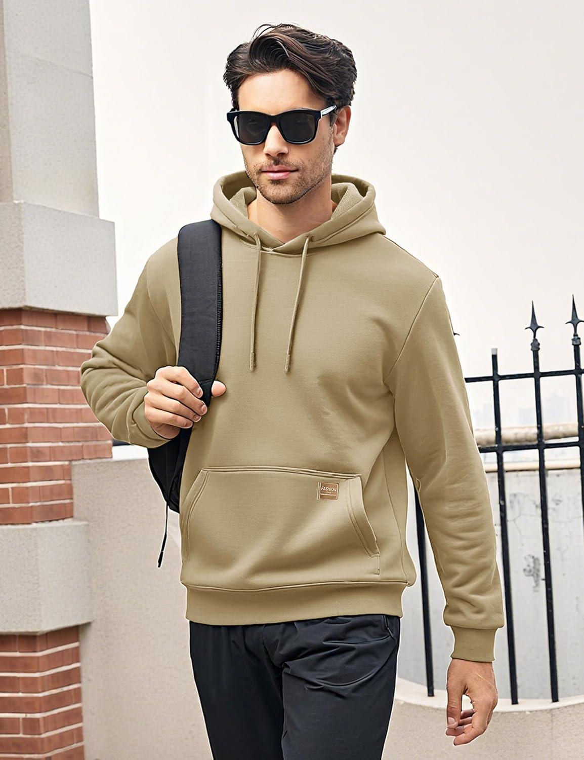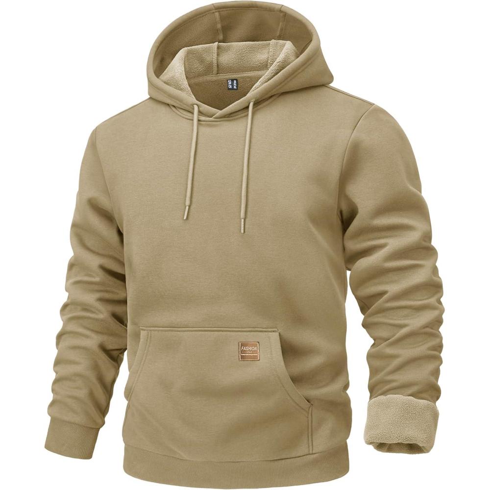 MAGCOMSEN Fleece Lined Hoodies for Men Pullover Casual Fashion Sweatshirts Thermal Athletic Hoody with Kanga Pocket(Khaki)