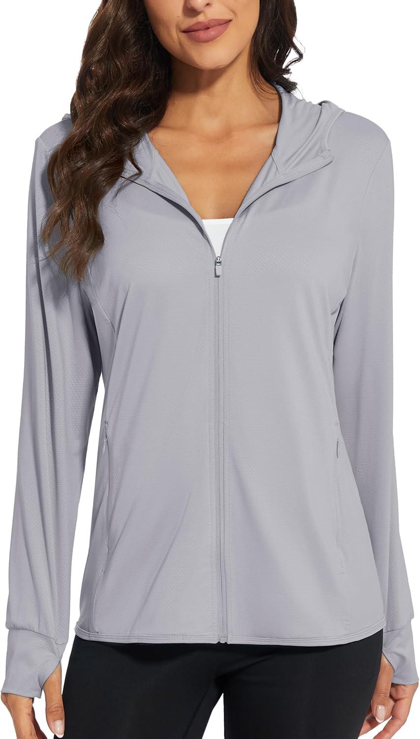MAGCOMSEN Jackets for Women Full Zip Up Lightweight Long Sleeve UPF 50+ Workout Workout Sun Protection Hoodie(Light Grey)