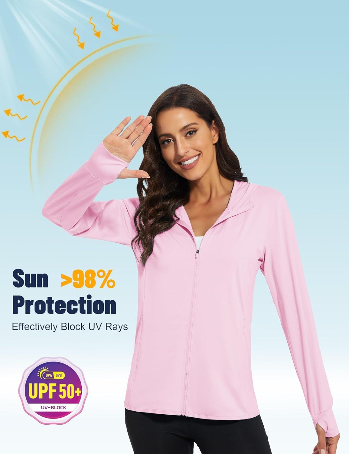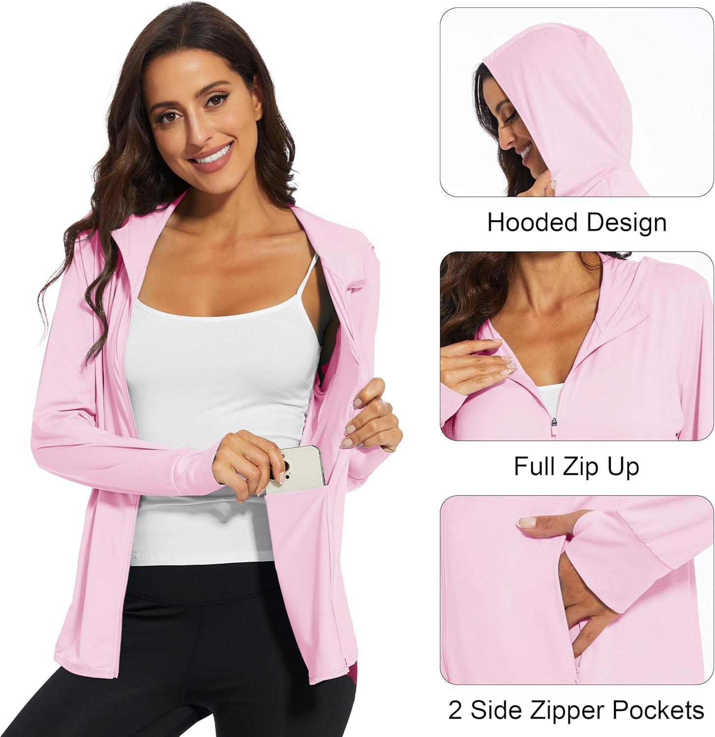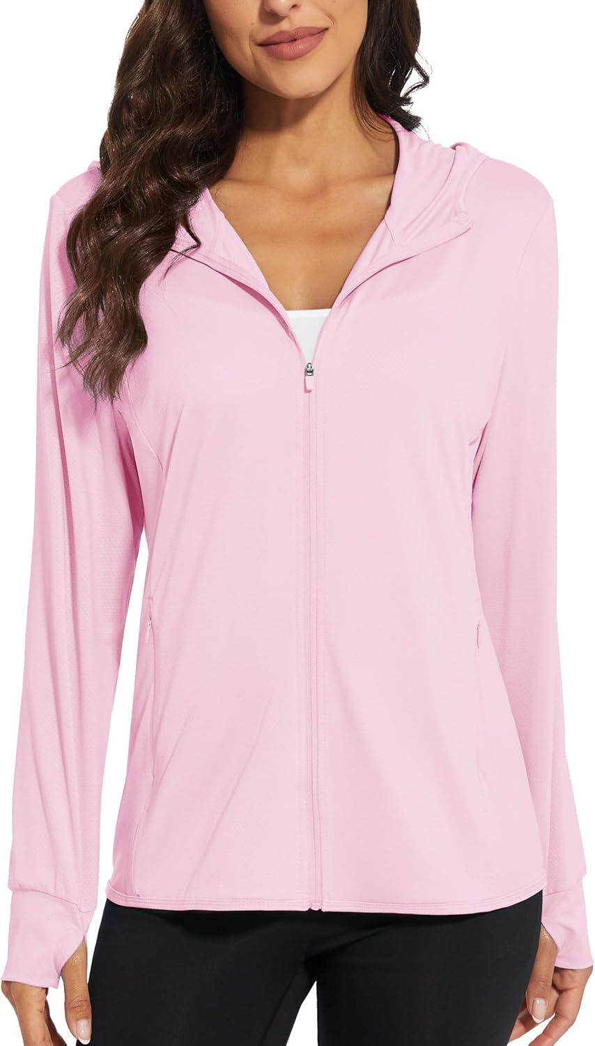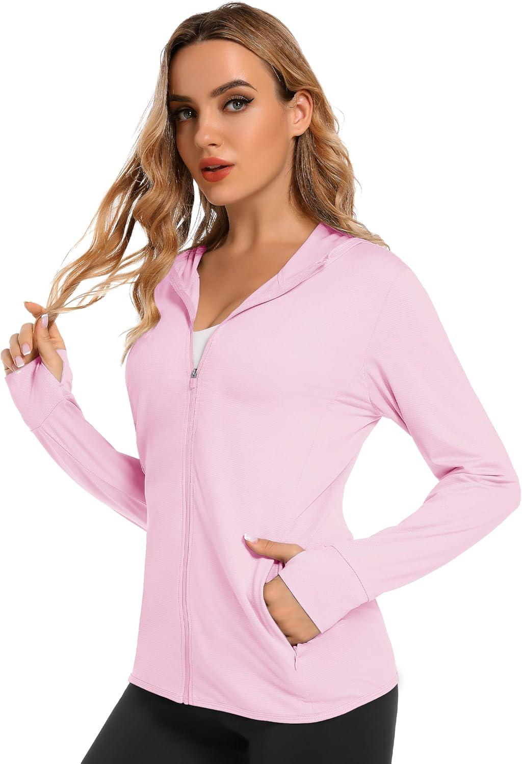 MAGCOMSEN Jackets for Women Full Zip Up Lightweight Long Sleeve UPF 50+ Workout Workout Sun Protection Hoodie(Light Pink)