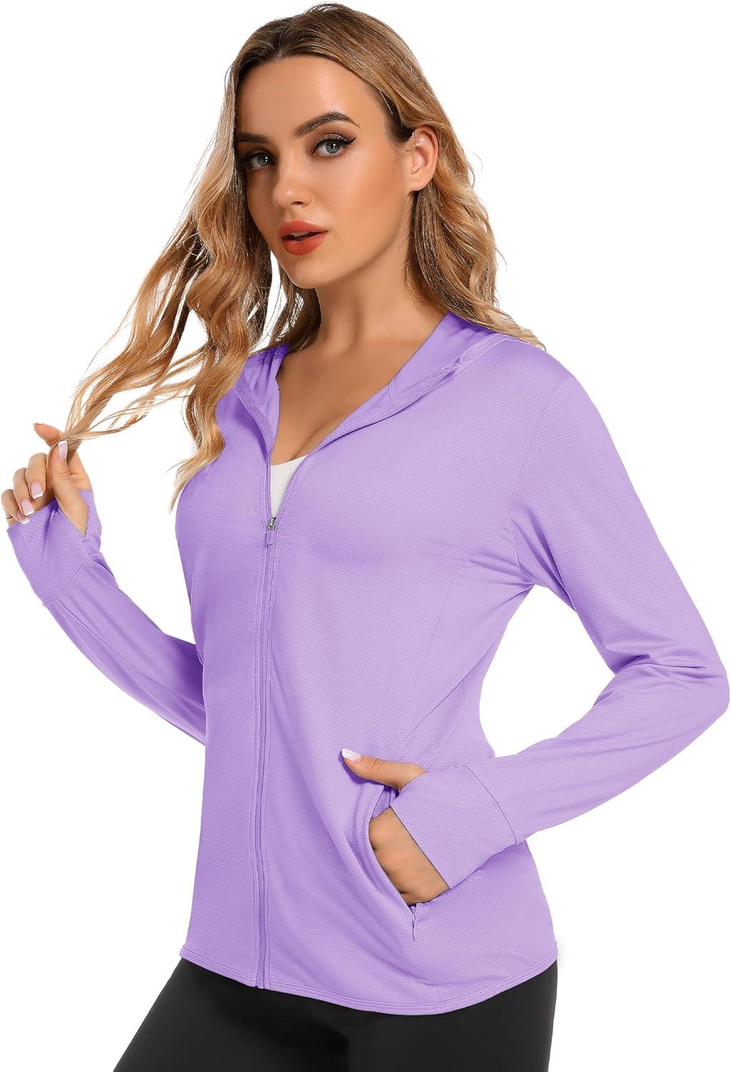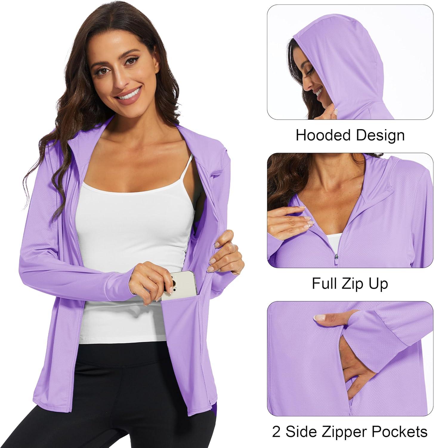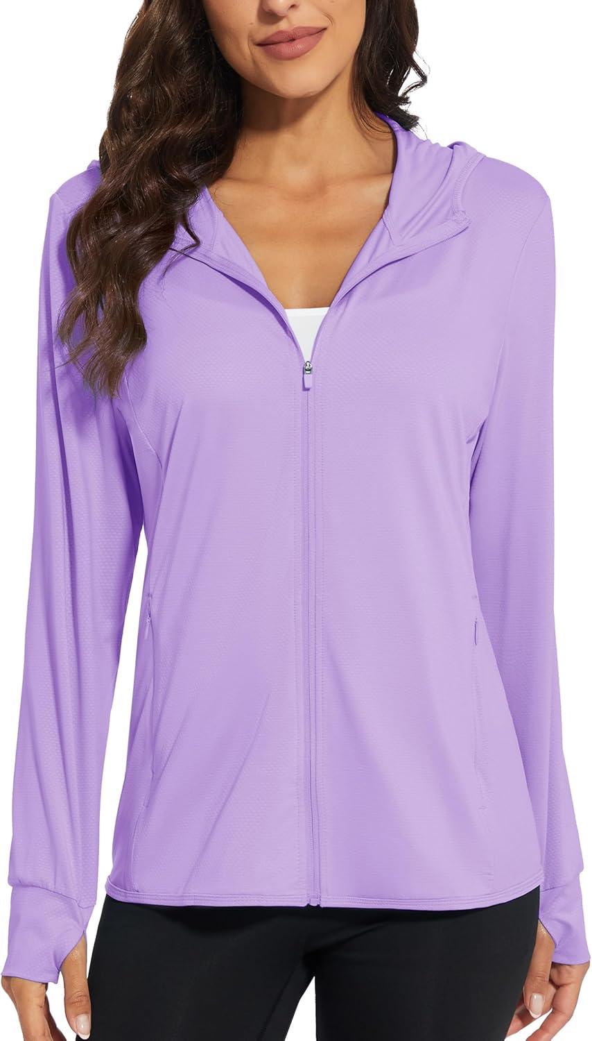 MAGCOMSEN Jackets for Women Full Zip Up Lightweight Long Sleeve UPF 50+ Workout Workout Sun Protection Hoodie(Light Purple)