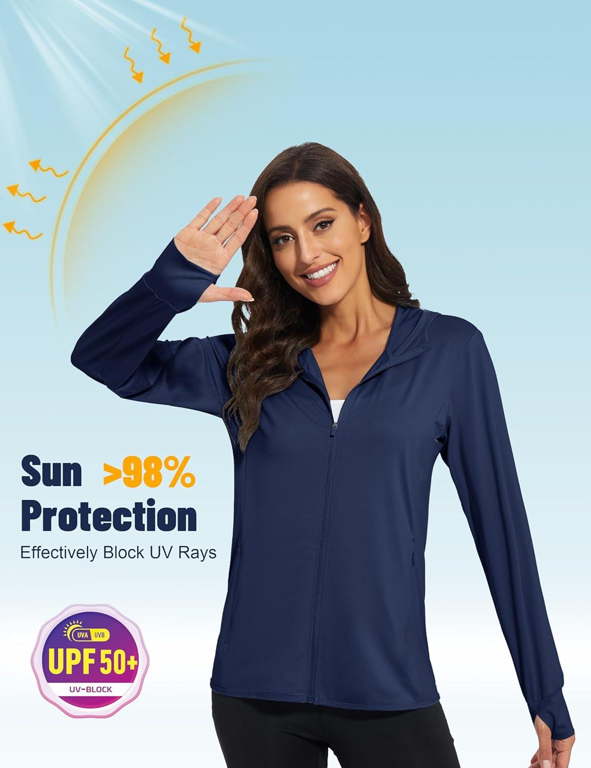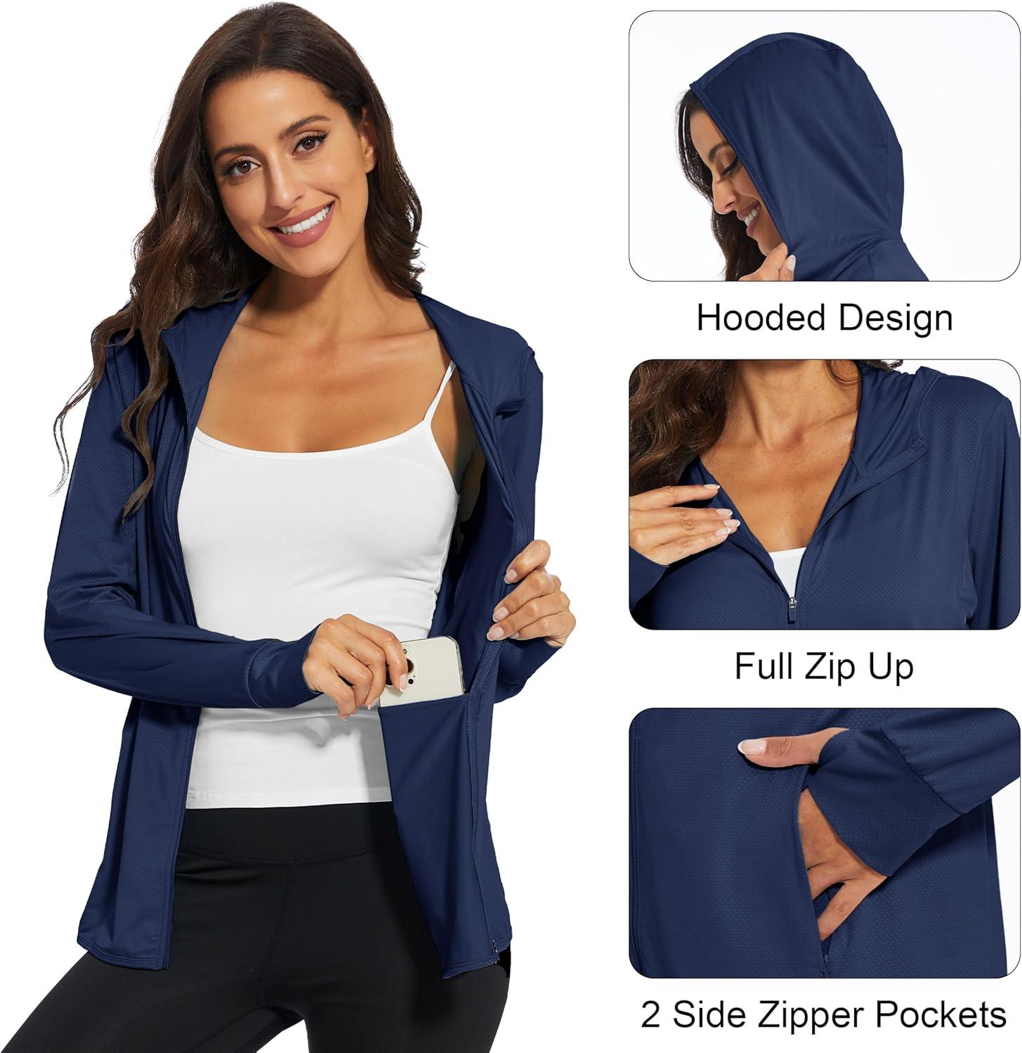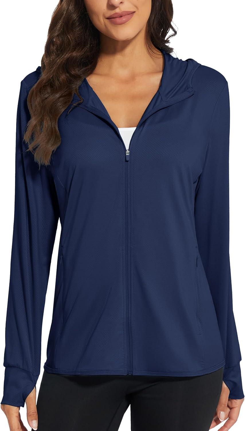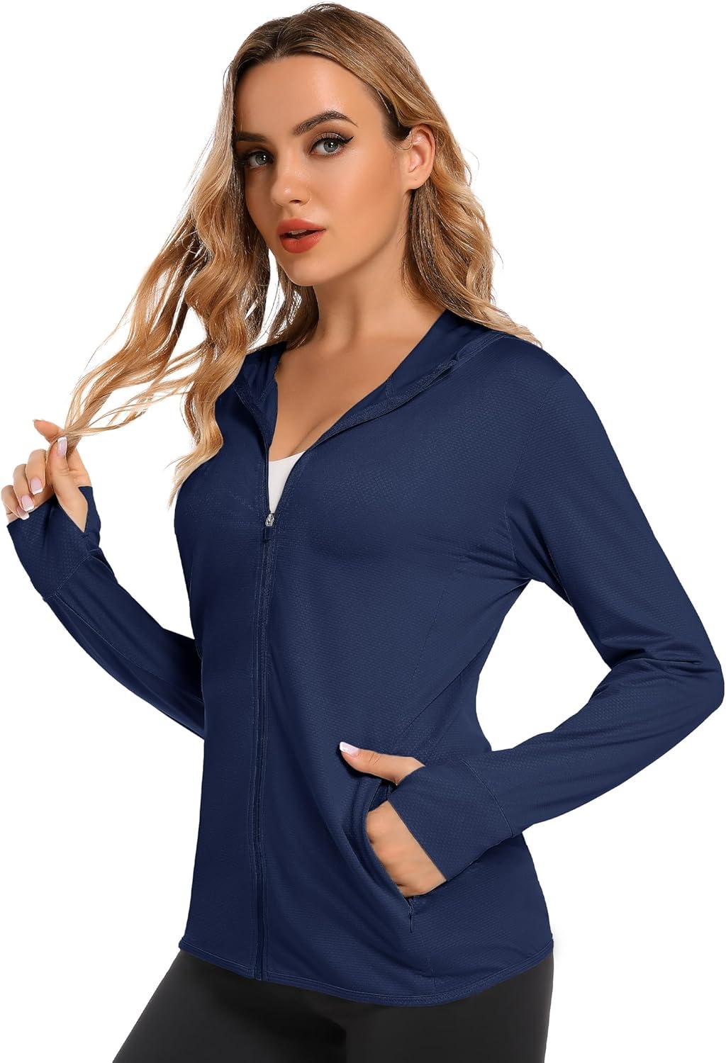 MAGCOMSEN Jackets for Women Full Zip Up Lightweight Long Sleeve UPF 50+ Workout Workout Sun Protection Hoodie(Navy)