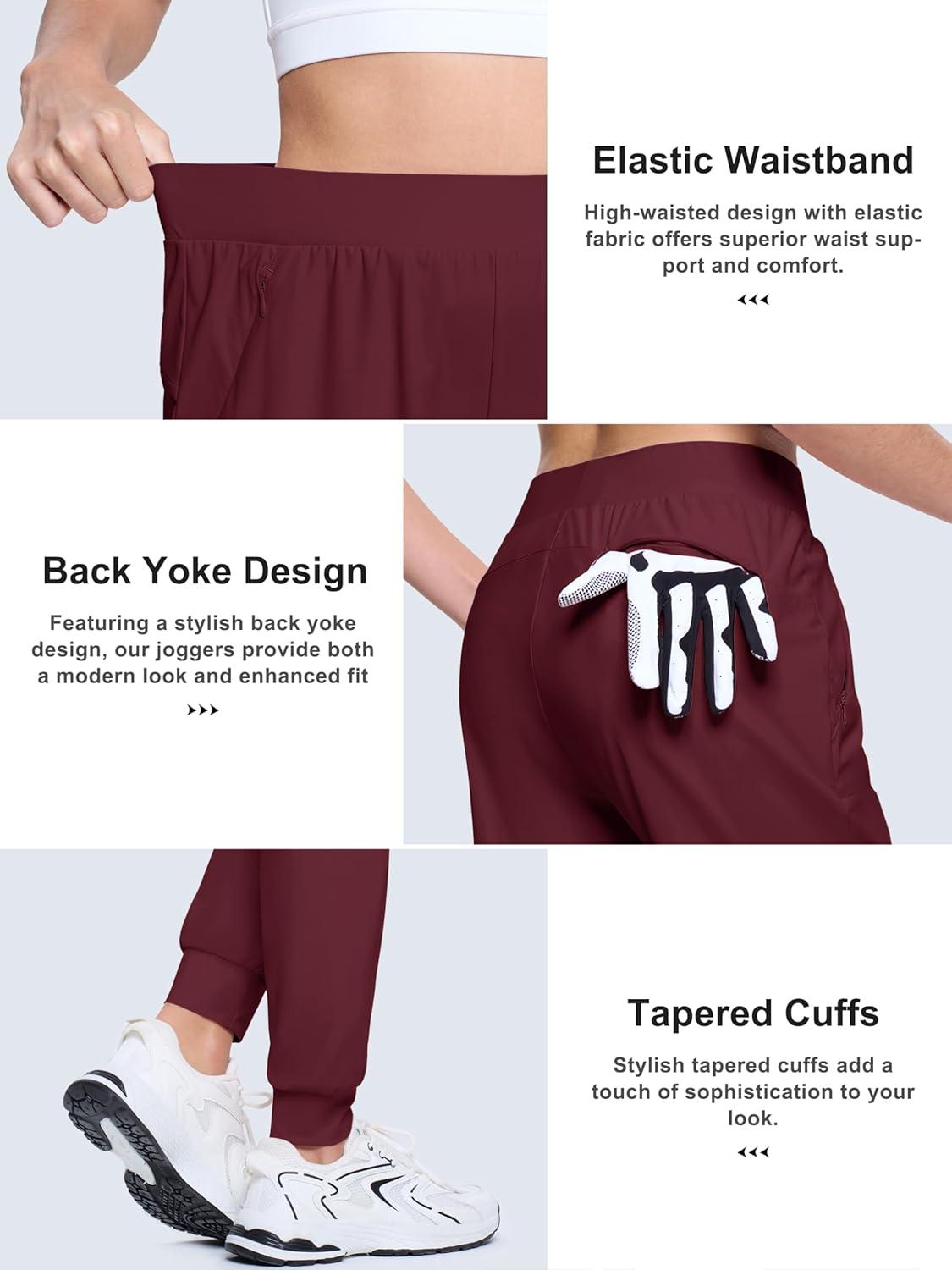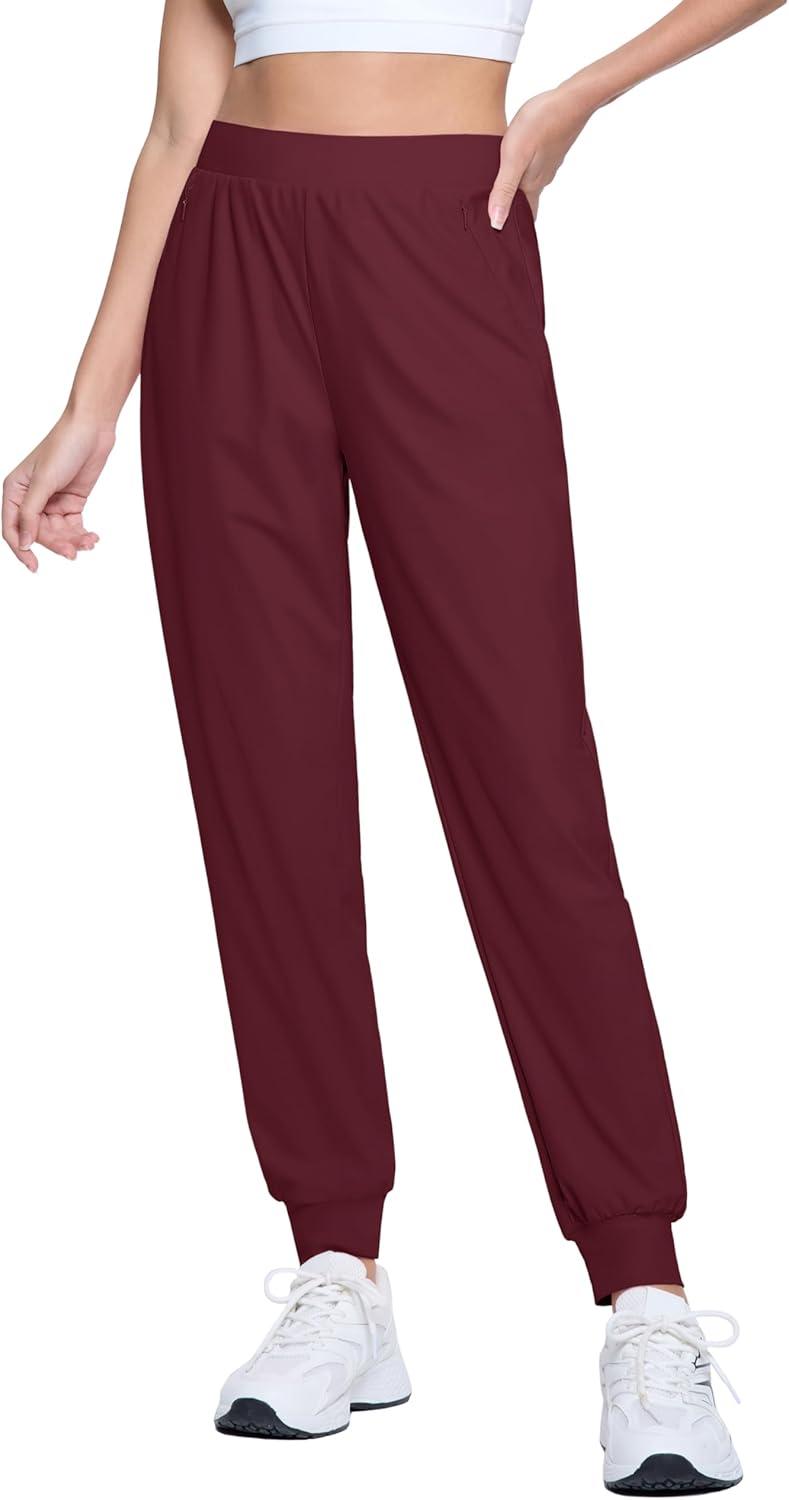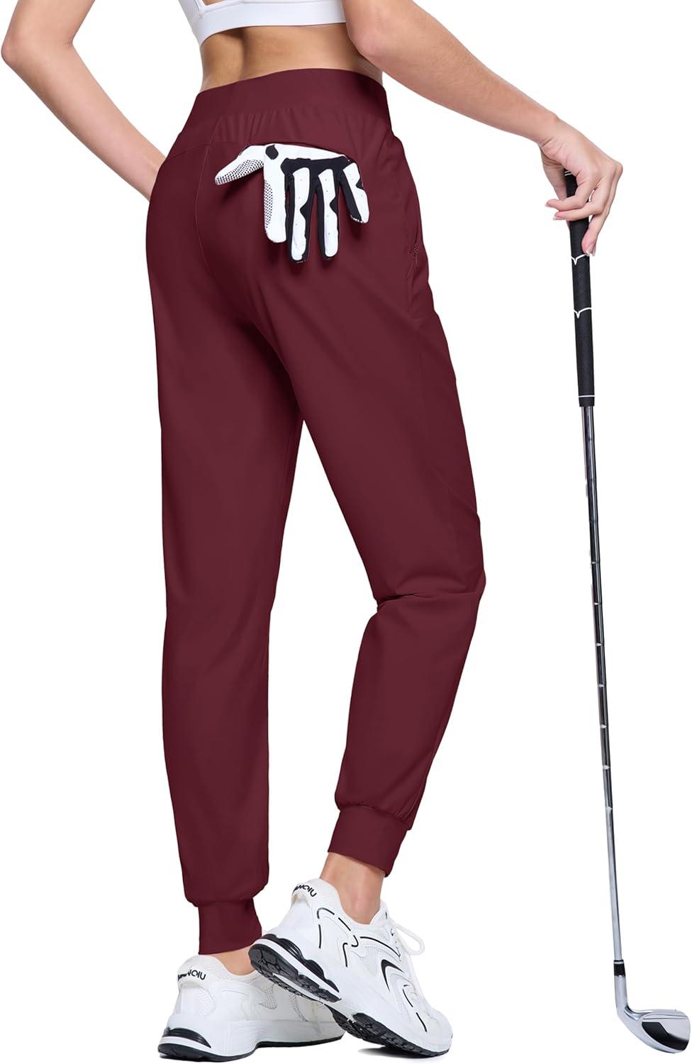 MAGCOMSEN Joggers for Women High Waisted Golf Pants Lightweight Hiking Pants Quick Dry Workout Running Athletic Joggers(Wine Red)