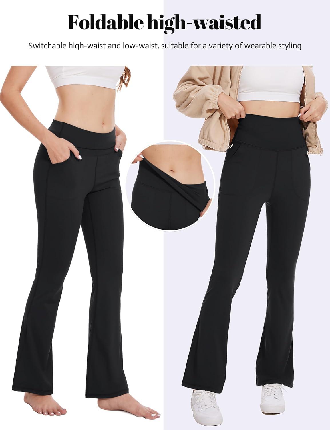 MAGCOMSEN Leggings for Women Flare Yoga Pants Foldover High Waisted Tummy Control Pants with Pockets Casual(Black)