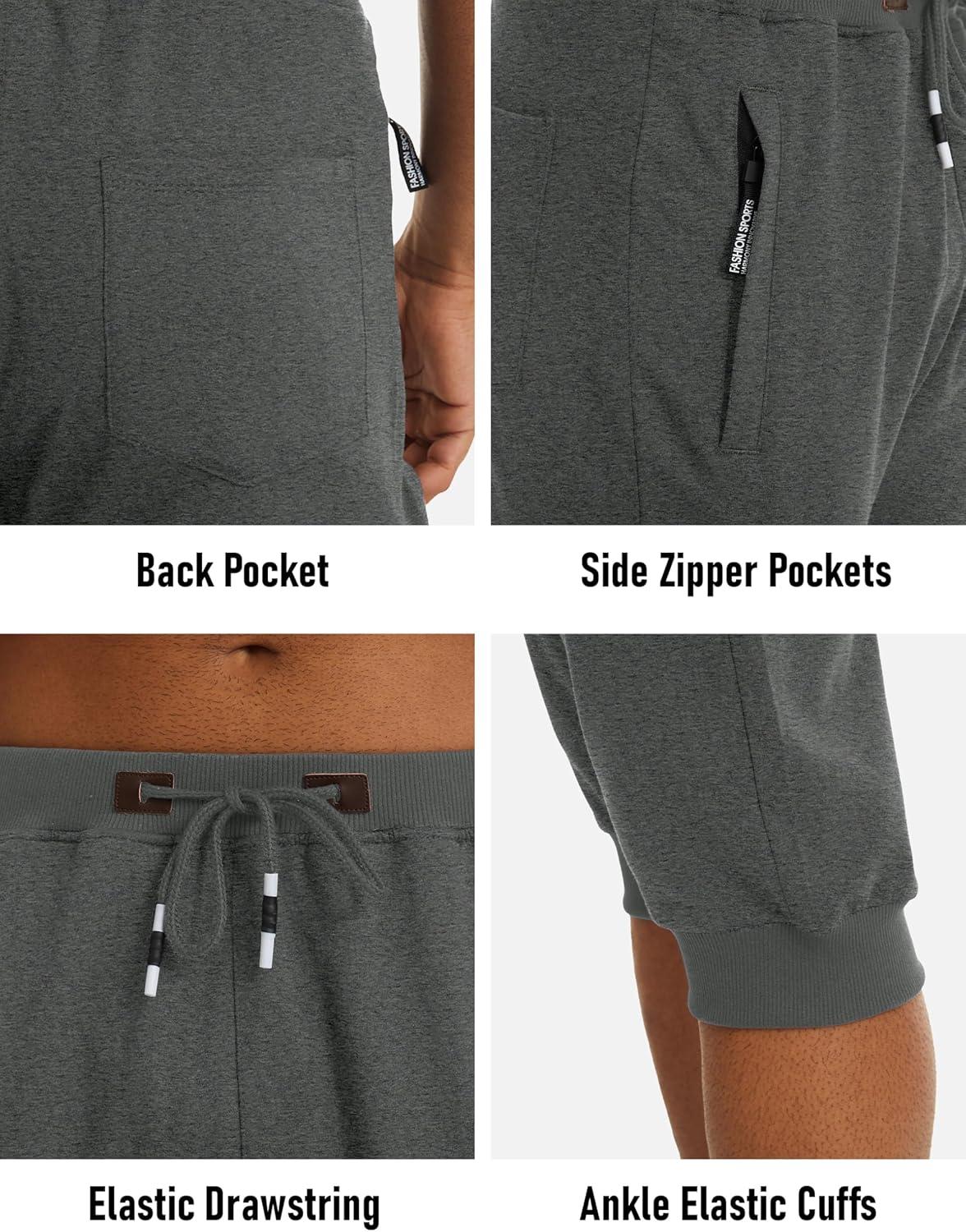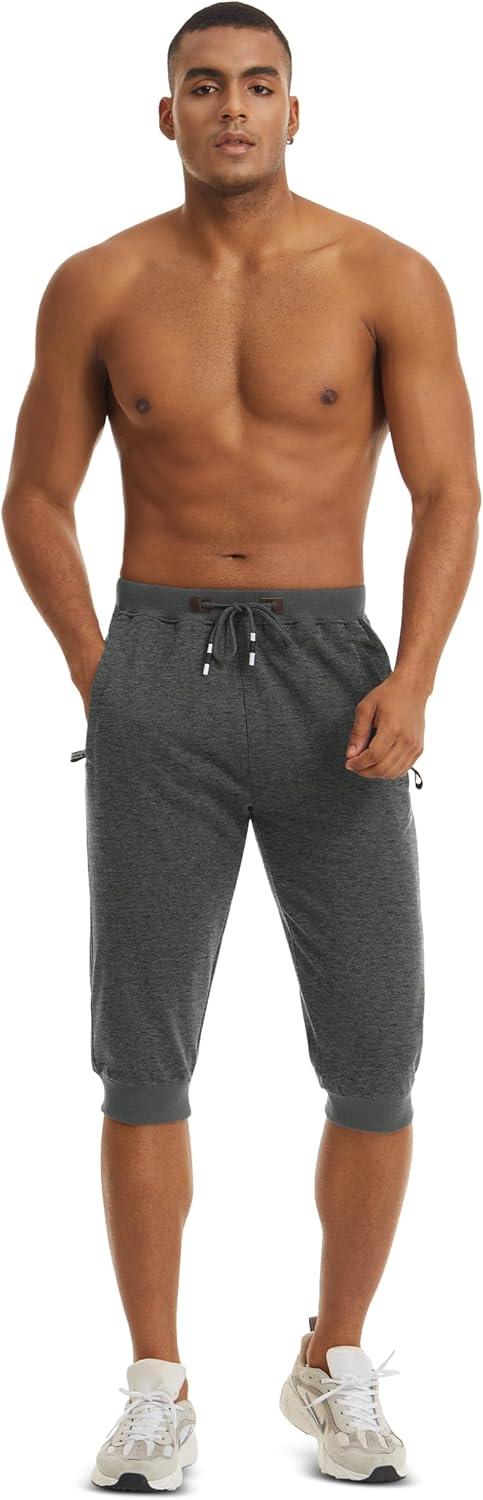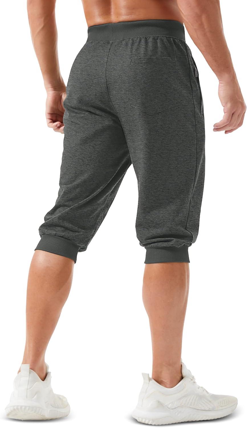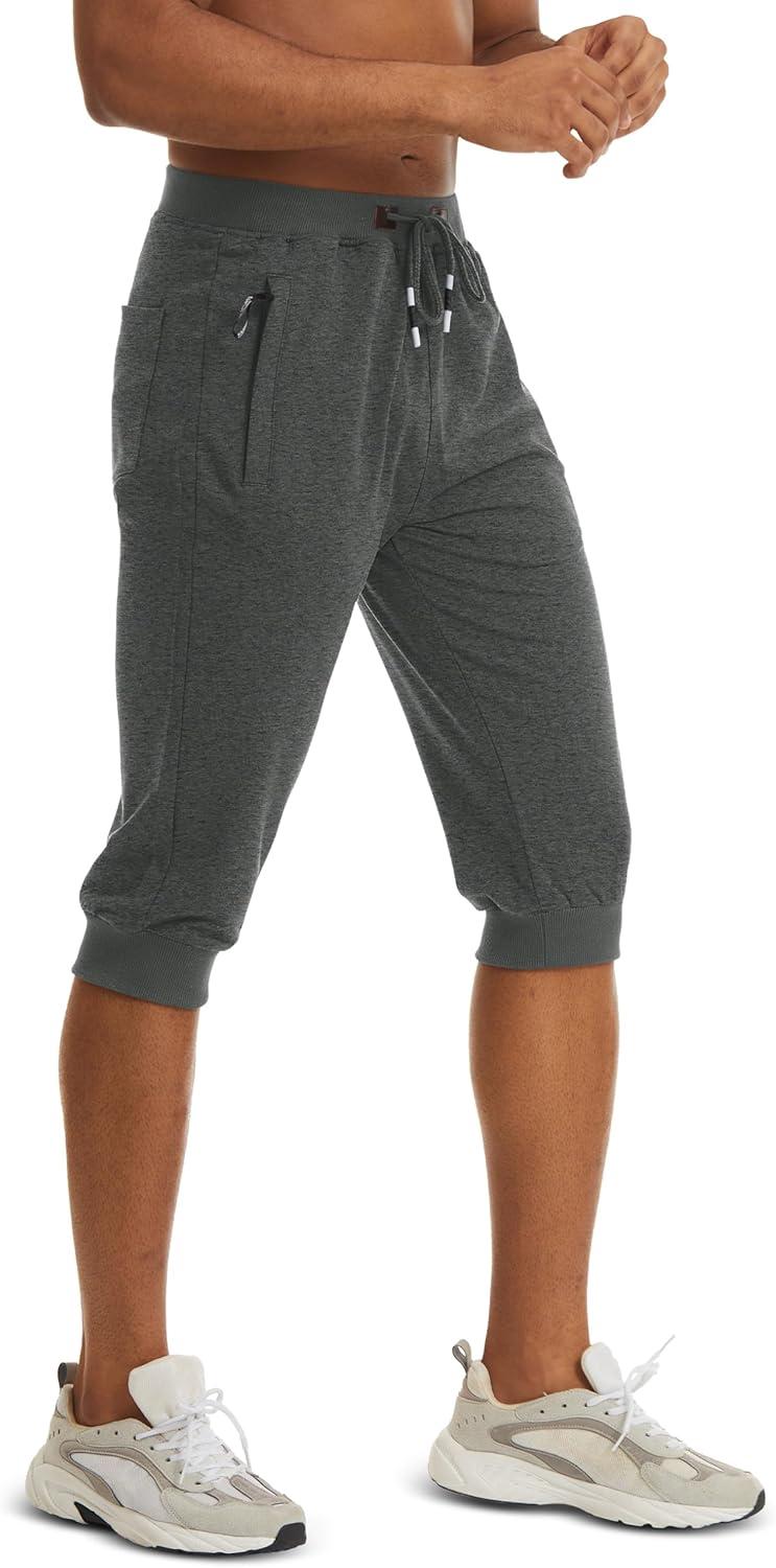 MAGCOMSEN Men’s 3/4 Jogger Capri Pants with Zipper Pockets Knee Length Running Training Workout Shorts(Dark Grey)