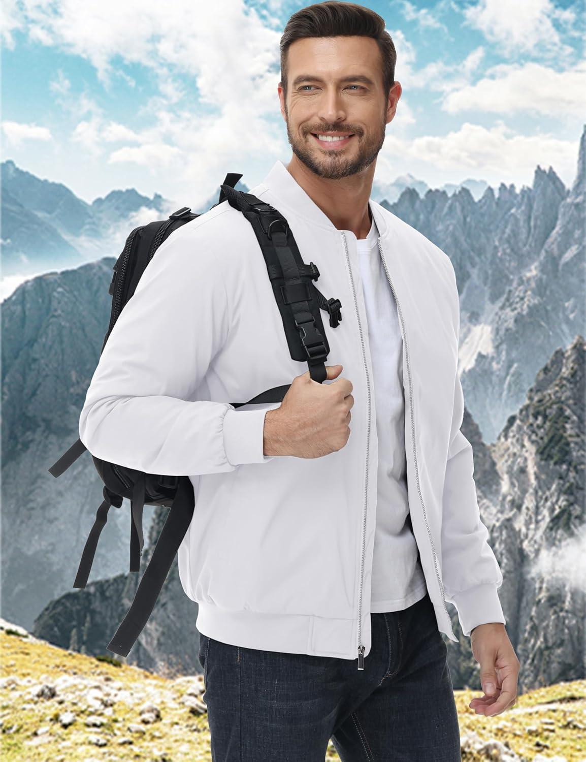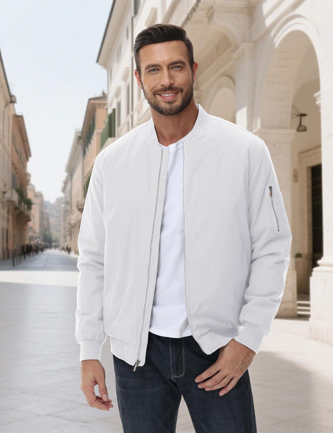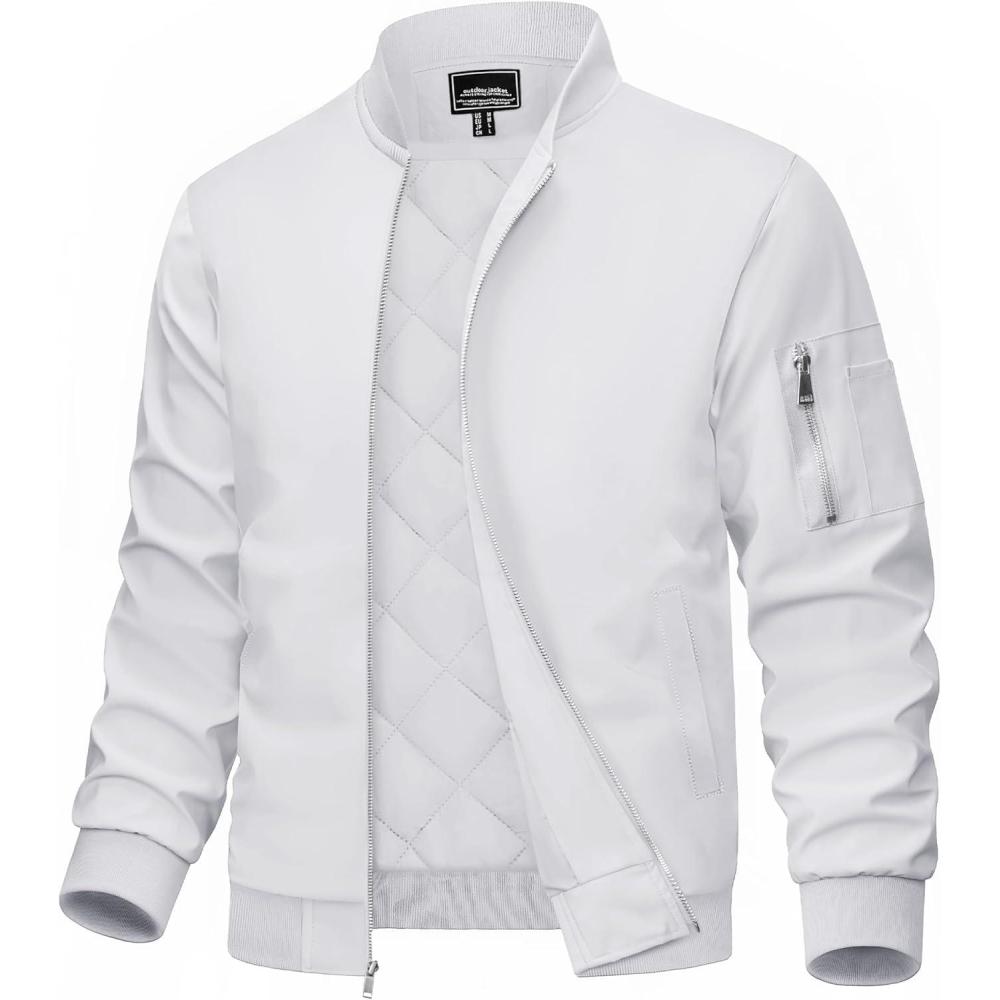 MAGCOMSEN Men’s Bomber Jacket Casual Windproof Quilted Jacket Full Zip Windbreaker Winter Warm Varsity Jacket with Pockets(White)