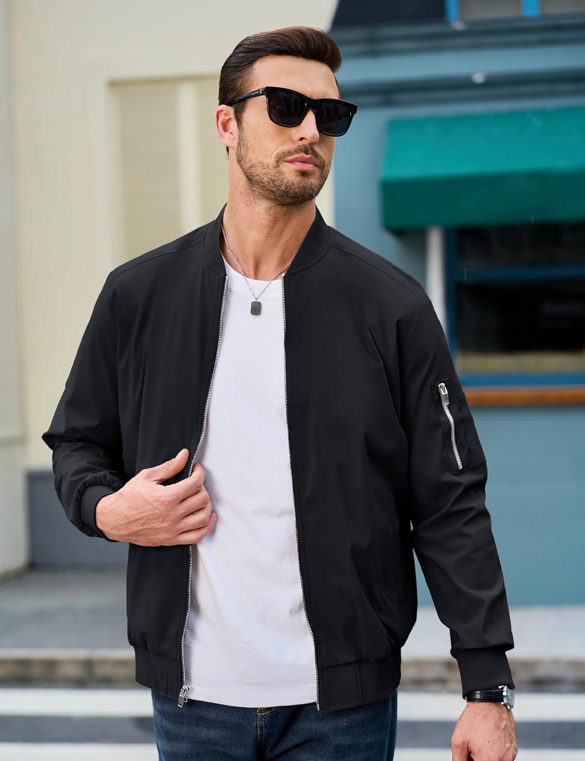 MAGCOMSEN Men’s Bomber Jacket Lightweight Casual Windbreaker Spring Fall Zip Up Coat with 5 Pocket(#01 Black)