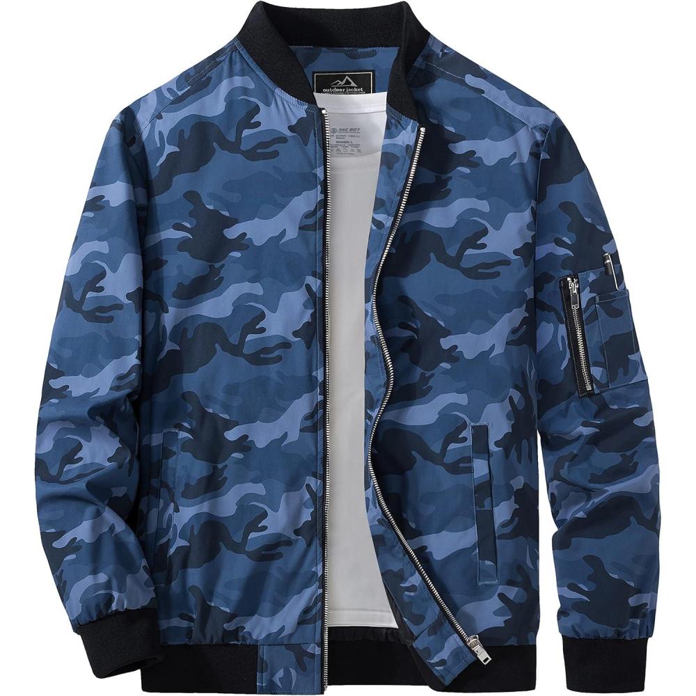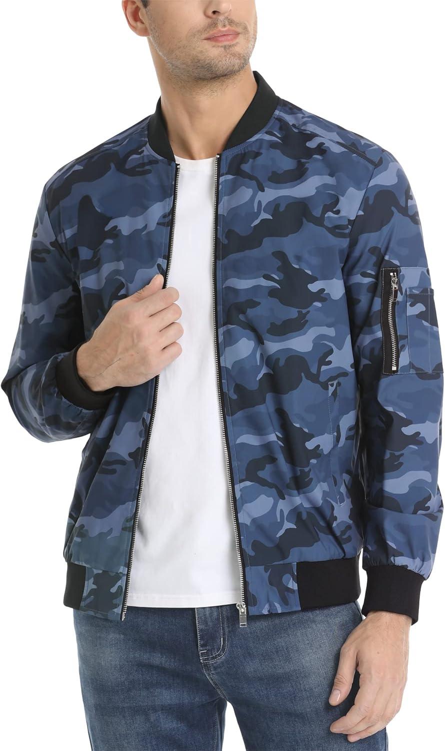 MAGCOMSEN Men’s Bomber Jacket Lightweight Casual Windbreaker Spring Fall Zip Up Coat with 5 Pocket(#01 Camouflage Blue)