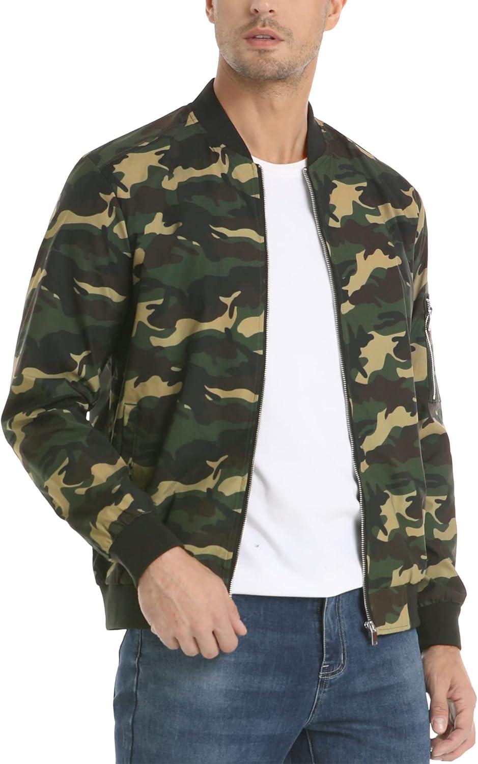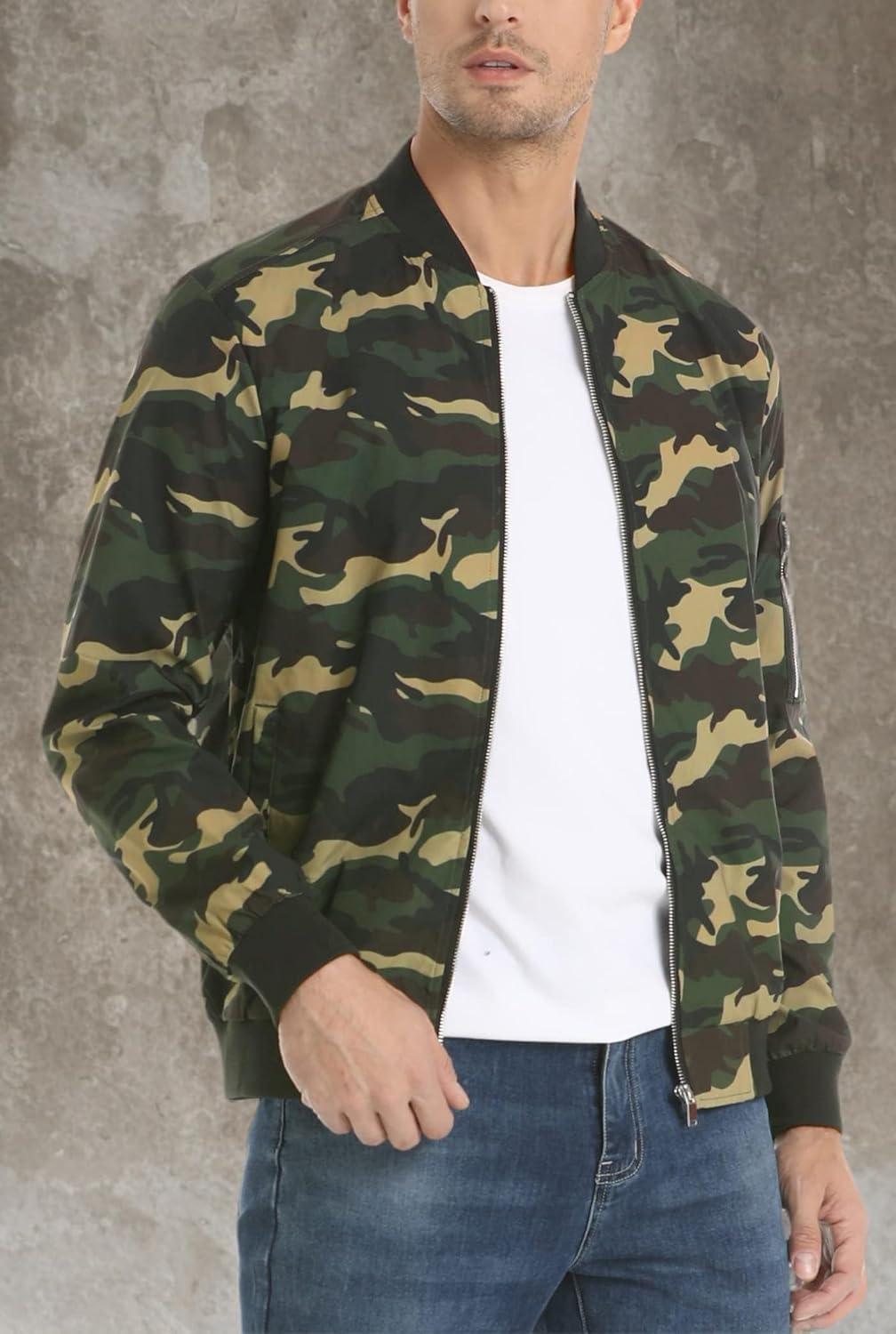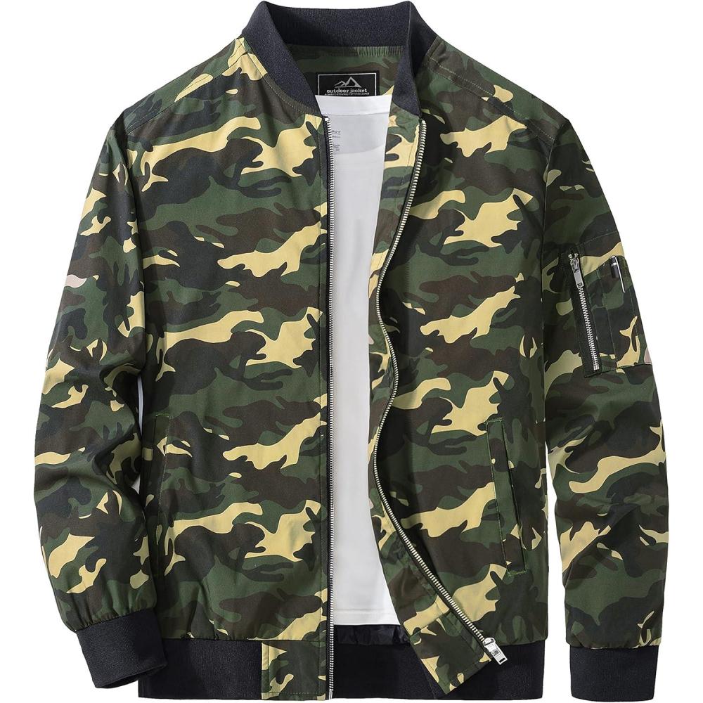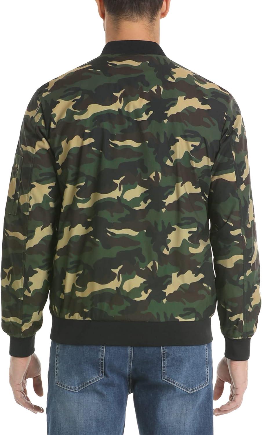 MAGCOMSEN Men’s Bomber Jacket Lightweight Casual Windbreaker Spring Fall Zip Up Coat with 5 Pocket(#01 Camouflage Green)