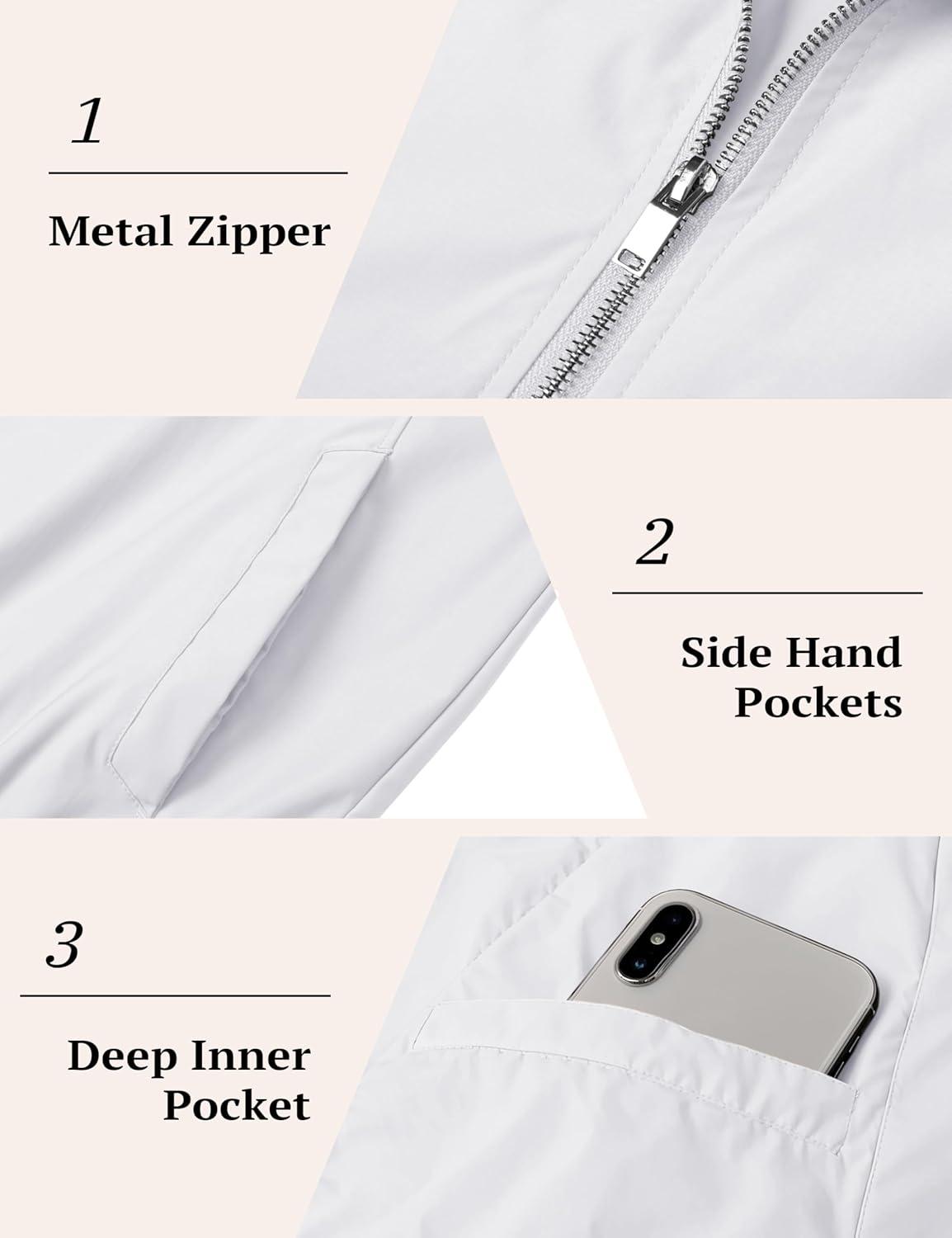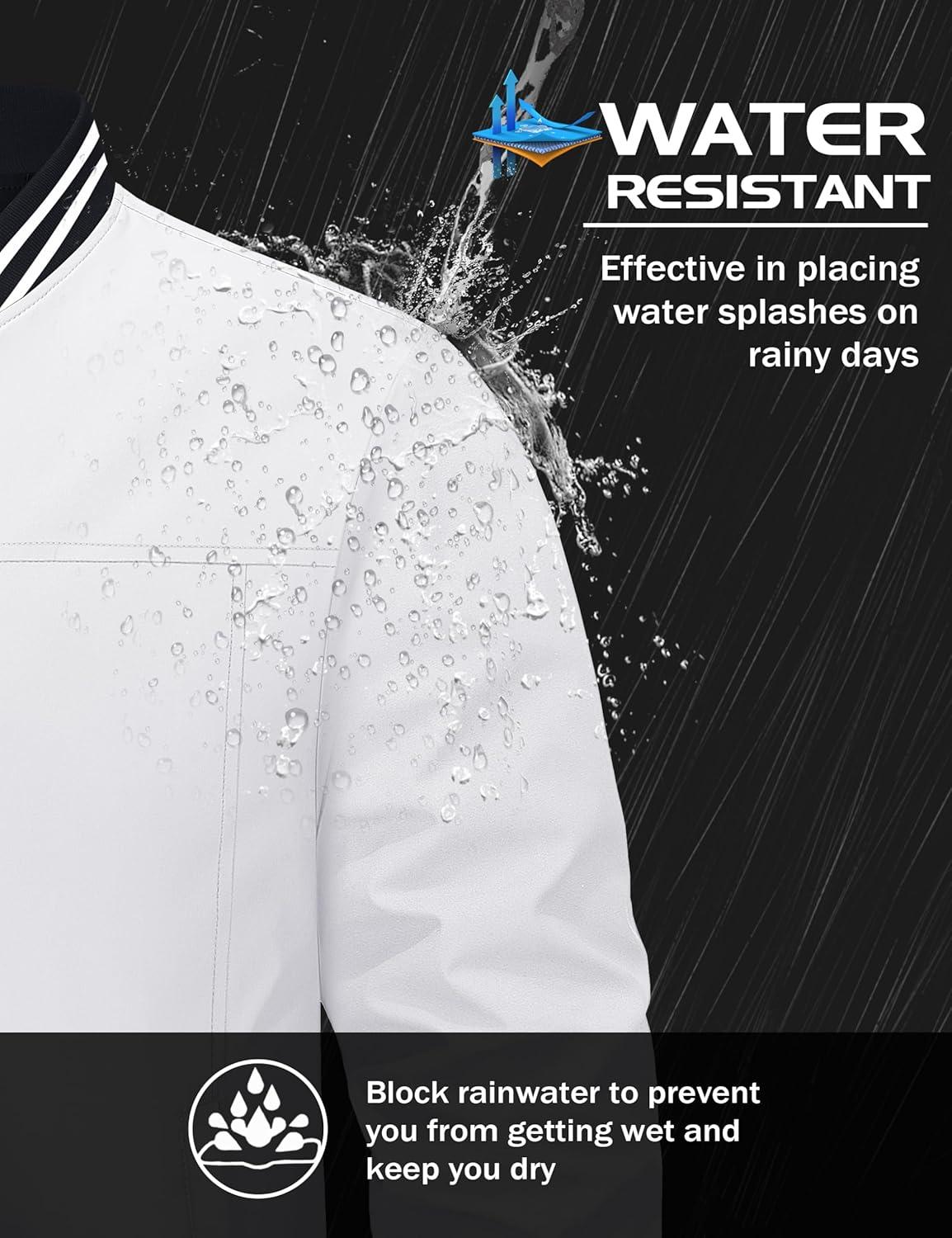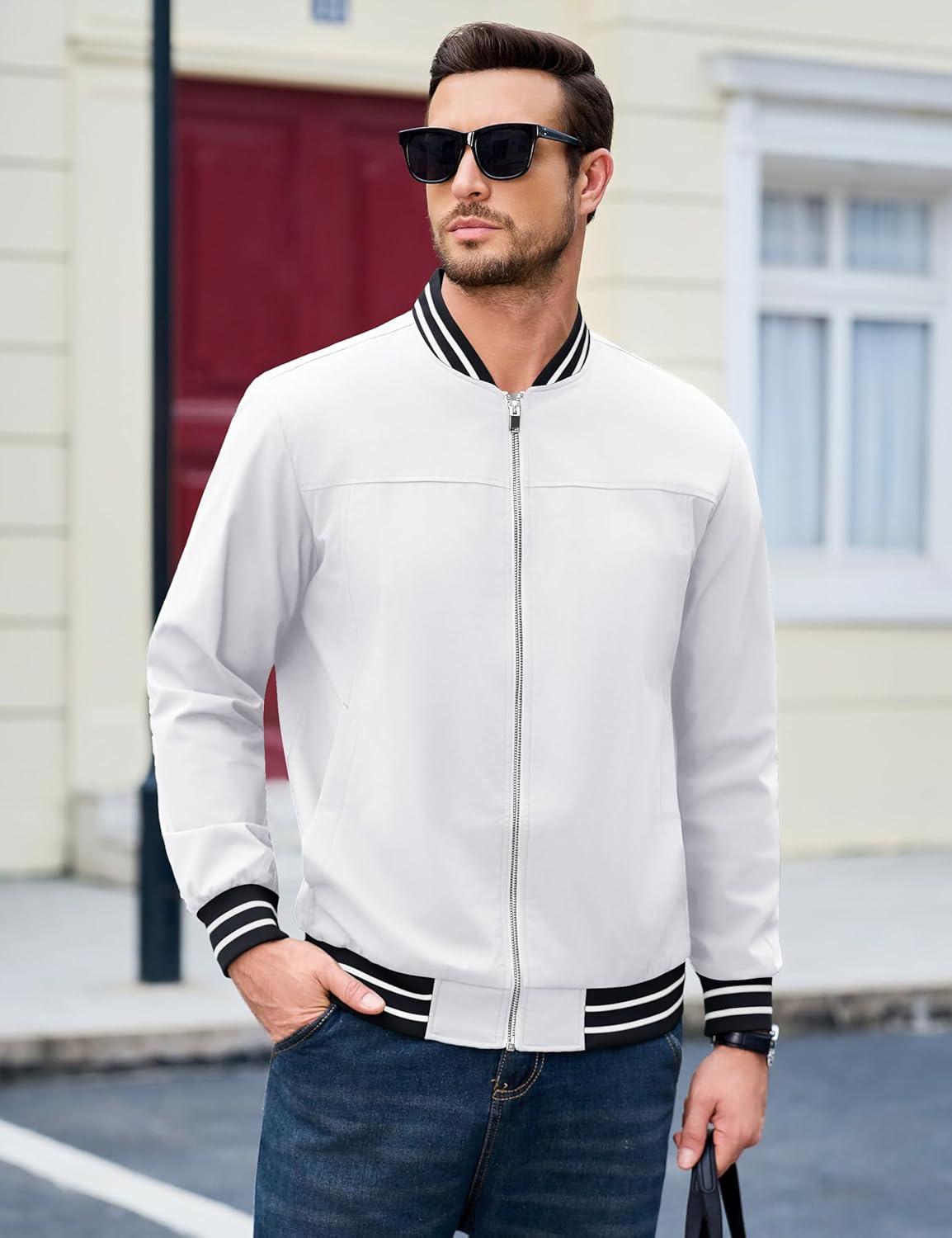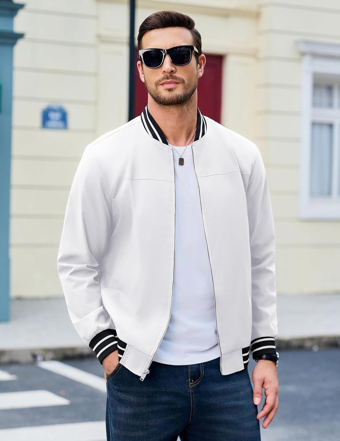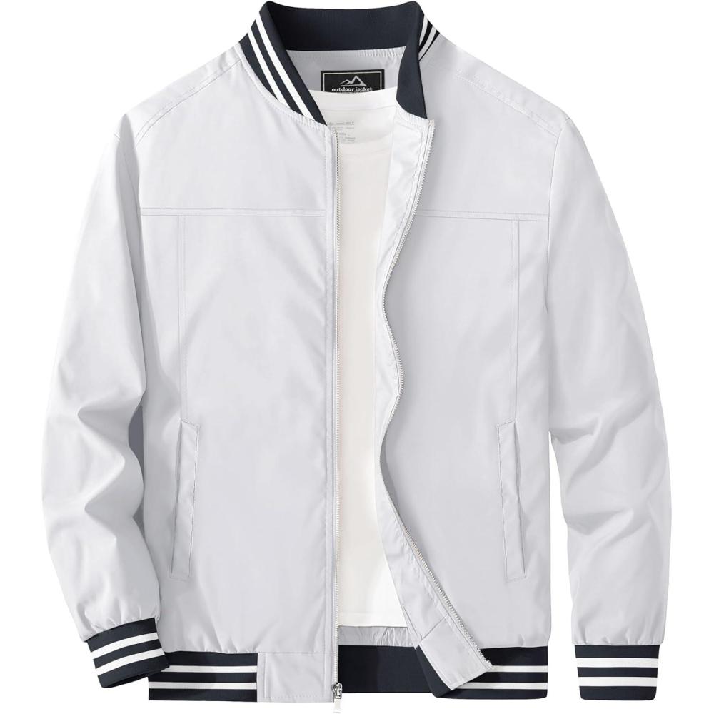 MAGCOMSEN Men’s Bomber Jacket Lightweight Windbreaker Jackets Zip Up Windproof Jackets Casual Spring Fall Coat for Golf(White)