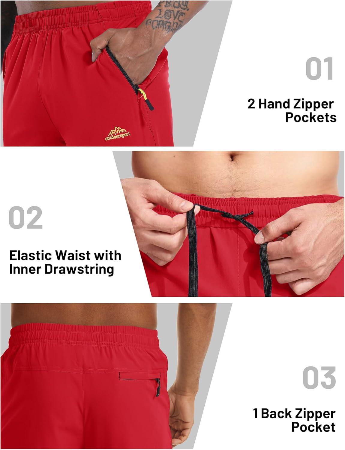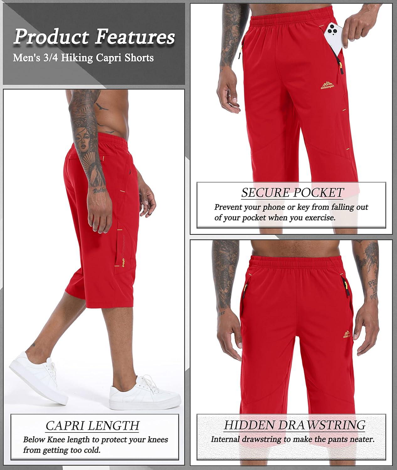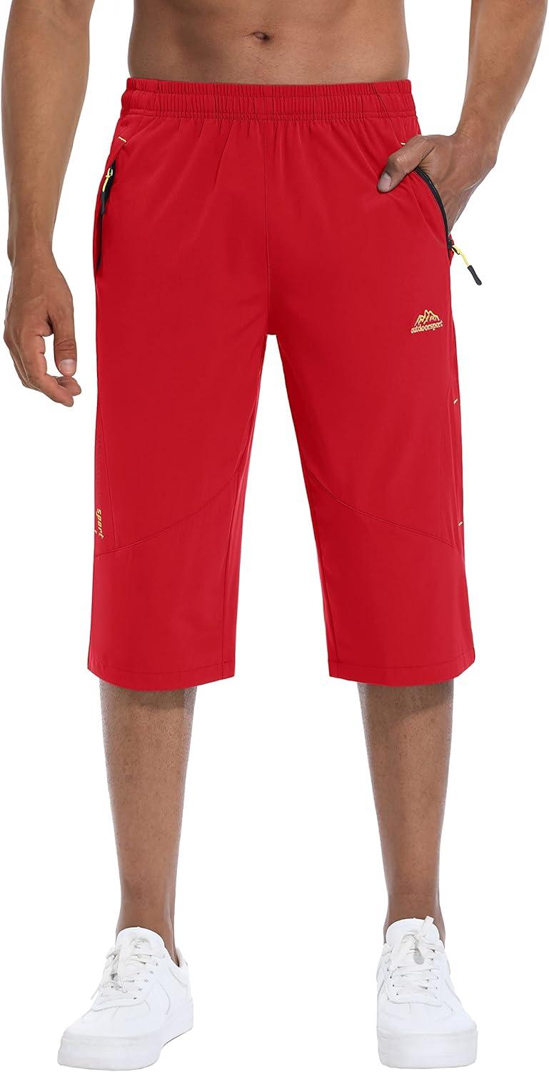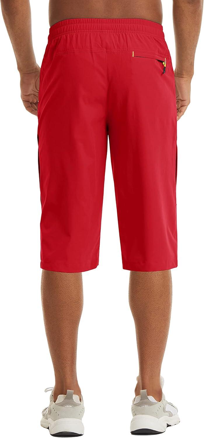 MAGCOMSEN Men’s Capri Shorts Quick Dry Below Knee 3/4 Capri Pants with Zipper Pockets for Workout Running Training Summer(Tomato Red)