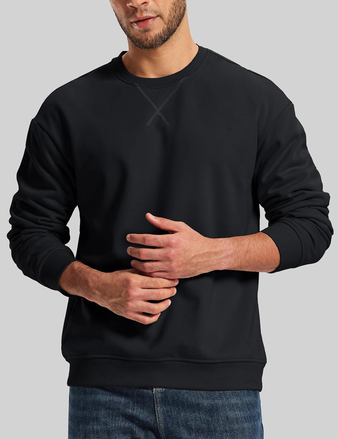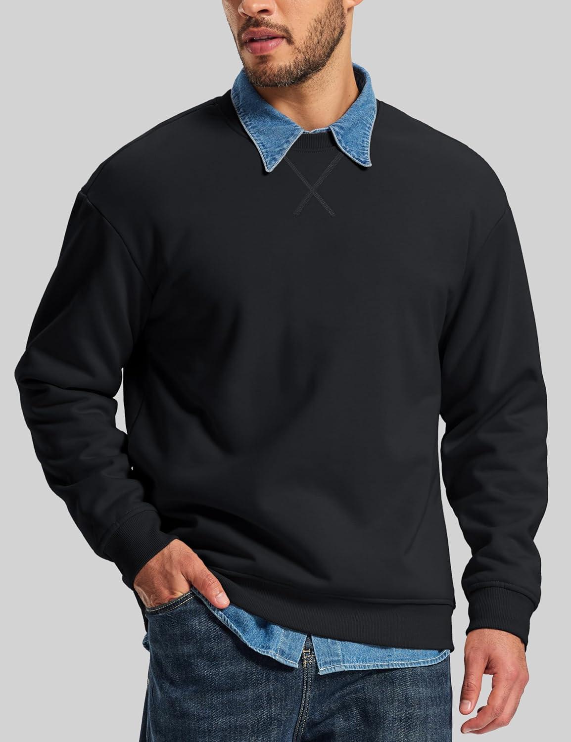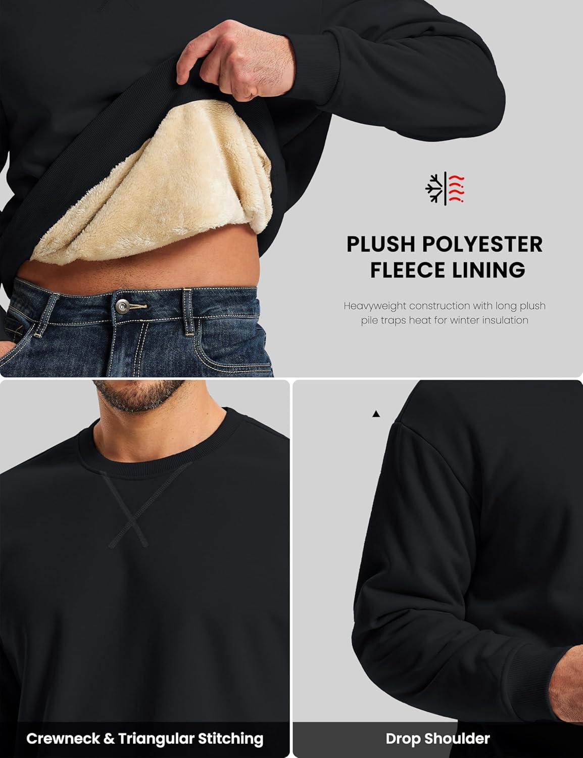 MAGCOMSEN Men’s Crewneck Sweatshirt Sherpa Lined Casual Fleece Pullover Long Sleeve Warm Heavyweight Cotton Sweat-Shirts(Black)