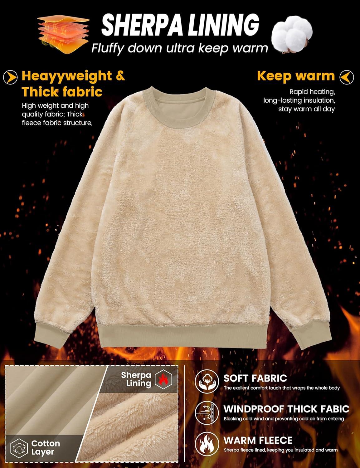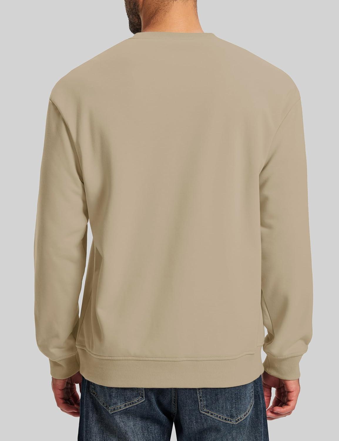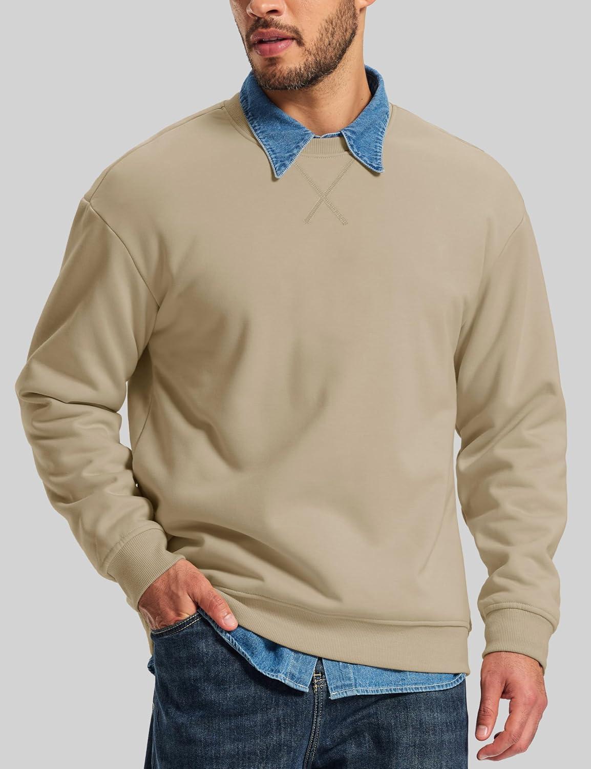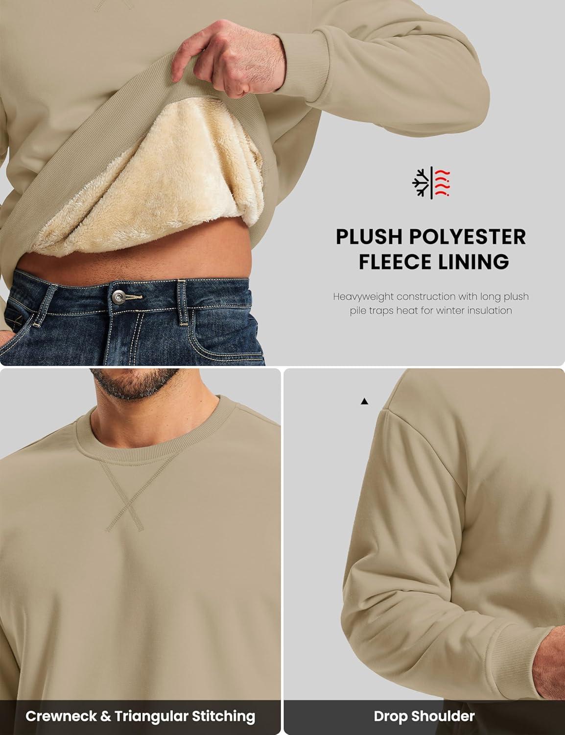 MAGCOMSEN Men’s Crewneck Sweatshirt Sherpa Lined Casual Fleece Pullover Long Sleeve Warm Heavyweight Cotton Sweat-Shirts(Khaki)