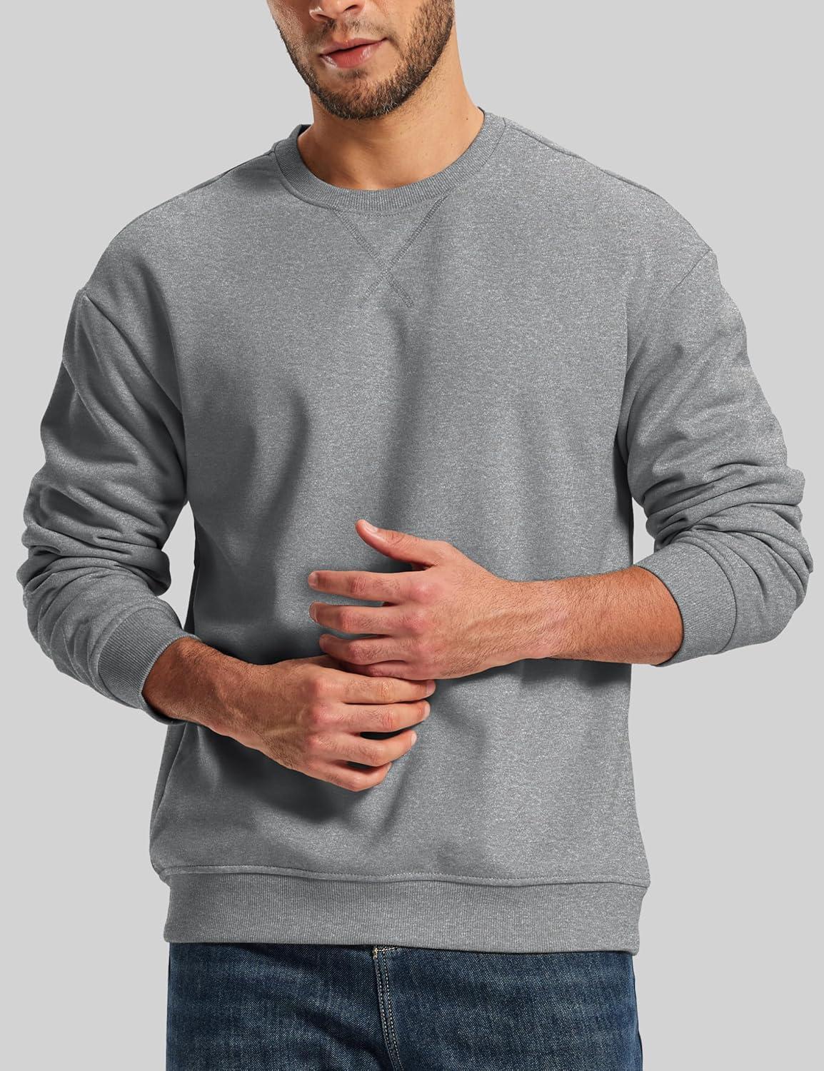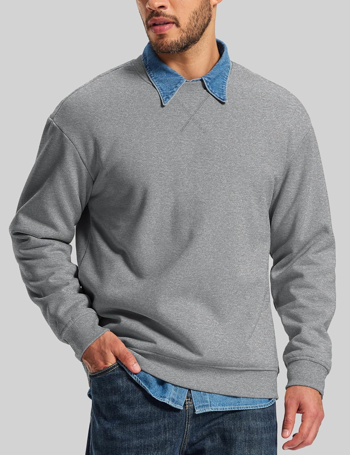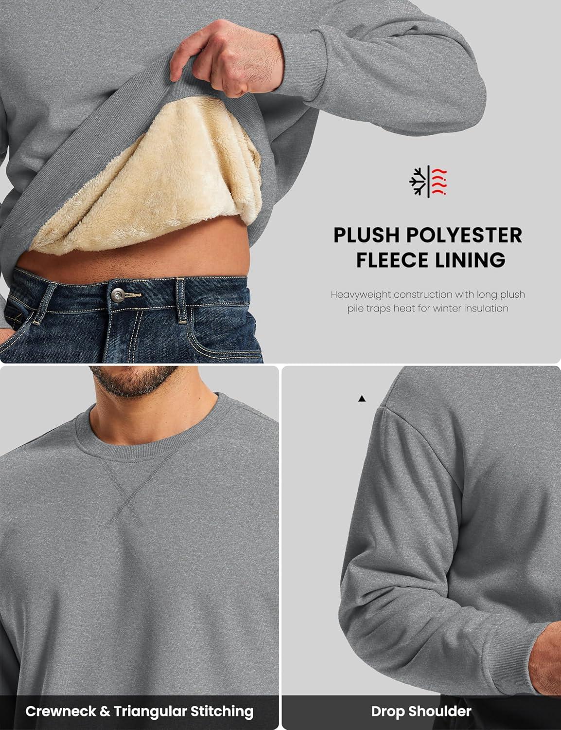 MAGCOMSEN Men’s Crewneck Sweatshirt Sherpa Lined Casual Fleece Pullover Long Sleeve Warm Heavyweight Cotton Sweat-Shirts(Lightgray)
