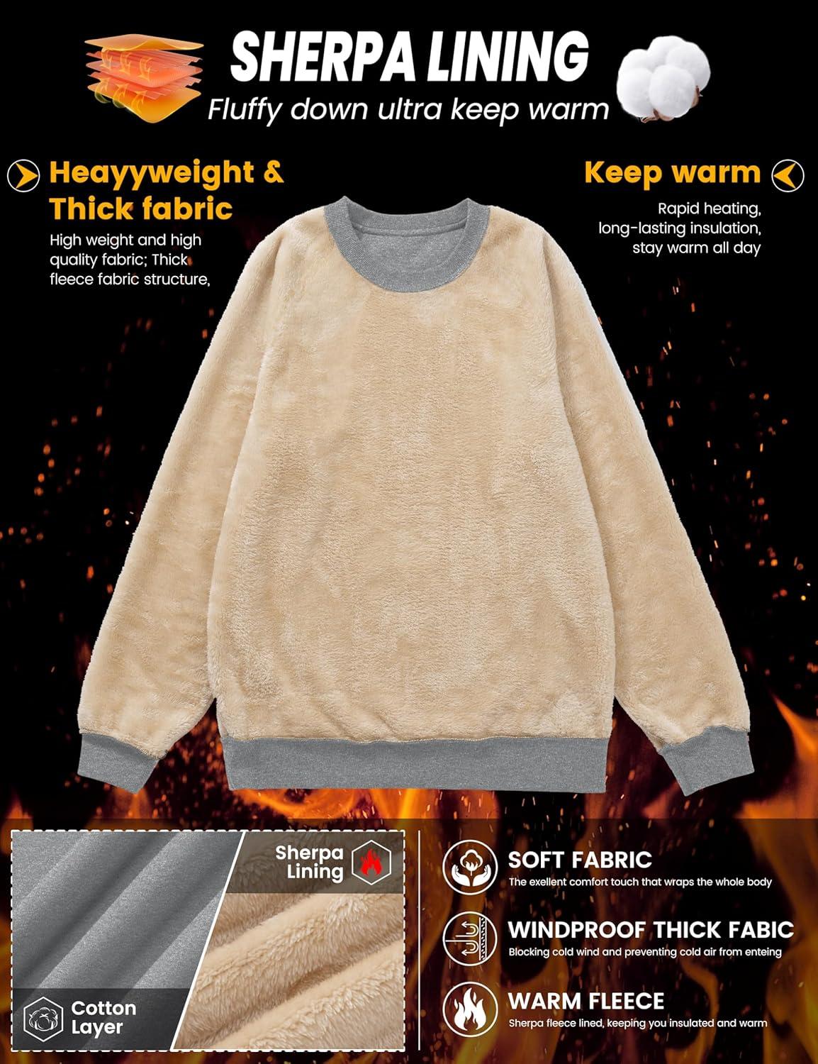 MAGCOMSEN Men’s Crewneck Sweatshirt Sherpa Lined Casual Fleece Pullover Long Sleeve Warm Heavyweight Cotton Sweat-Shirts(Khaki)