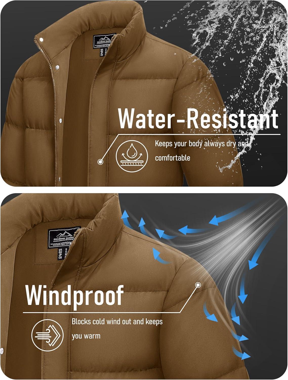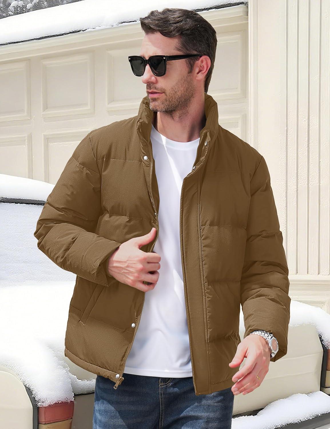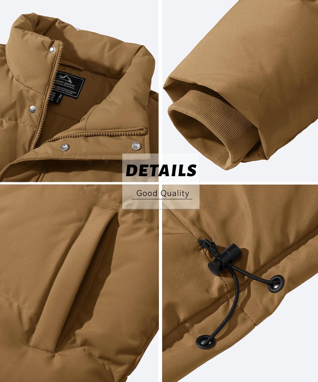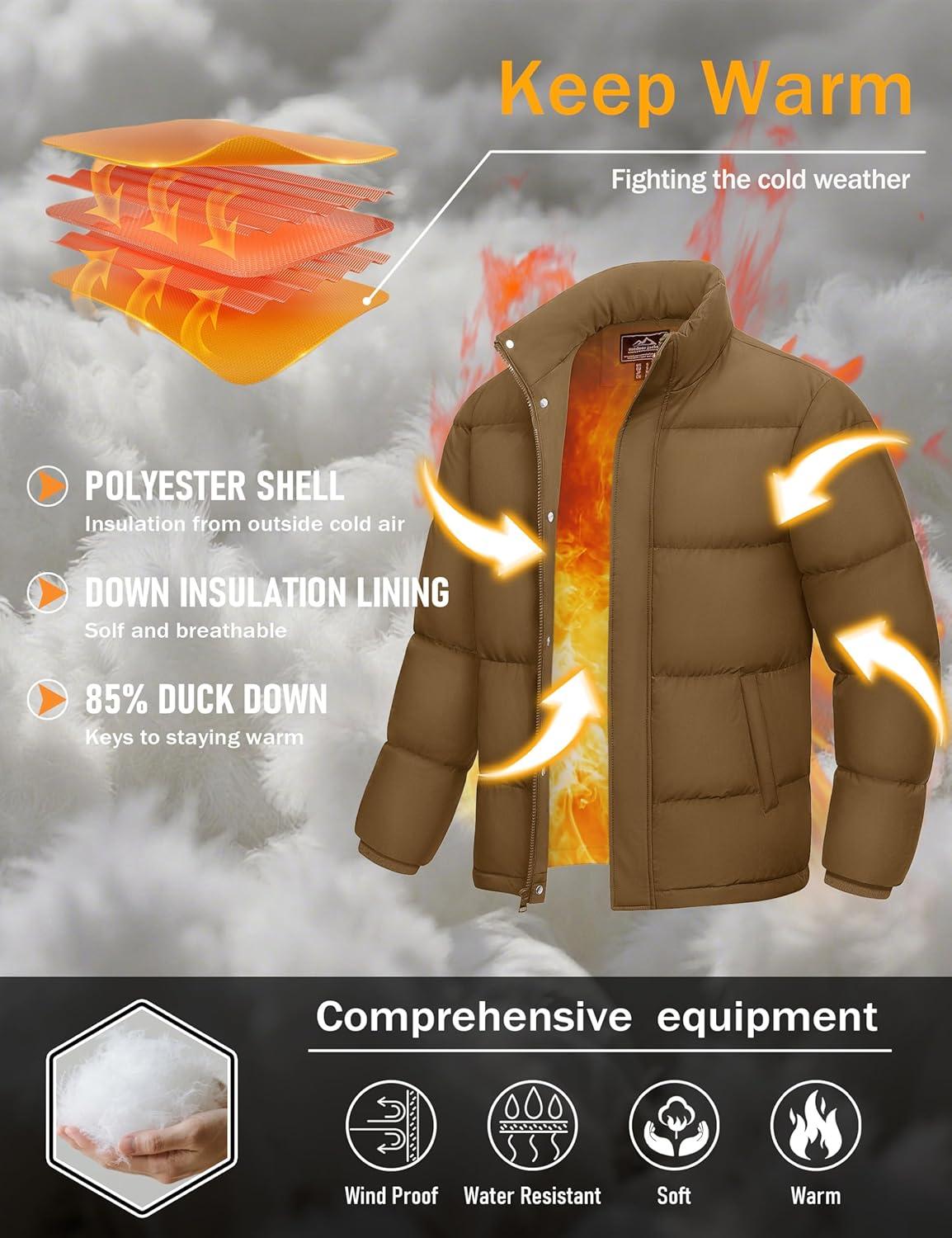 MAGCOMSEN Men’s Down Jacket Winter Warm Thicken Puffer Coats Water Resistant Windproof Casual Insulated Jacket(Khaki)