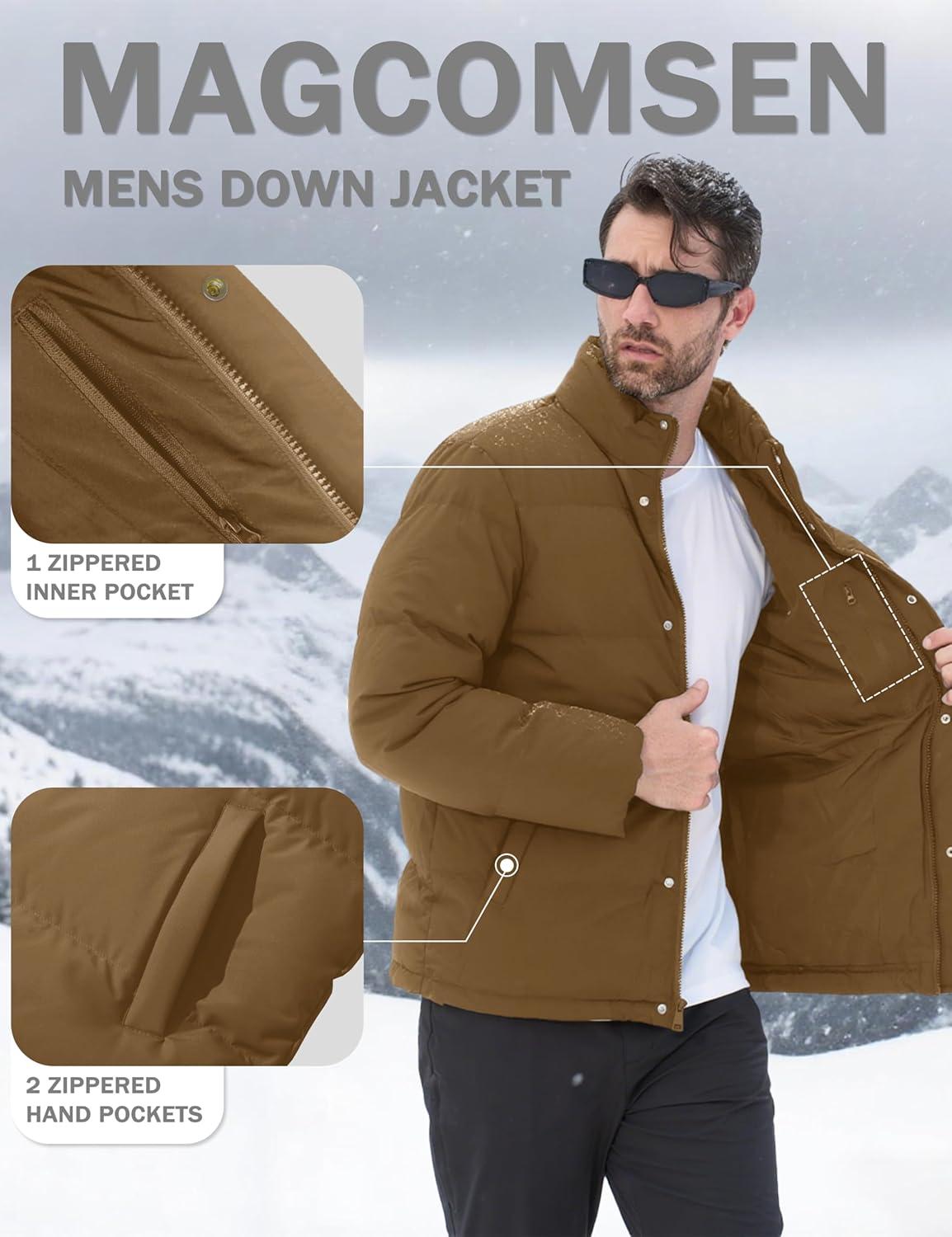 MAGCOMSEN Men’s Down Jacket Winter Warm Thicken Puffer Coats Water Resistant Windproof Casual Insulated Jacket(Brown)
