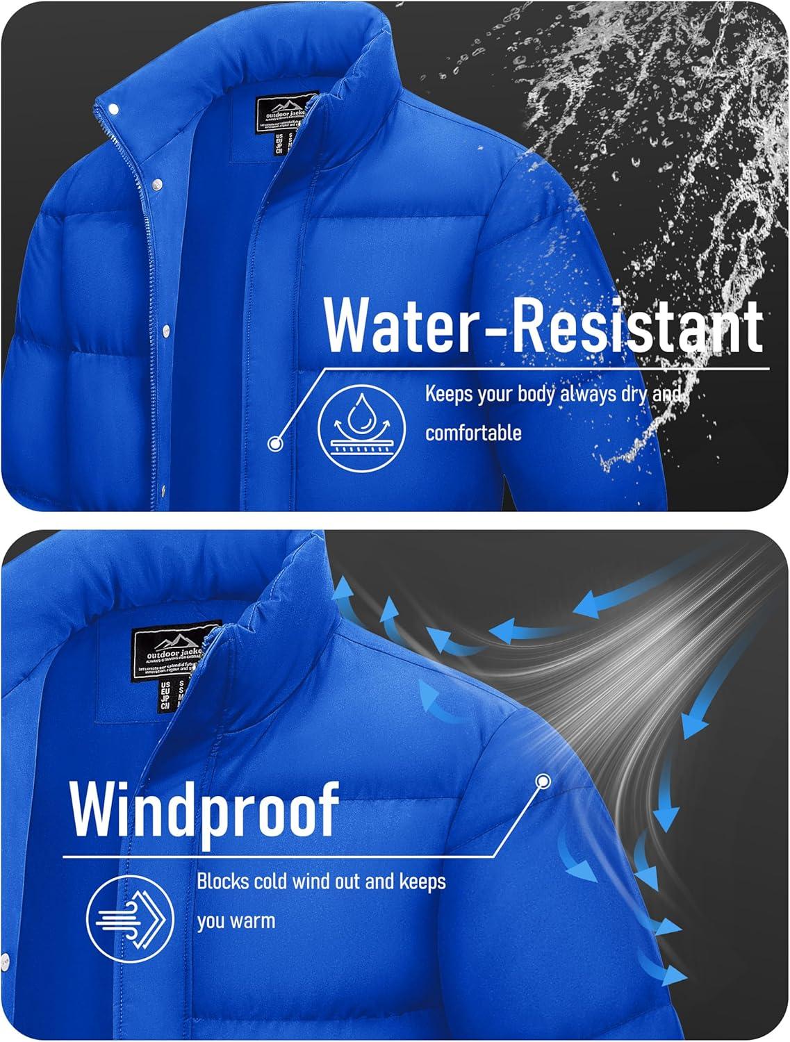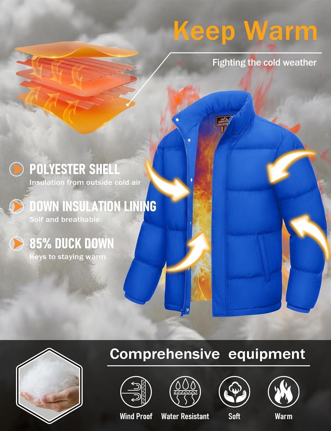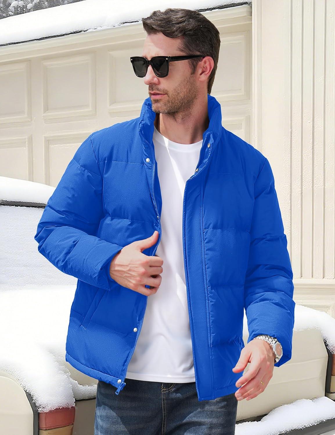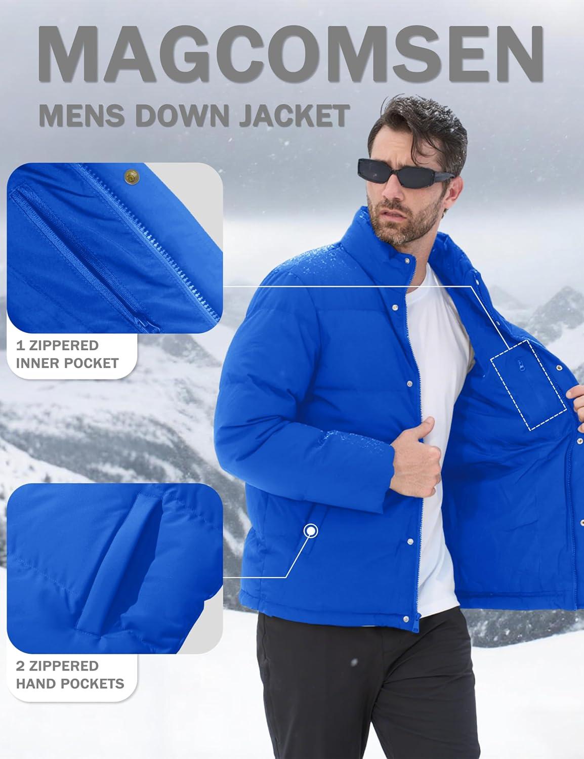 MAGCOMSEN Men’s Down Jacket Winter Warm Thicken Puffer Coats Water Resistant Windproof Casual Insulated Jacket(Color Blue)