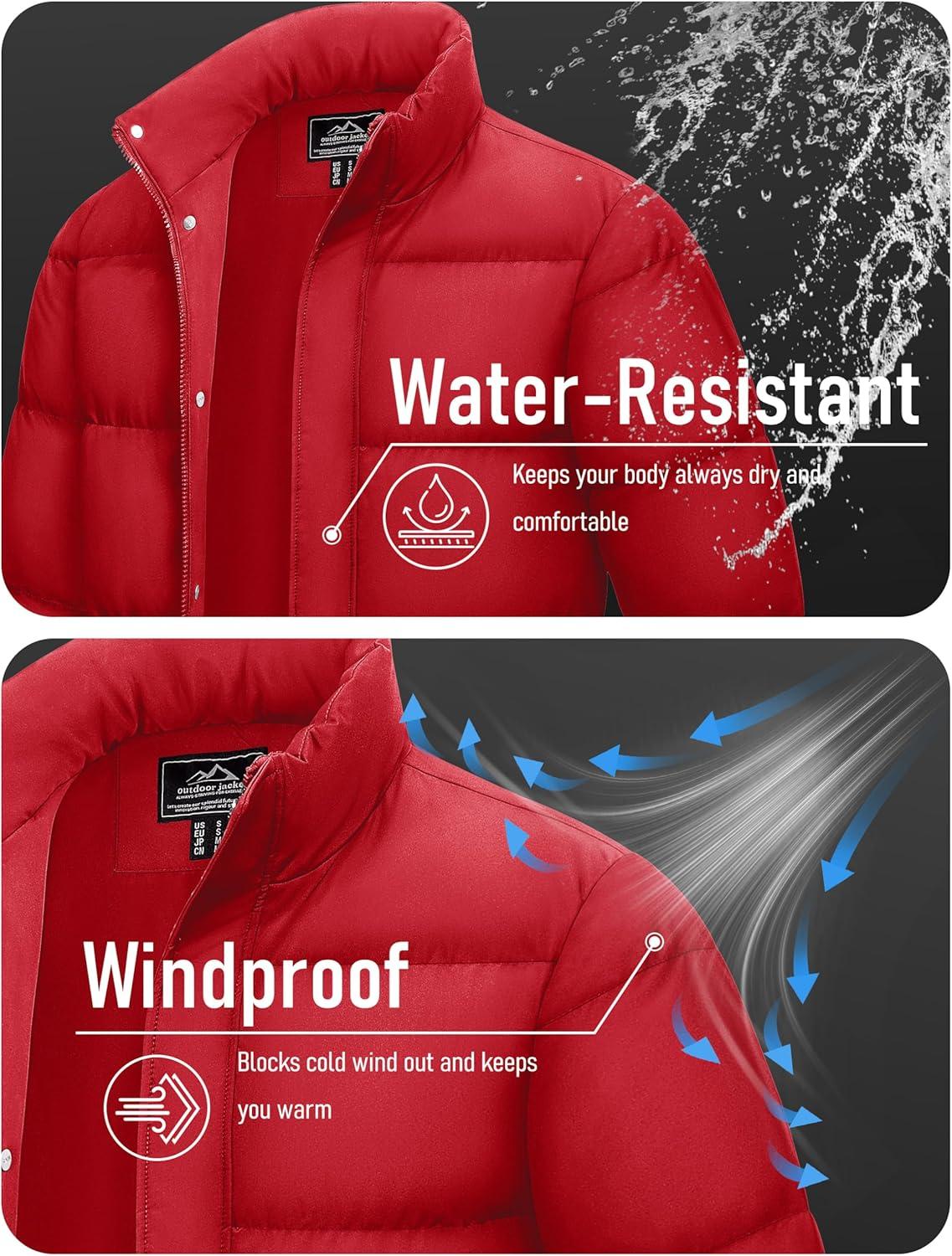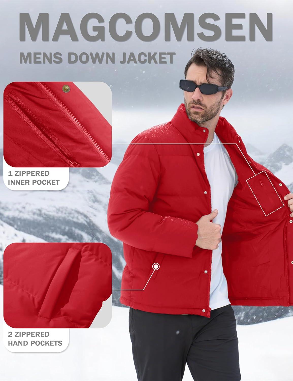 MAGCOMSEN Men’s Down Jacket Winter Warm Thicken Puffer Coats Water Resistant Windproof Casual Insulated Jacket(Tomato Red)