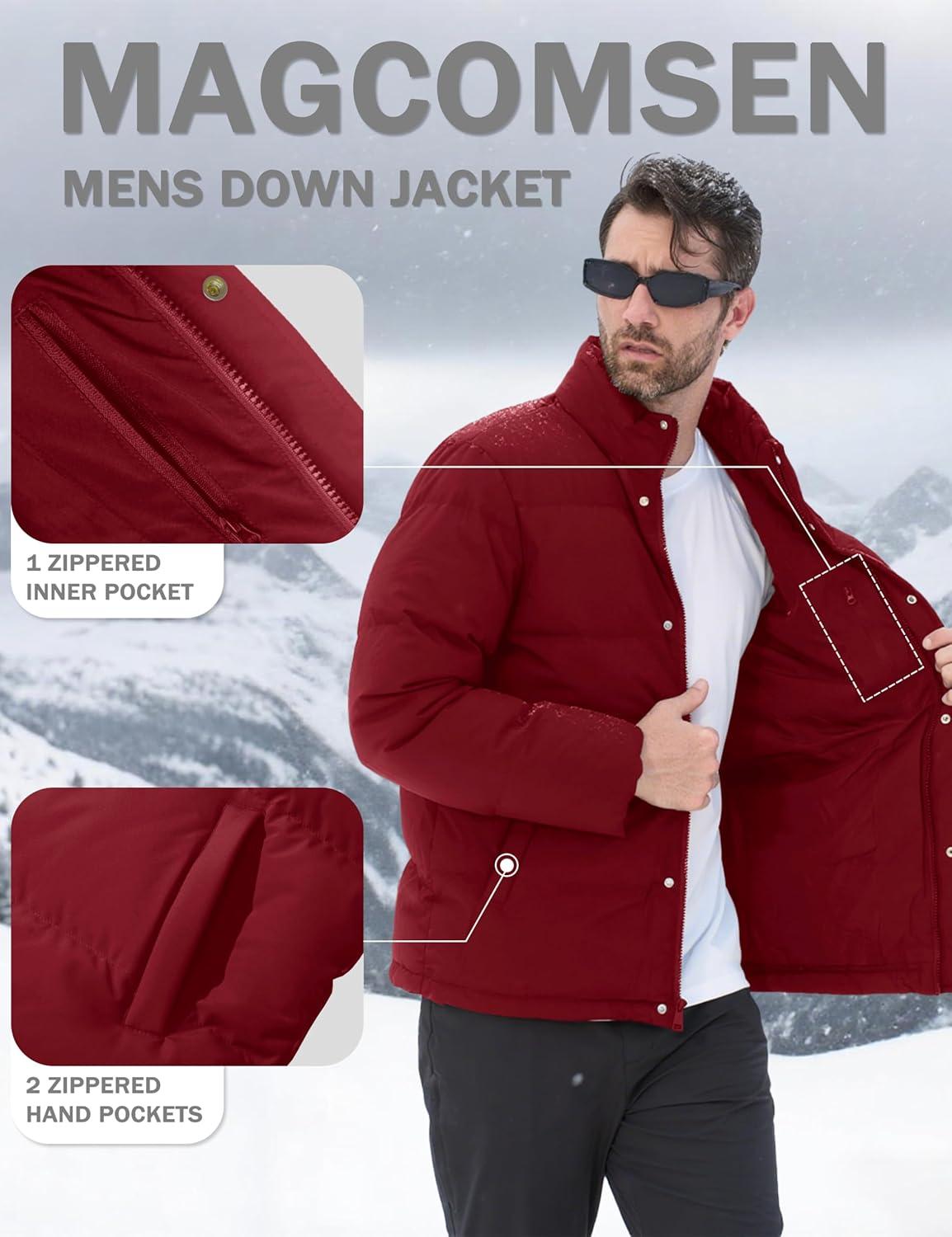 MAGCOMSEN Men’s Down Jacket Winter Warm Thicken Puffer Coats Water Resistant Windproof Casual Insulated Jacket(Wine Red)