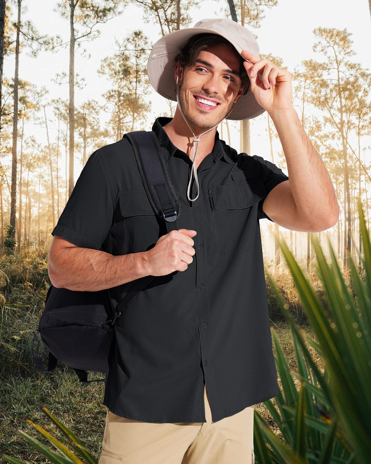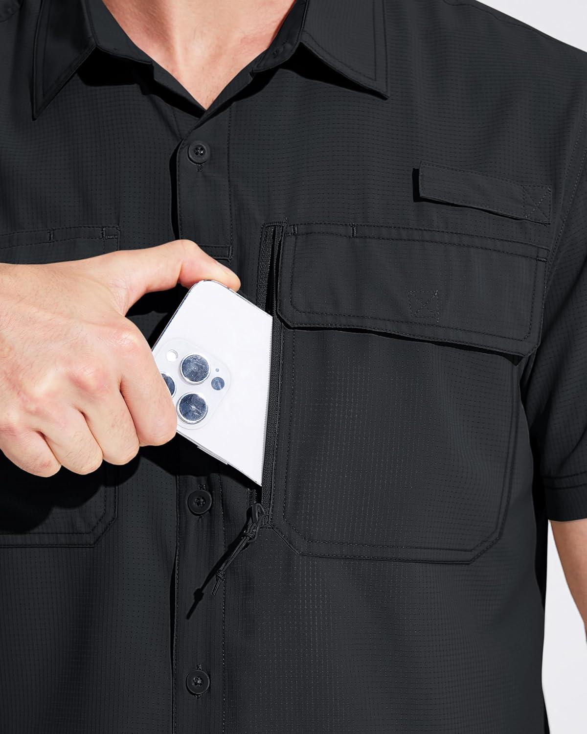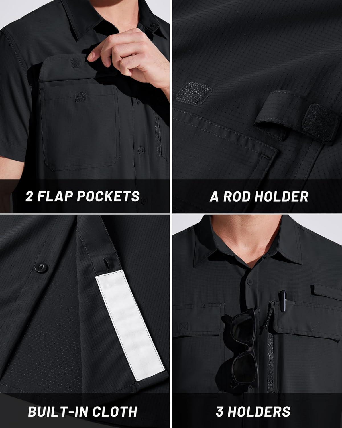 MAGCOMSEN Men’s Fishing Shirts UPF 50+ Short Sleeve Sun Protection Shirts Quick Dry Cooling Button Down Shirt Hiking Safari(Black)