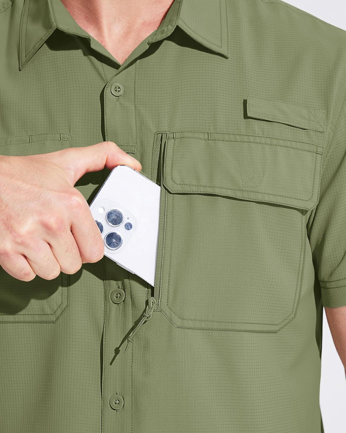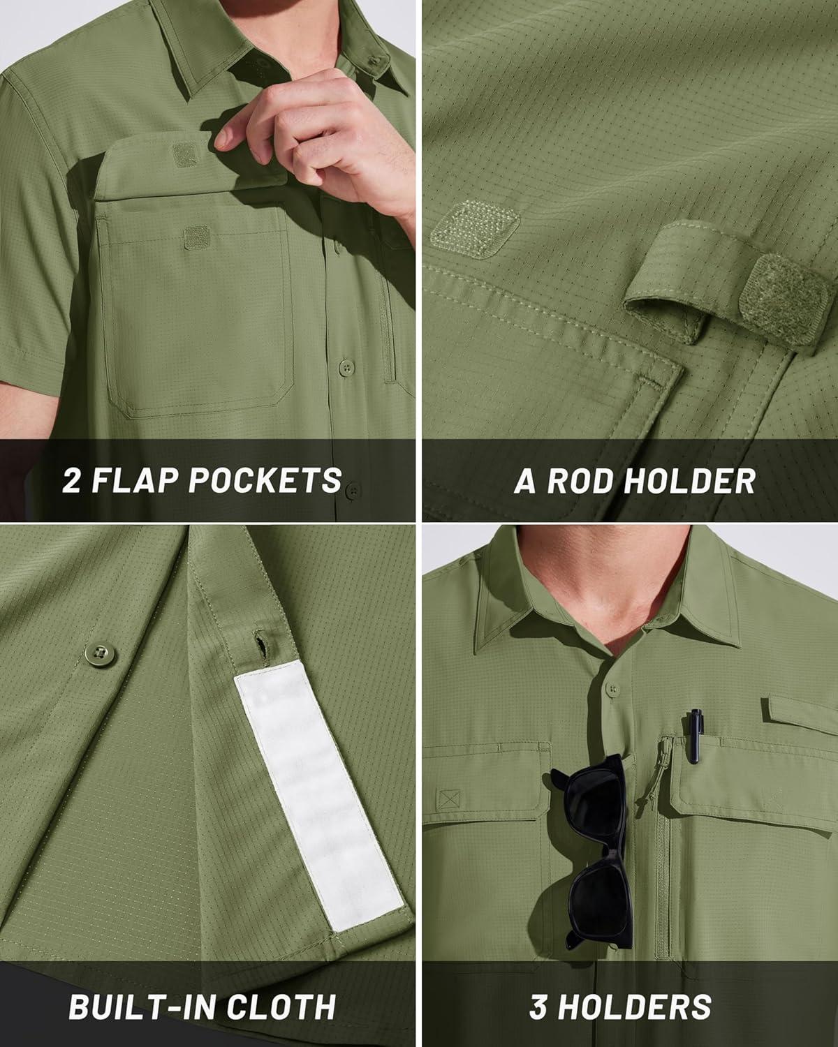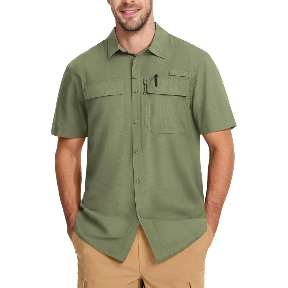 MAGCOMSEN Men’s Fishing Shirts UPF 50+ Short Sleeve Sun Protection Shirts Quick Dry Cooling Button Down Shirt Hiking Safari(Grey Green)