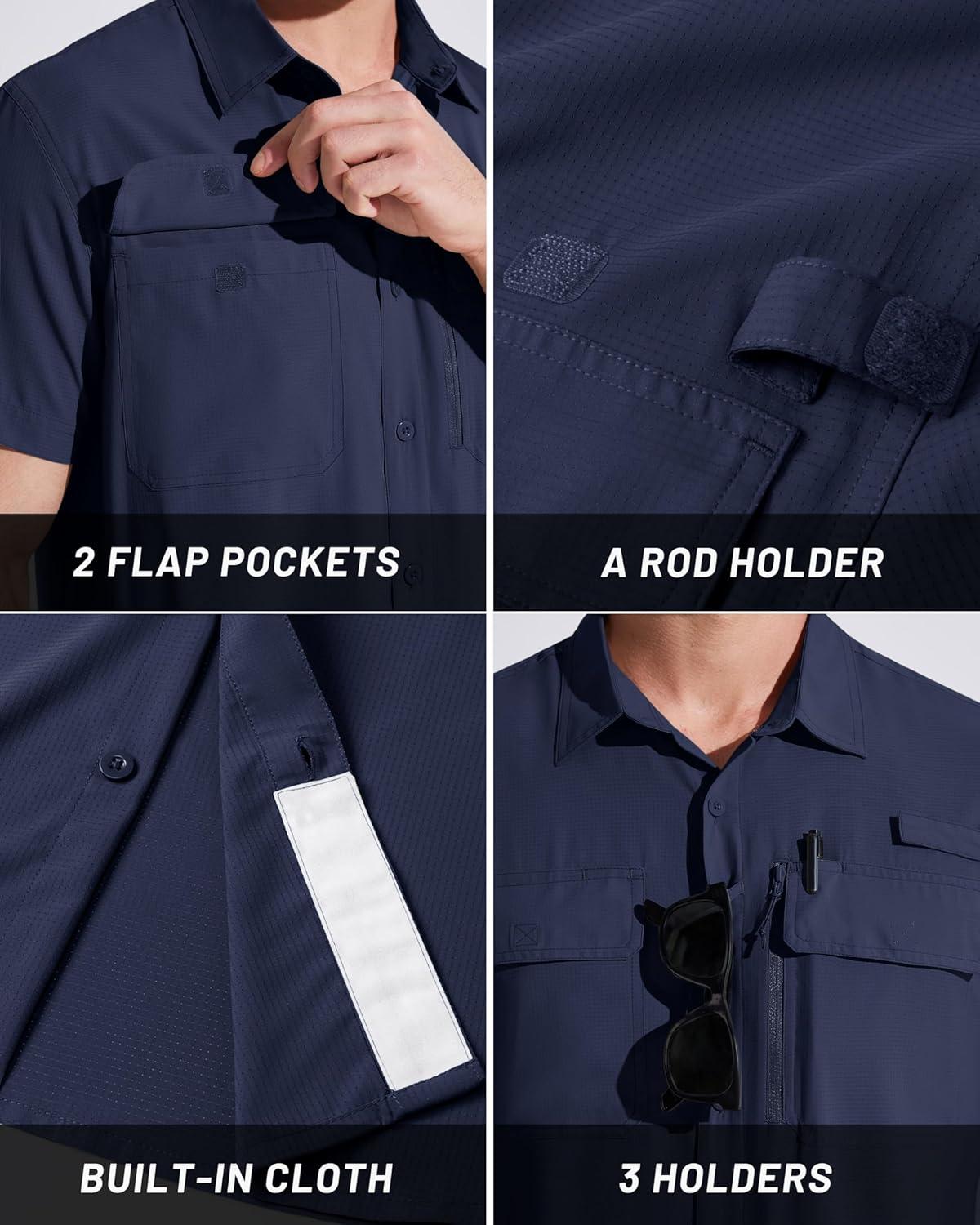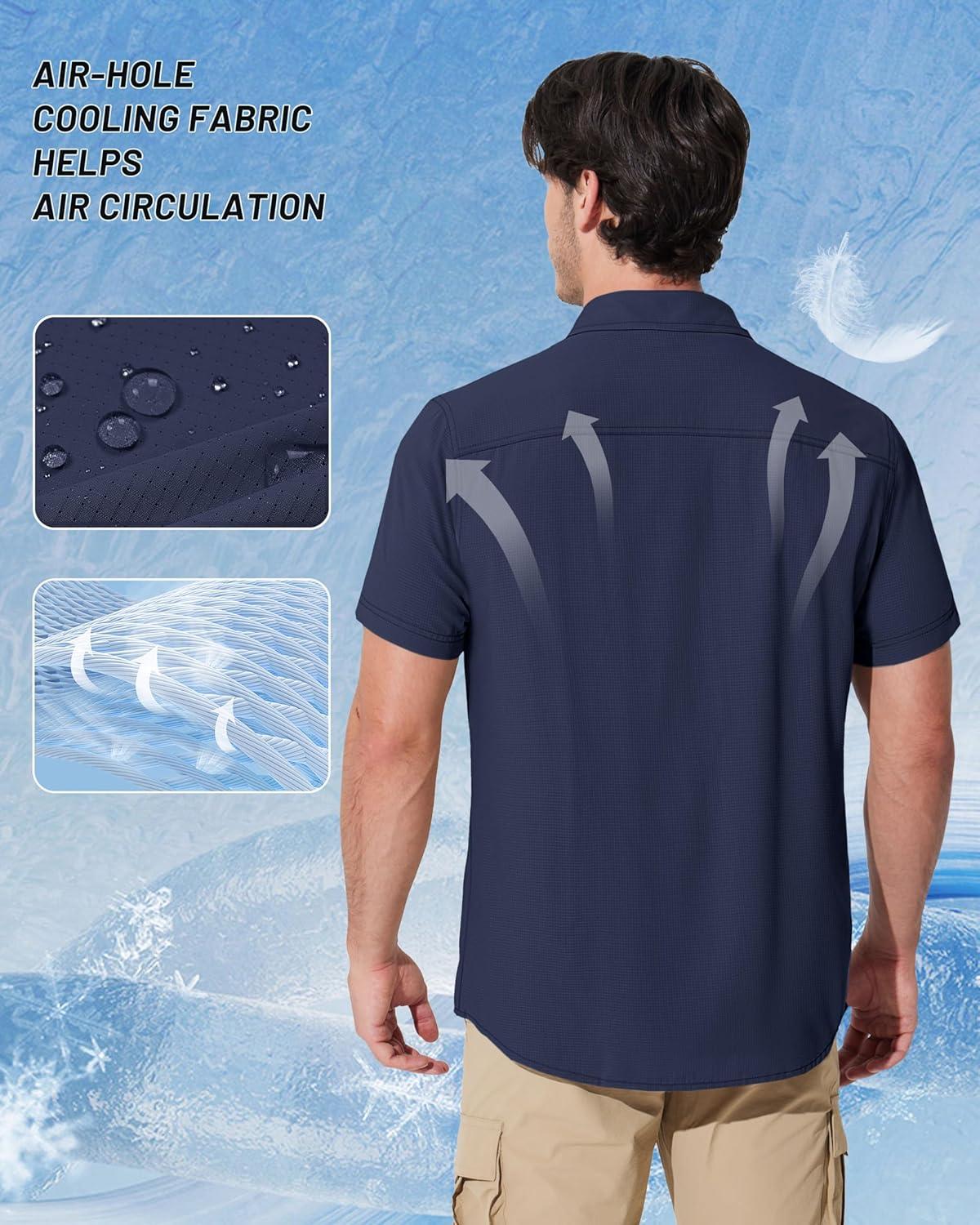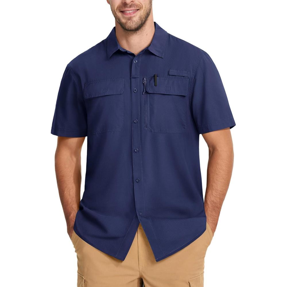 MAGCOMSEN Men’s Fishing Shirts UPF 50+ Short Sleeve Sun Protection Shirts Quick Dry Cooling Button Down Shirt Hiking Safari(Navy)