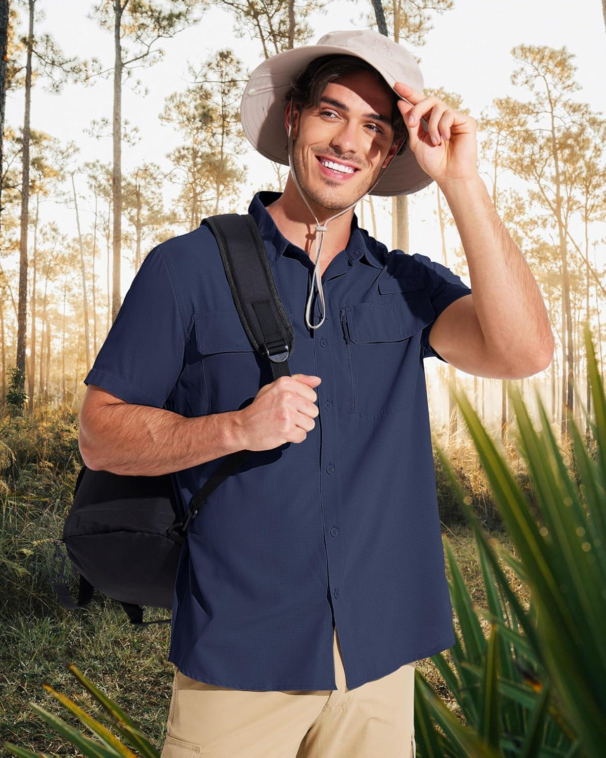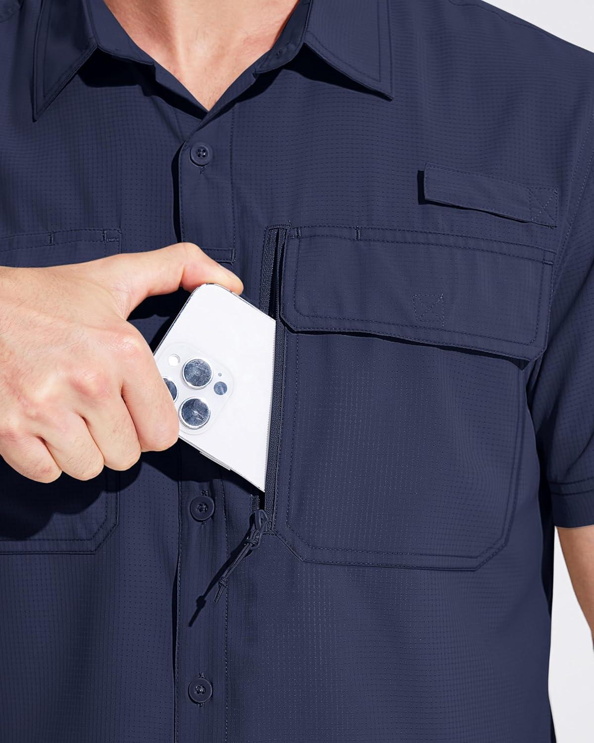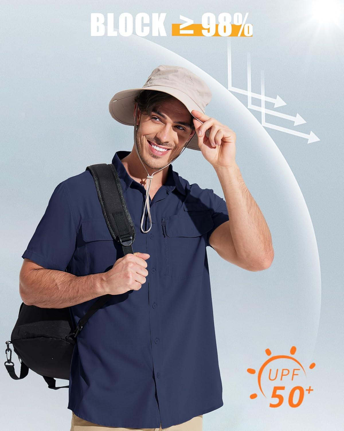 MAGCOMSEN Men’s Fishing Shirts UPF 50+ Short Sleeve Sun Protection Shirts Quick Dry Cooling Button Down Shirt Hiking Safari(Navy)