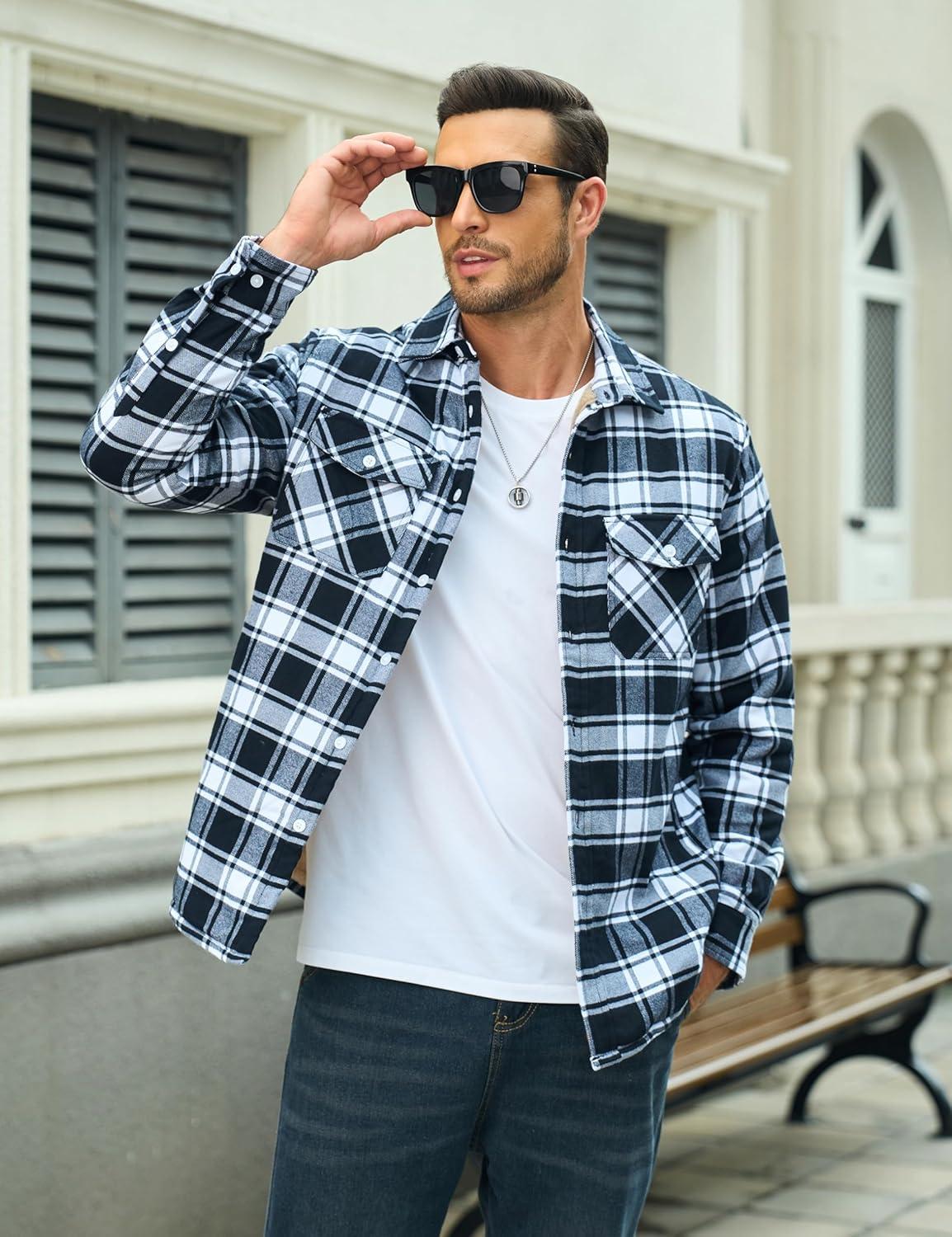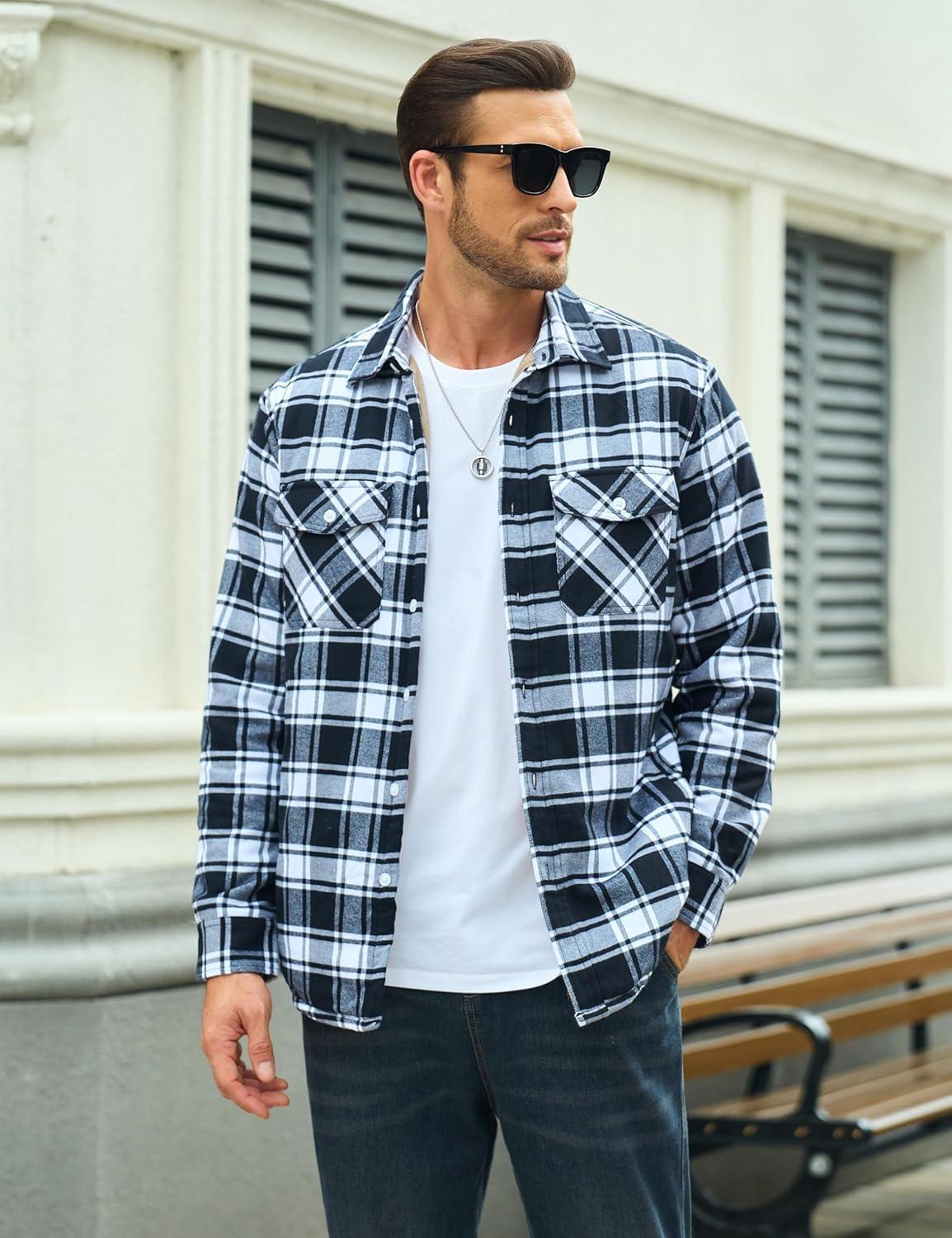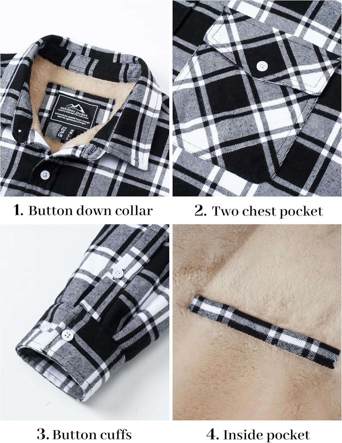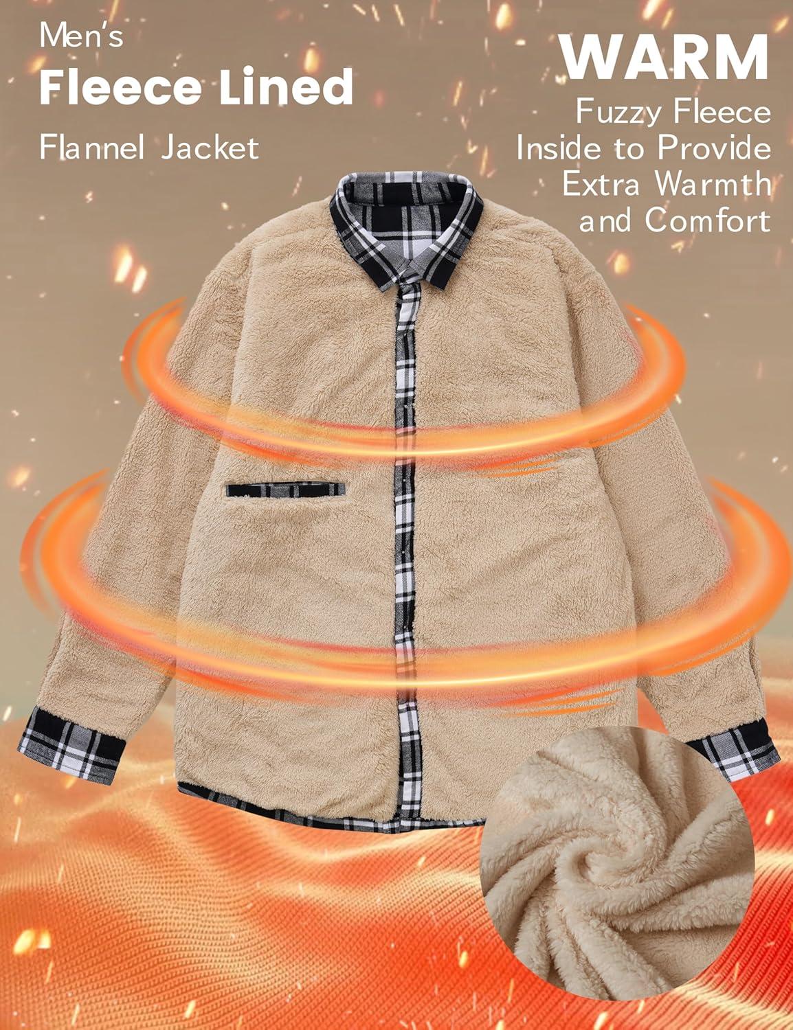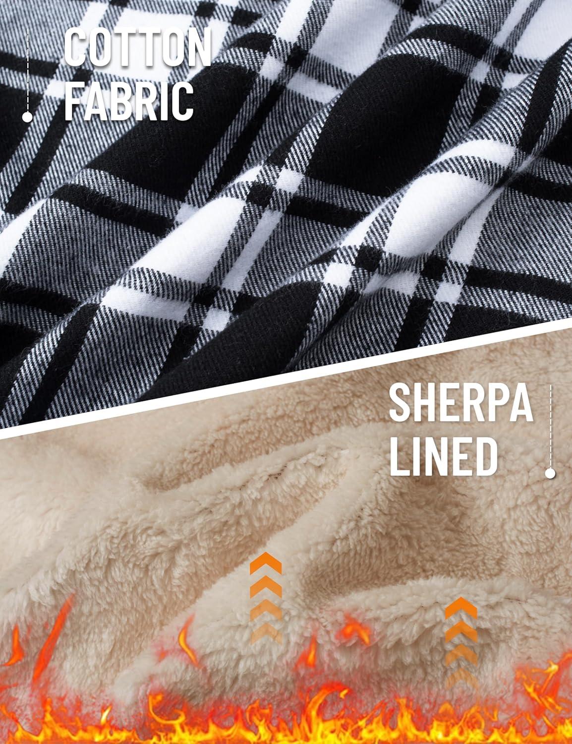 MAGCOMSEN Men’s Flannel Shirt Fleece Lined Heavyweight Flannel Jacket Cotton Button Up Plaid Shirt Warm Winter Coat(Black)