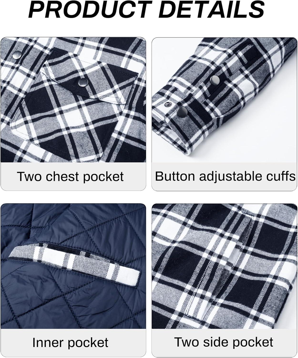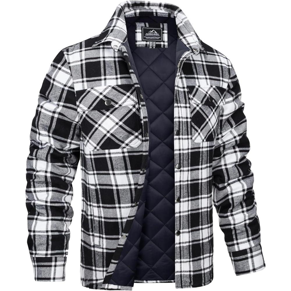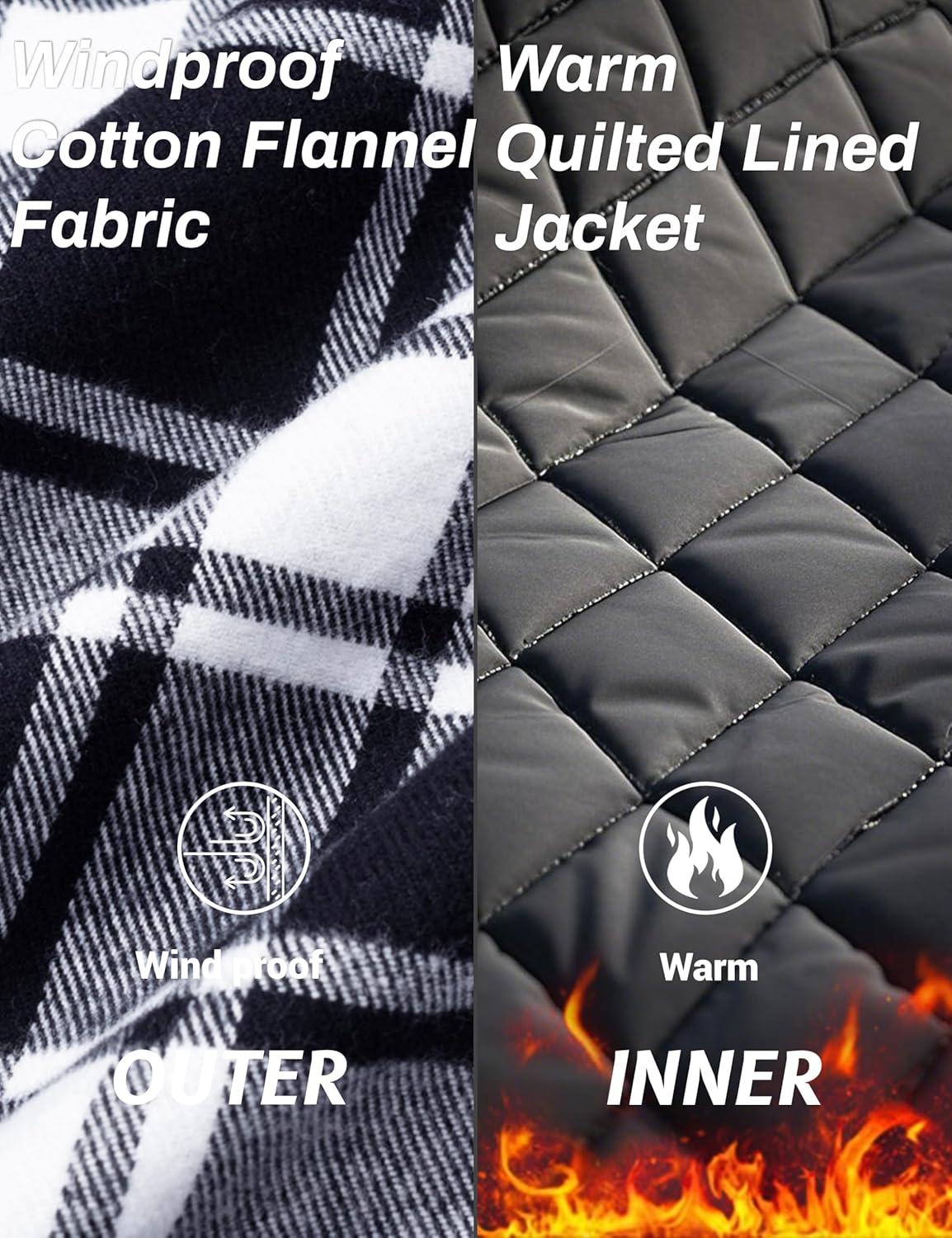 MAGCOMSEN Men’s Flannel Shirts Long Sleeve Quilted Lined Button Down Plaid Flannel Jacket Heavyweight Warm Winter Coat(Black)